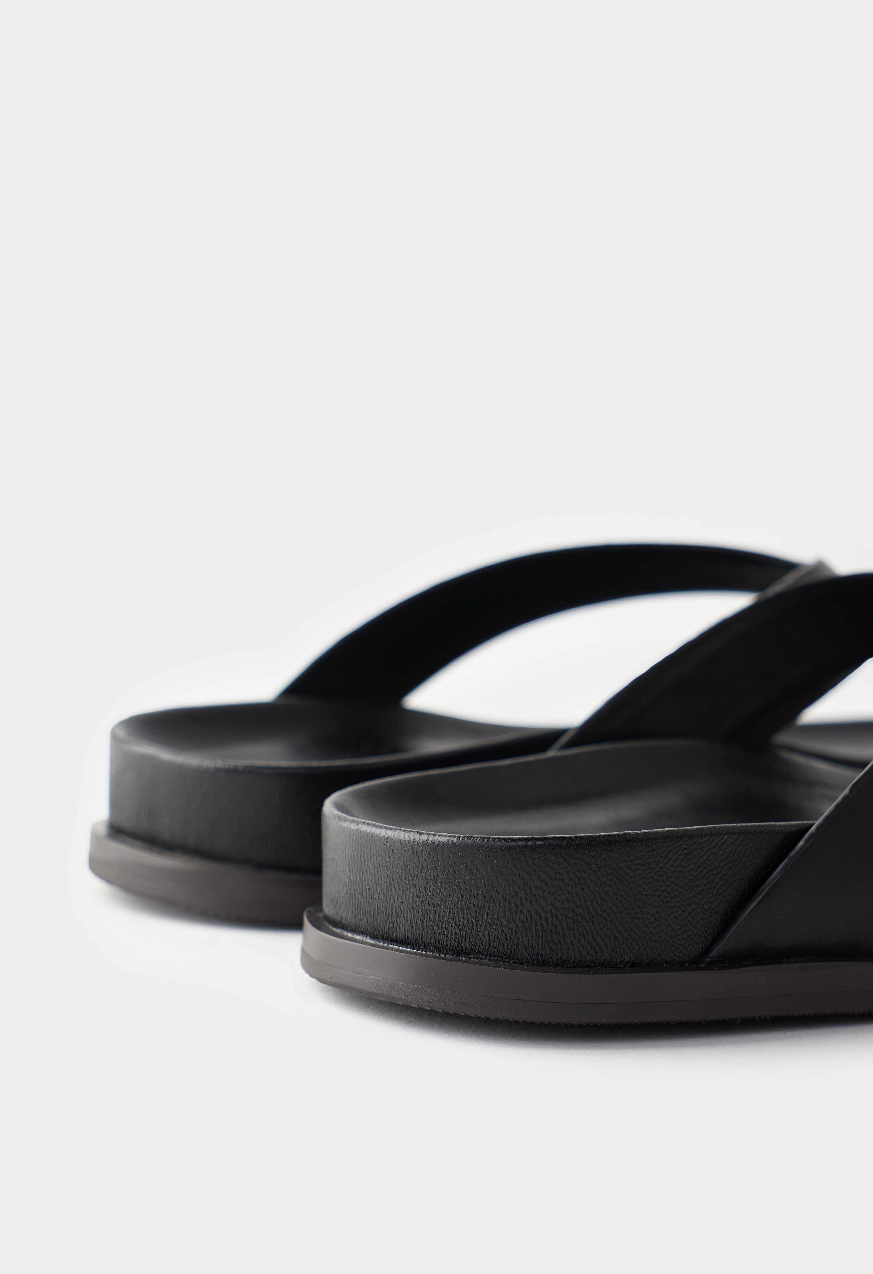 Черные кожаные пантолеты – универсальная пара, которая легко заменяет и кеды, и босоножки в теплый сезон. Натуральная кожа смотрится строго и ухоженно, а широкие кожаные ремешки удобно лежат на стопе и создают аккуратный силуэт с открытым мысом. Платформа добавляет рост и делает шаг более уверенным, не перегружая образ. Жесткая подошва сохраняет форму и обеспечивает стабильную опору – идеальный вариант для прогулок, поездок и повседневных дел.