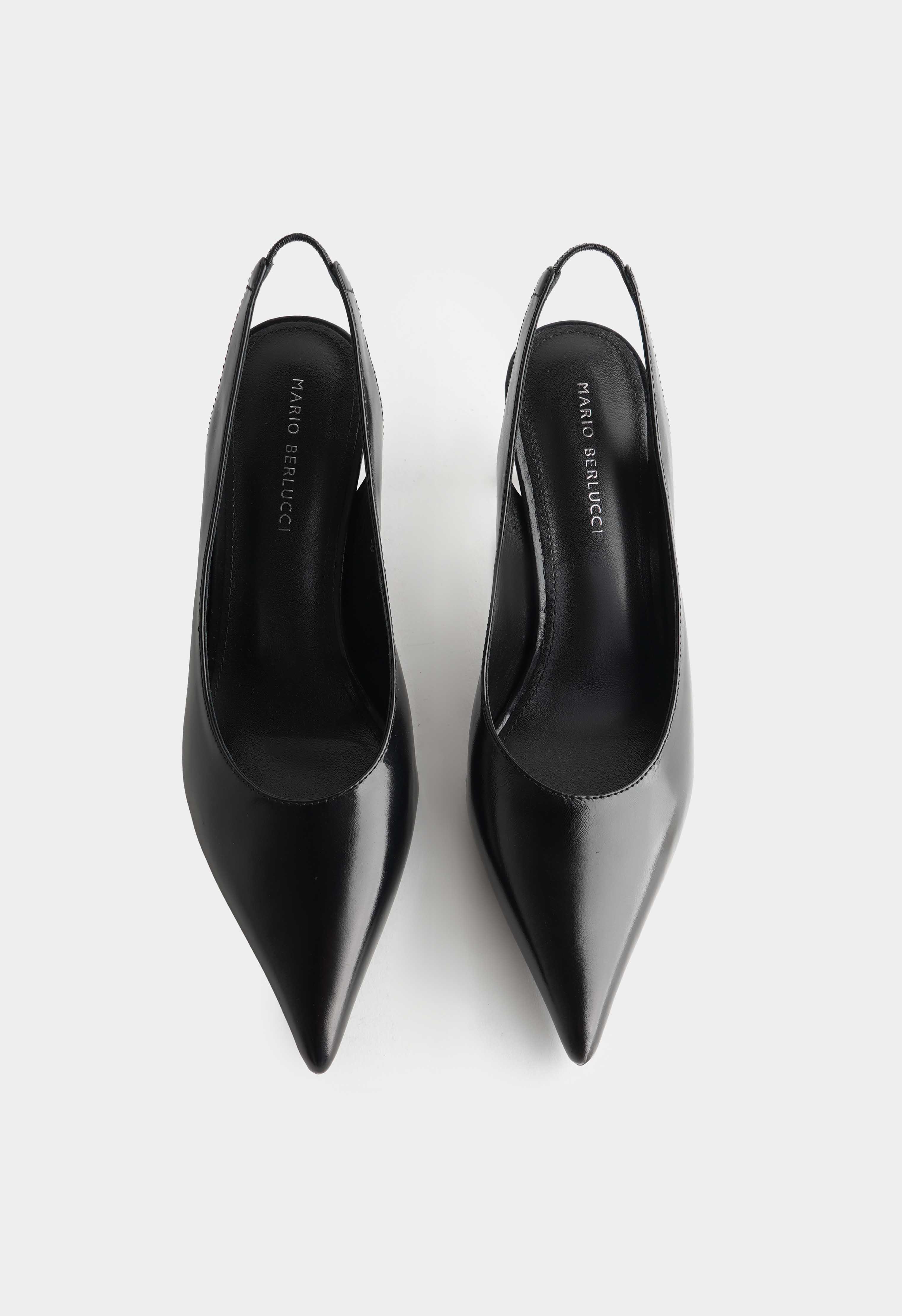 Черные туфли из натуральной кожи – воплощение утонченной строгости с модным акцентом: заостренный мысок визуально вытягивает силуэт, а оригинальный каблук «запятая» добавляет выразительности. Втачная резинка обеспечивает удобную посадку и легкость при надевании, в то время как гибкая подошва дарит комфорт и свободу движений в течение всего дня – идеальный выбор для стильных и уверенных образов.