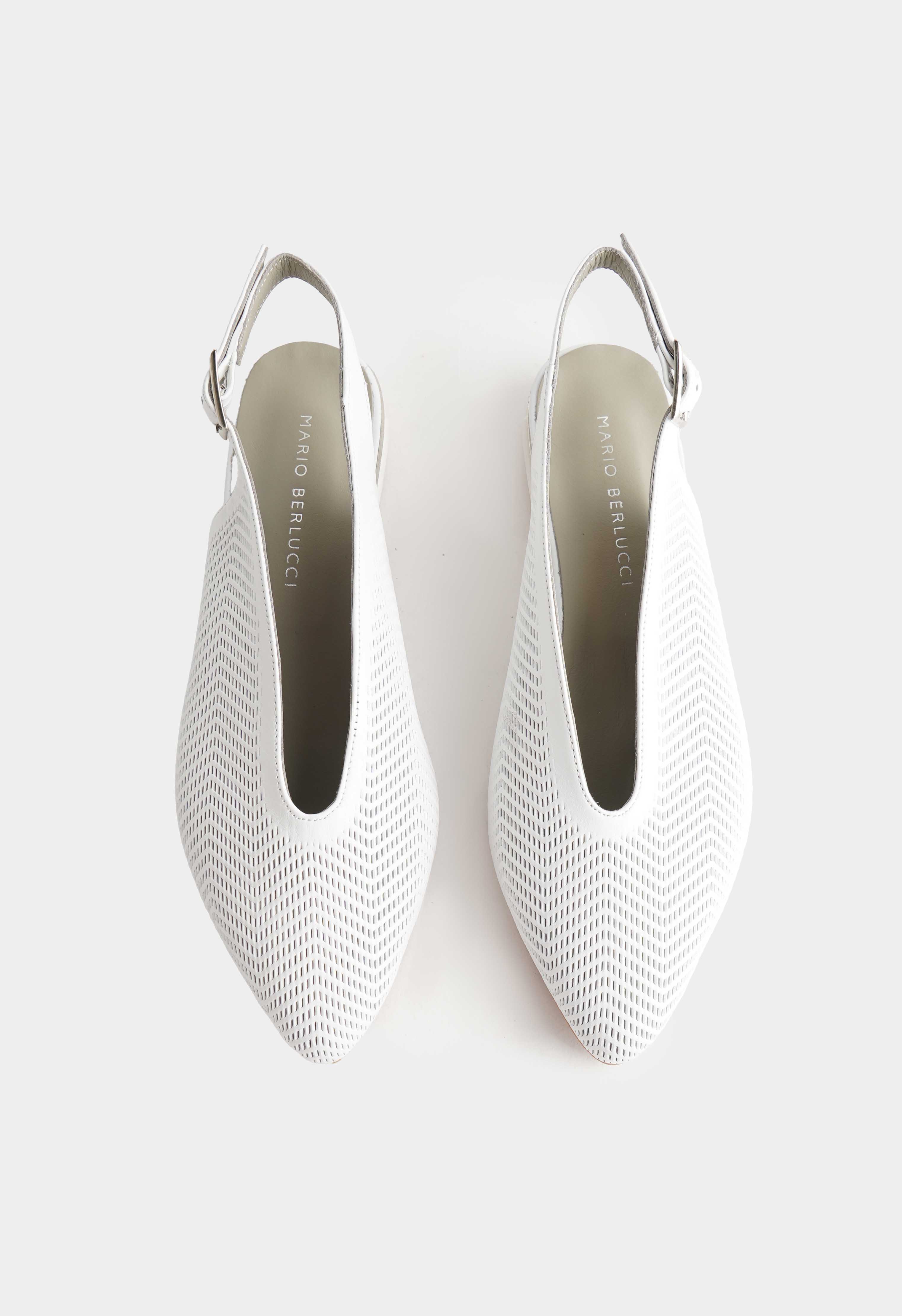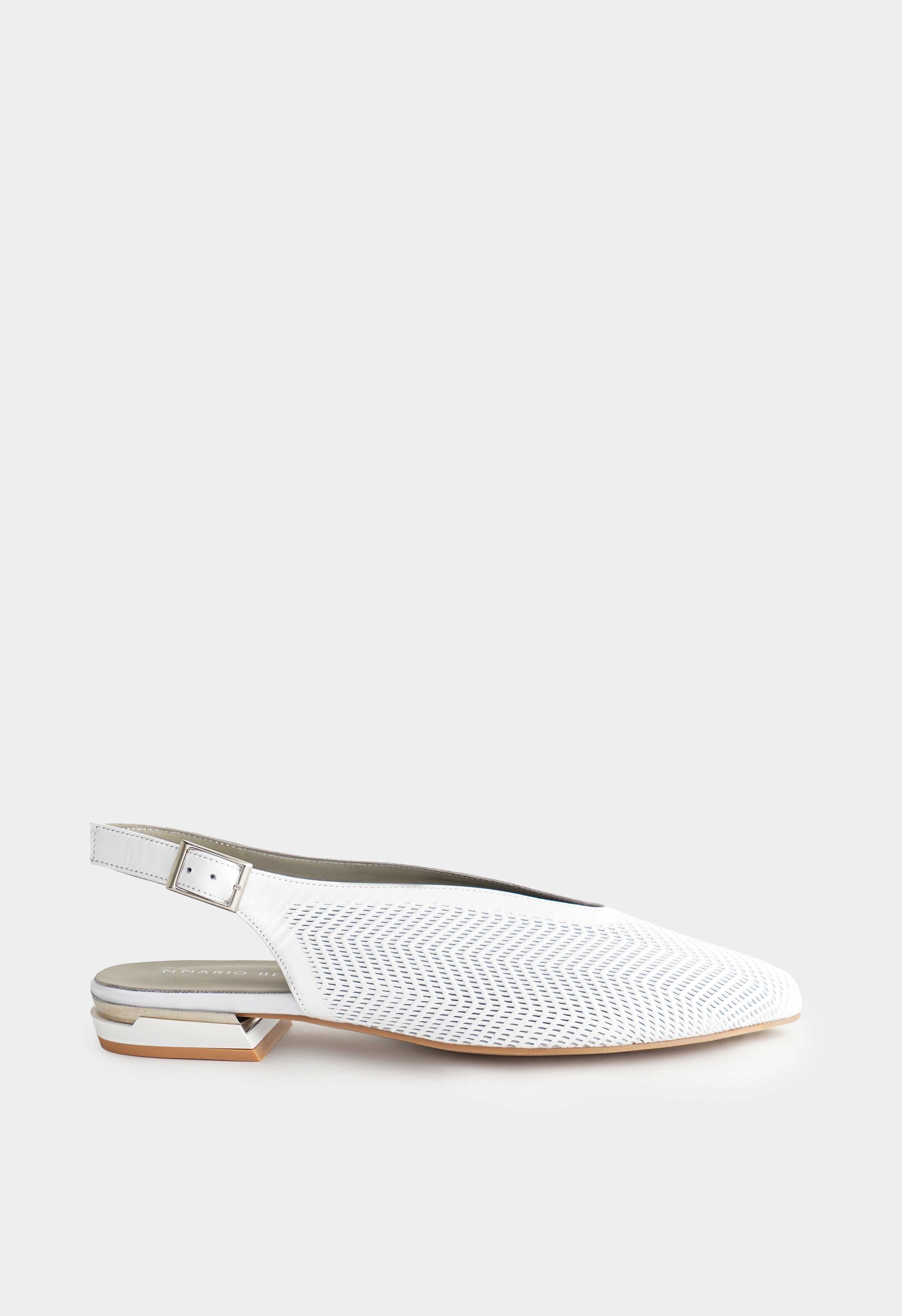 Белые туфли из натуральной кожи – изящное сочетание легкости и утонченного стиля: перфорация создает эффект воздушности, а заостренный мысок делает силуэт элегантным и визуально стройнит ногу. Аккуратная серебряная пряжка подчеркивает современный характер модели, венский каблук обеспечивает комфорт и устойчивость, в то время как жесткая подошва дарит уверенность в каждом шаге.