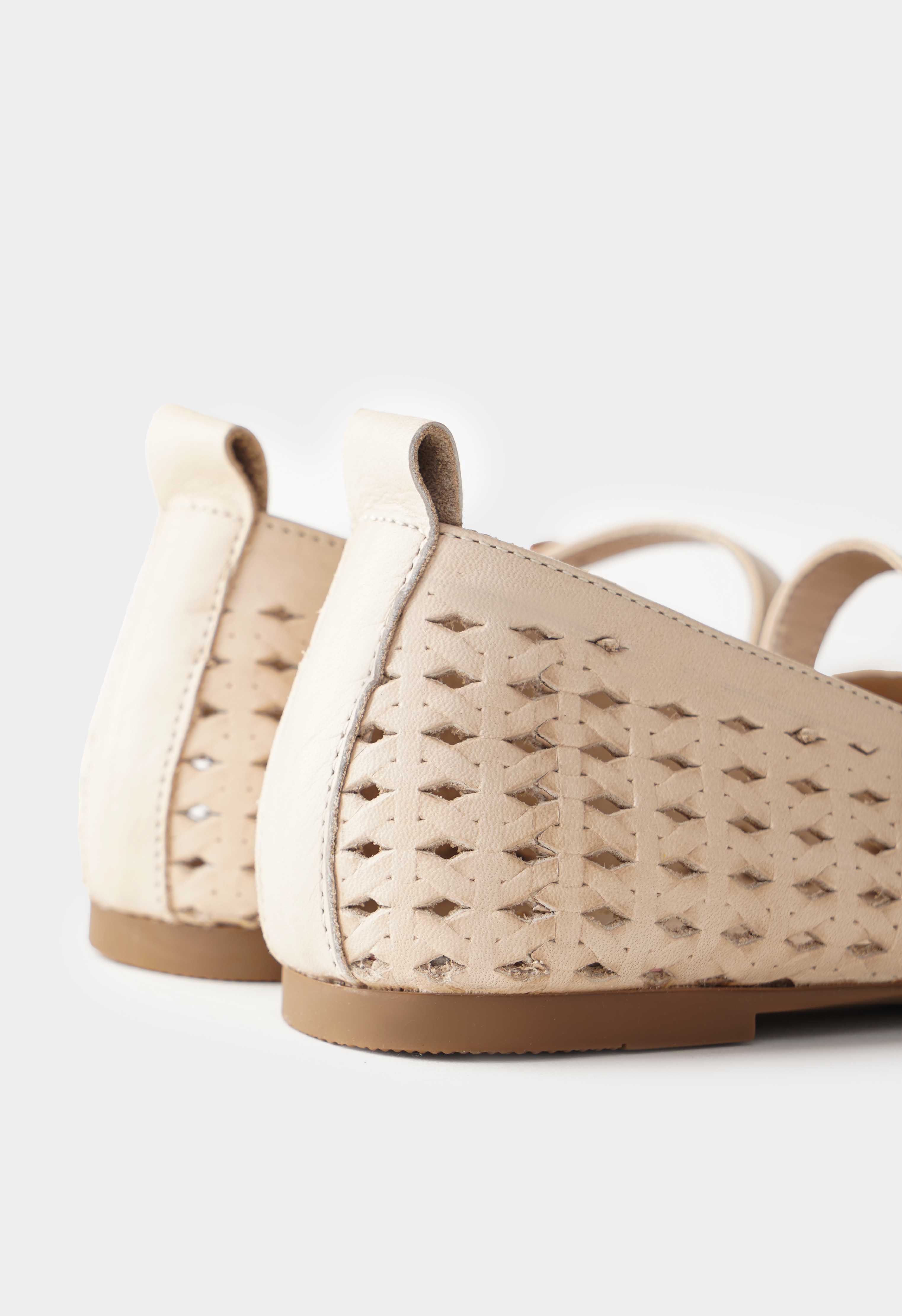 Бежевые балетки из натуральной кожи – идеальное сочетание утонченности и повседневного комфорта. Перфорация придает модели легкость, а округлый мысок обеспечивает мягкую посадку и удобство на протяжении всего дня. Аккуратный ремешок с золотой пряжкой не только фиксирует стопу, но и добавляет образу элегантный акцент. Невысокий венский каблук делает силуэт женственным, в то время как гибкая подошва дарит свободу движений и комфорт при каждом шаге.