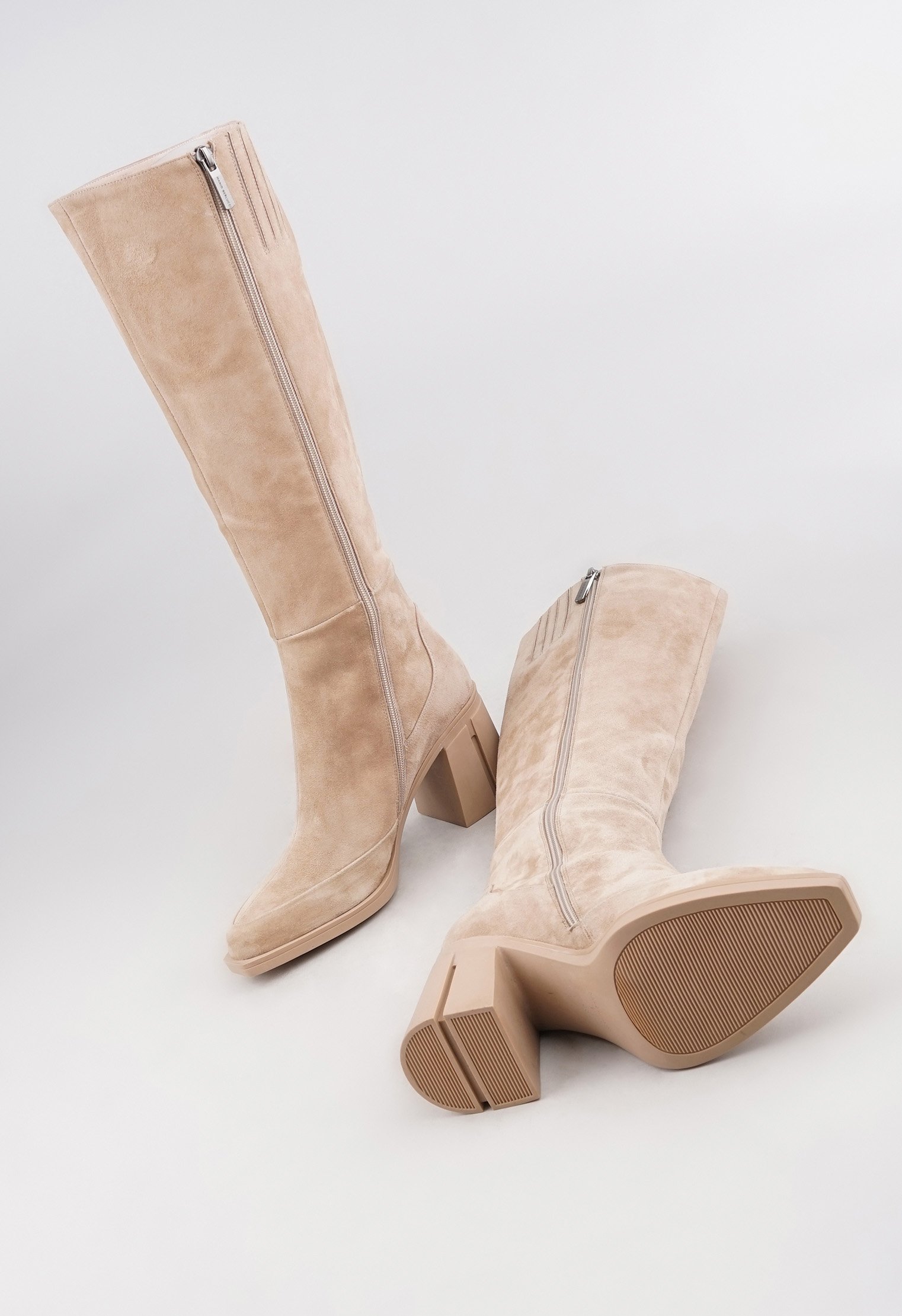 Обратите внимание: данная модель идёт в размер и отлично подходит для ног со средней и узкой полнотой стопы. Стильные сапоги из новой коллекции выполнены из натуральной замши бежевого цвета и дополнены оригинальным каблуком. Эластичные вставки обеспечивают особенно комфортную посадку, мягкая кожаная подкладка идеально облегает стопу. Актуальная модель в однотонном дизайне превосходно сочетается с элементами базового и классического гардероба.