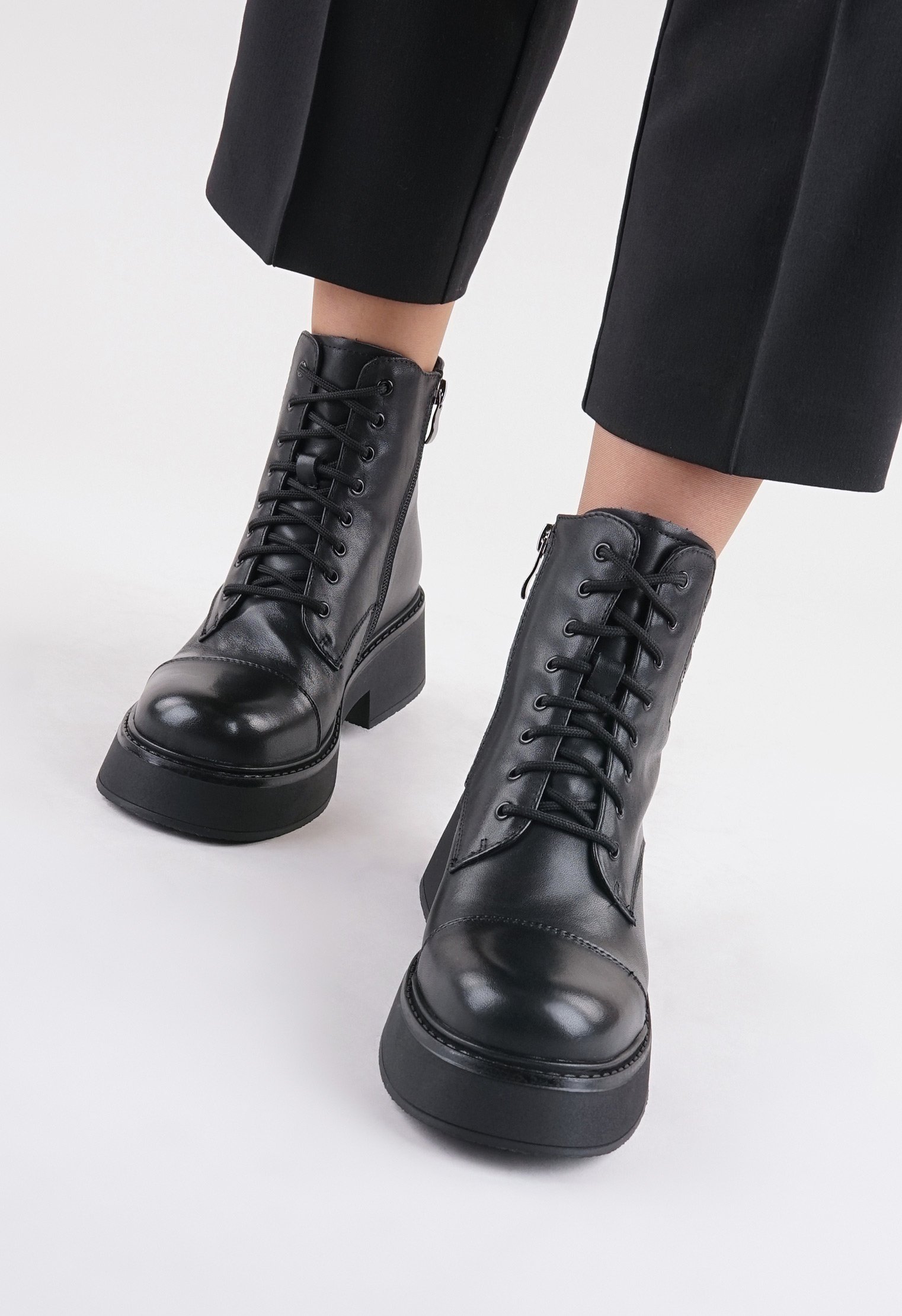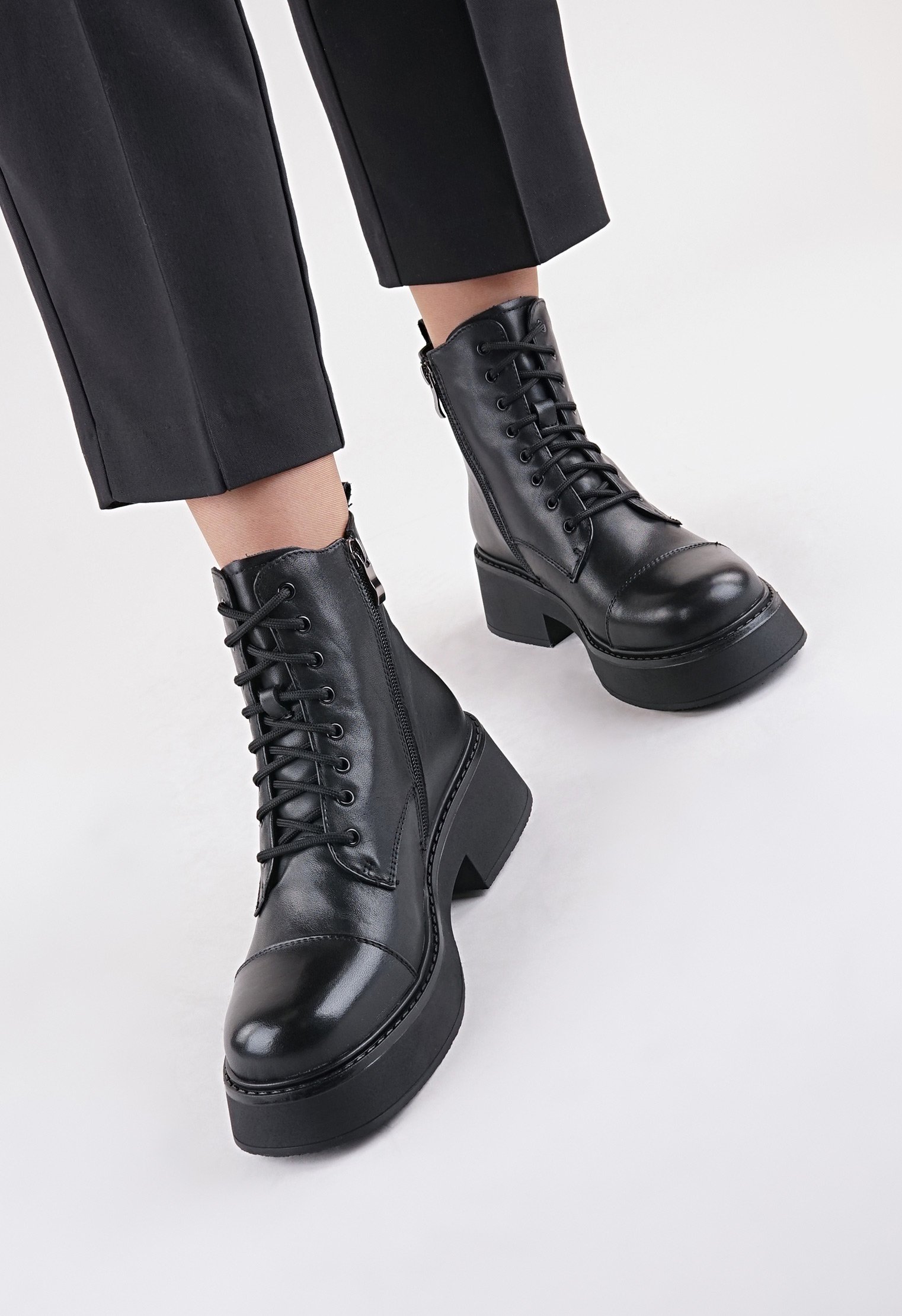 Во время доставки я смогла примерить ботинки, и мне все понравилось: качество обуви - отличное, материалы и исполнение на высоте. Очень удобные и комфортные, внутри тонкий слой ворсина, поэтому ботинки ношу в зимний период - живу в Сочи, это лучшее решение.