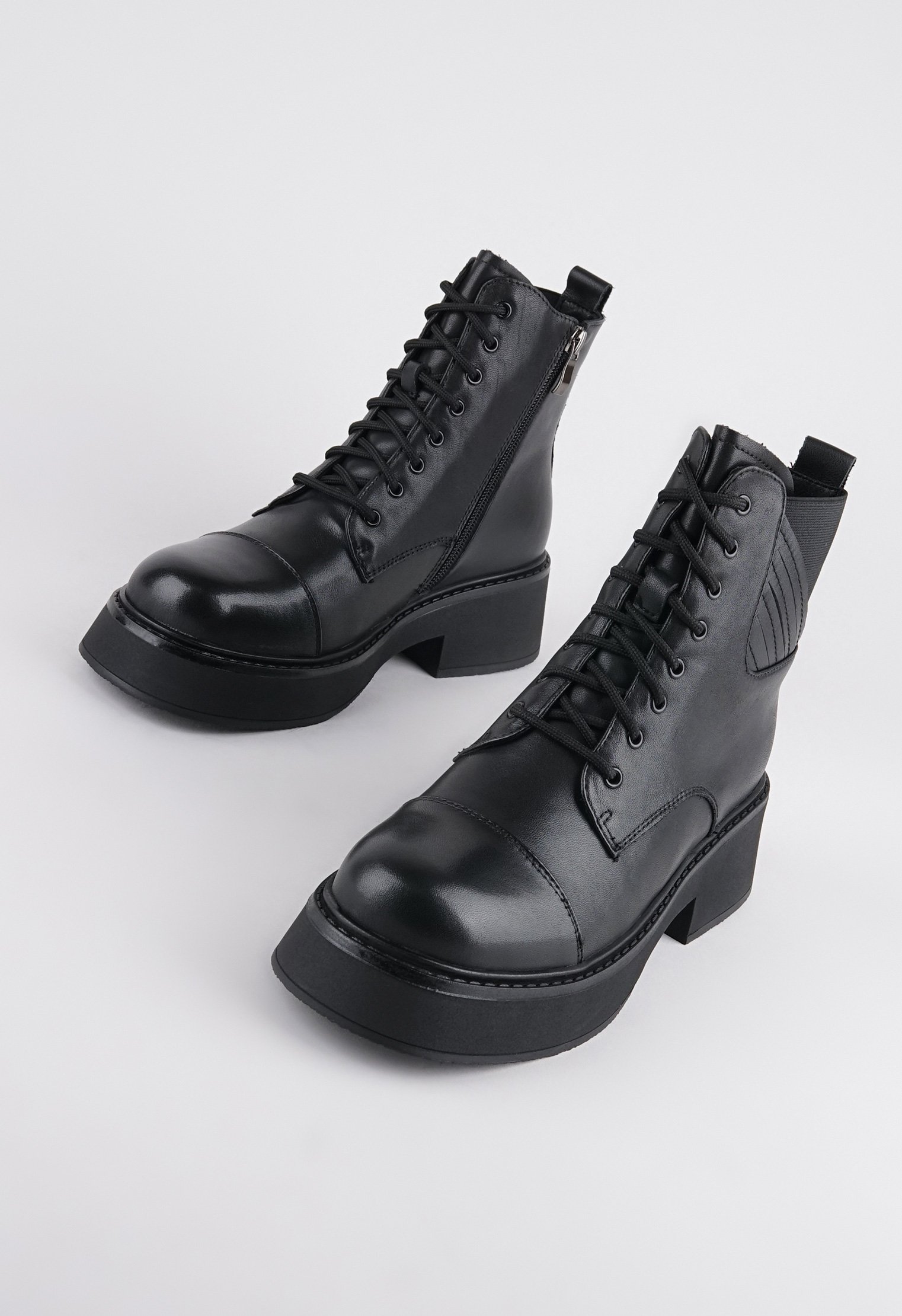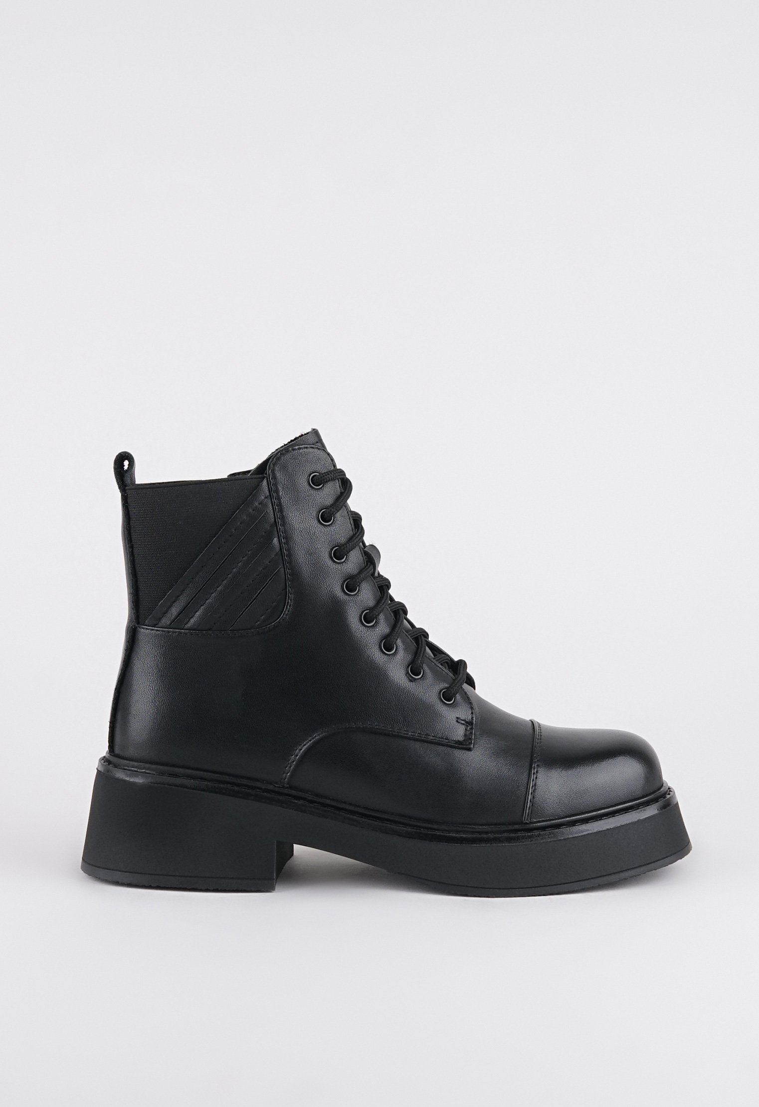 Однотонные ботинки из новой коллекции выполнены из натуральной кожи и дополнены широким каблуком. Трендовый силуэт на платформе дополнен удобной молнией сбоку и эластичными вставками. Утеплённая подкладка из байки обеспечивает комфорт в любую погоду. Современная модель станет украшением гардероба модницы и останется актуальной не один сезон. Чтобы выбрать наиболее комфортную модель, соответствующую вашим анатомическим особенностям, следует учесть полноту модели и характеристики стопы. Более подробную информацию по выбору размера и об особенностях модели предоставит наш менеджер.