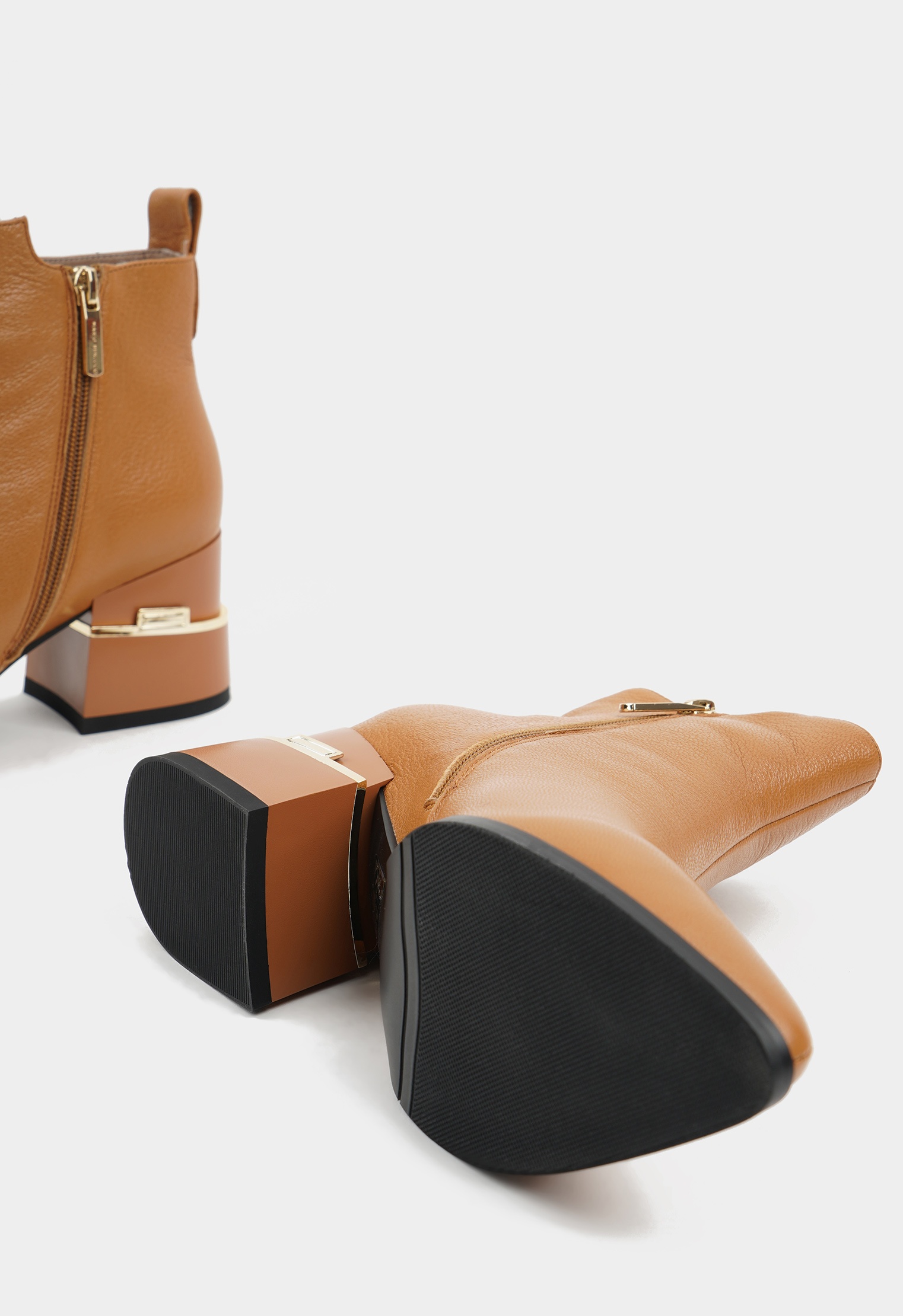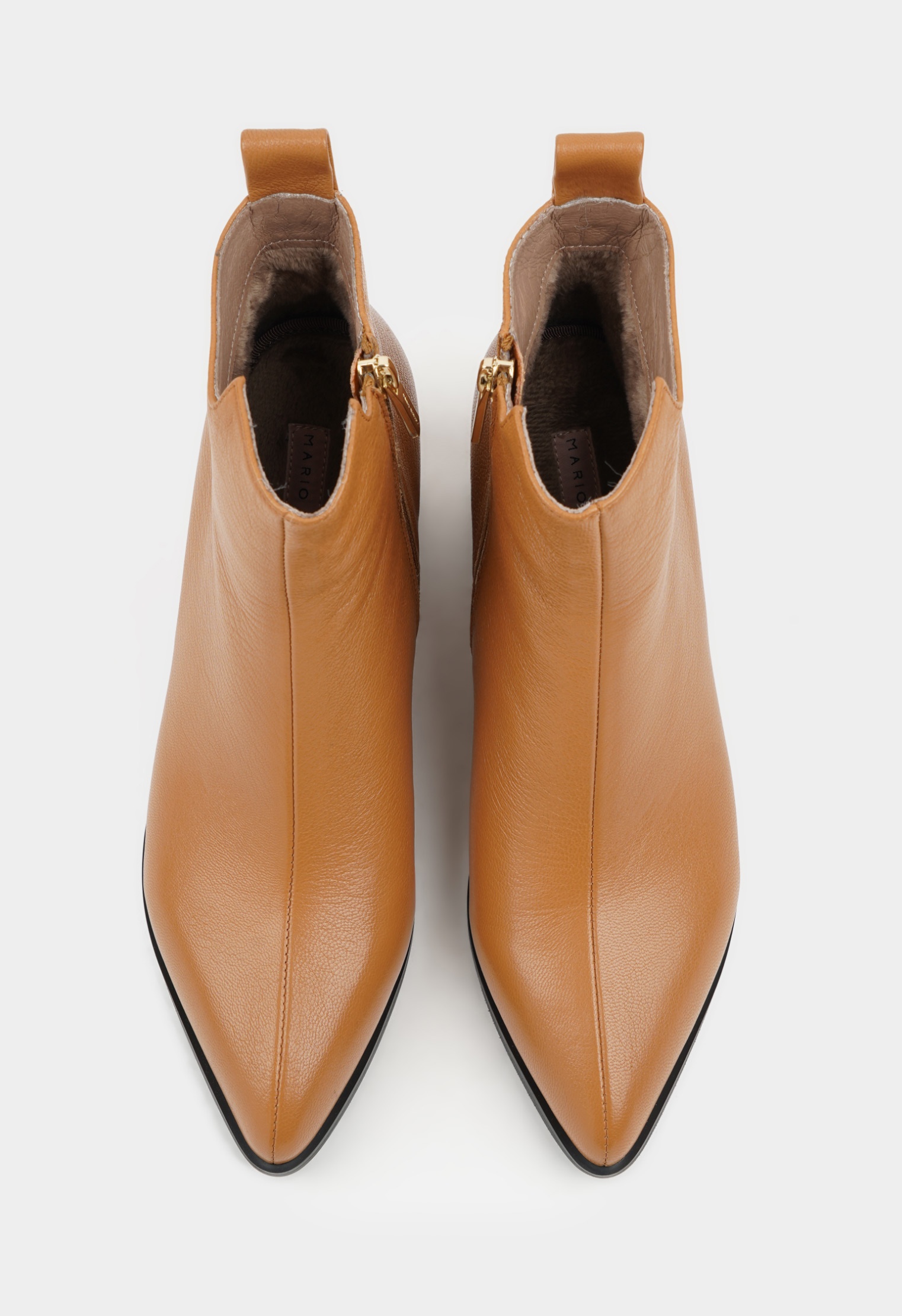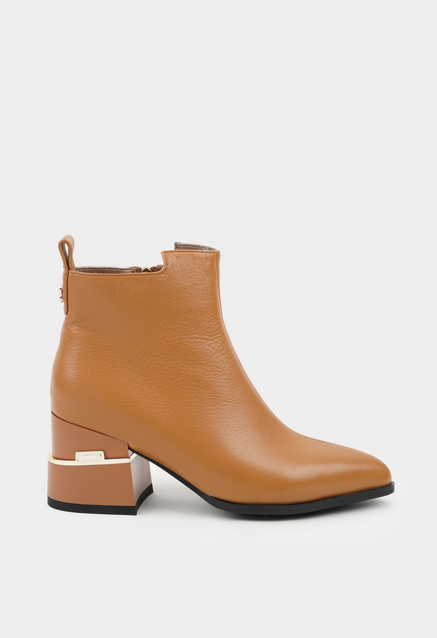 Стильные ботильоны из новой коллекции выполнены из натуральной кожи рыжего цвета и декорированы изящной фурнитурой. Трендовый силуэт с заострённым мысом дополнен удобной молнией сбоку и устойчивым каблуком в тон. Утеплённая подкладка и стелька из байки гарантируют комфорт в демисезон. Эффектная модель станет украшением модного гардероба. Чтобы выбрать наиболее комфортную модель, соответствующую вашим анатомическим особенностям, следует учесть полноту модели и характеристики стопы. Более подробную информацию по выбору размера и об особенностях модели предоставит наш менеджер.