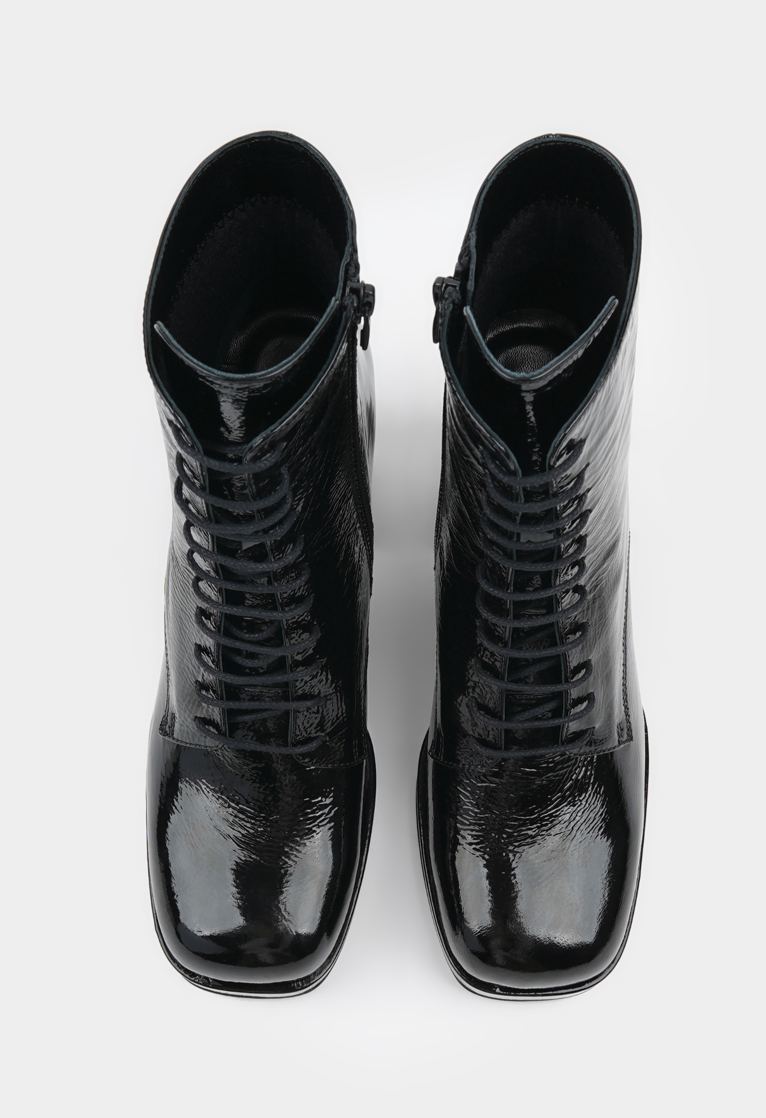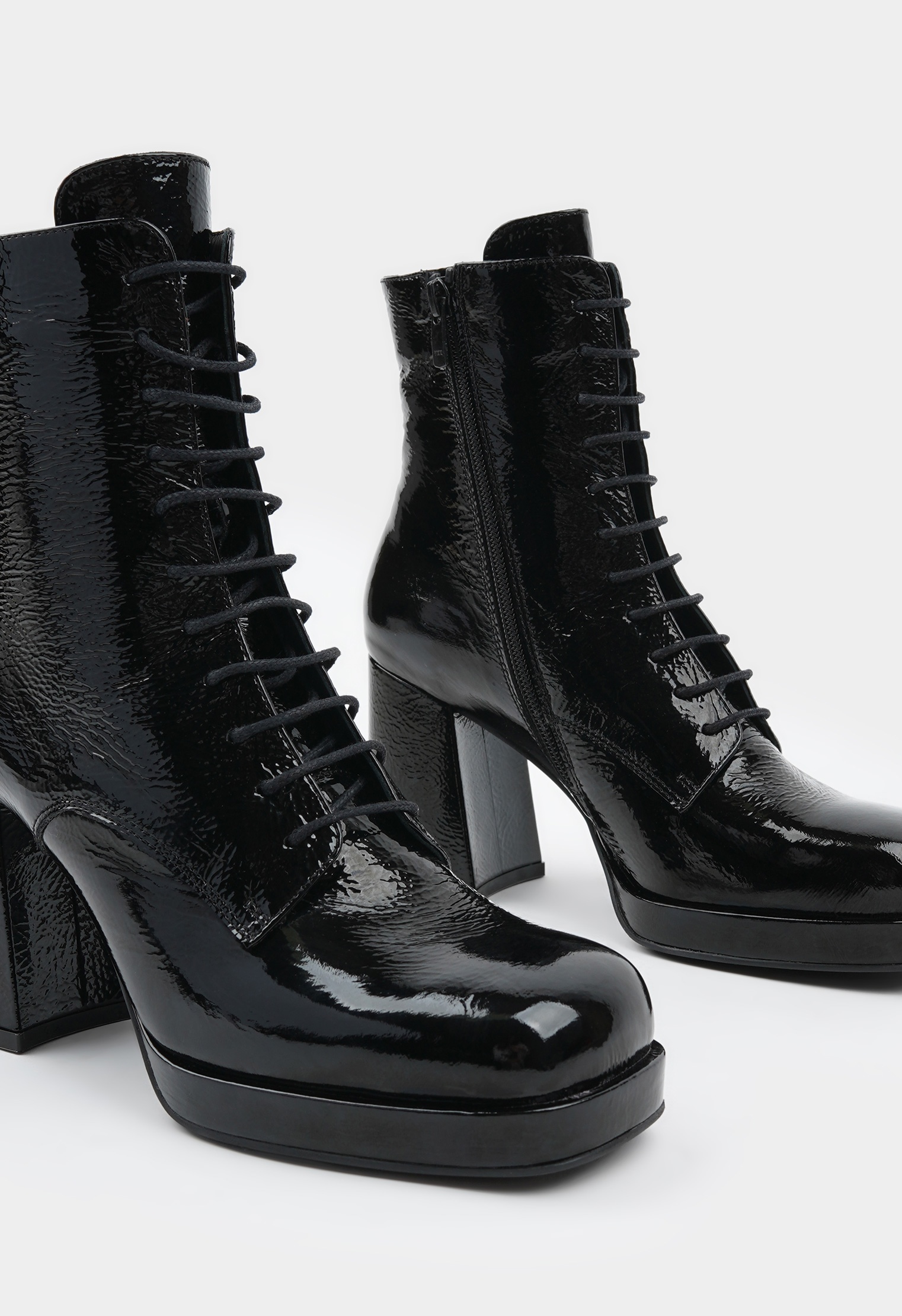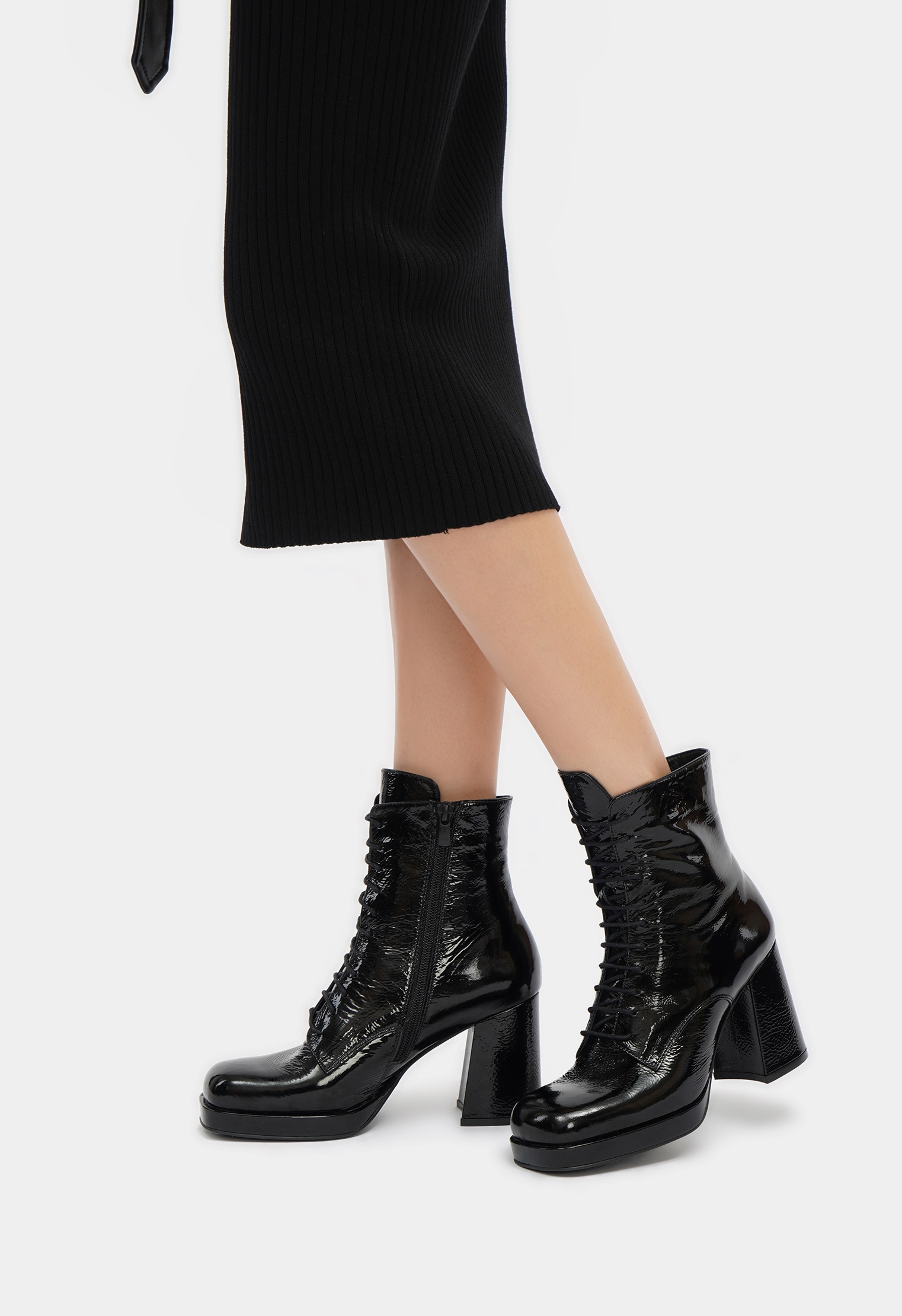 Эффектные ботильоны выполнены из натуральной кожи премиального качества и представлены в черном цвете. Актуальный силуэт на шнуровке дизайнеры дополнили удобной молнией и устойчивым каблуком. За комфорт отвечает утепленная подкладка из байки. Современная модель идеально впишется в классический и базовый гардероб на каждый день. Чтобы выбрать наиболее комфортную модель, соответствующую вашим анатомическим особенностям, следует учесть полноту модели и характеристики стопы. Более подробную информацию по выбору размера и об особенностях модели предоставит наш менеджер.