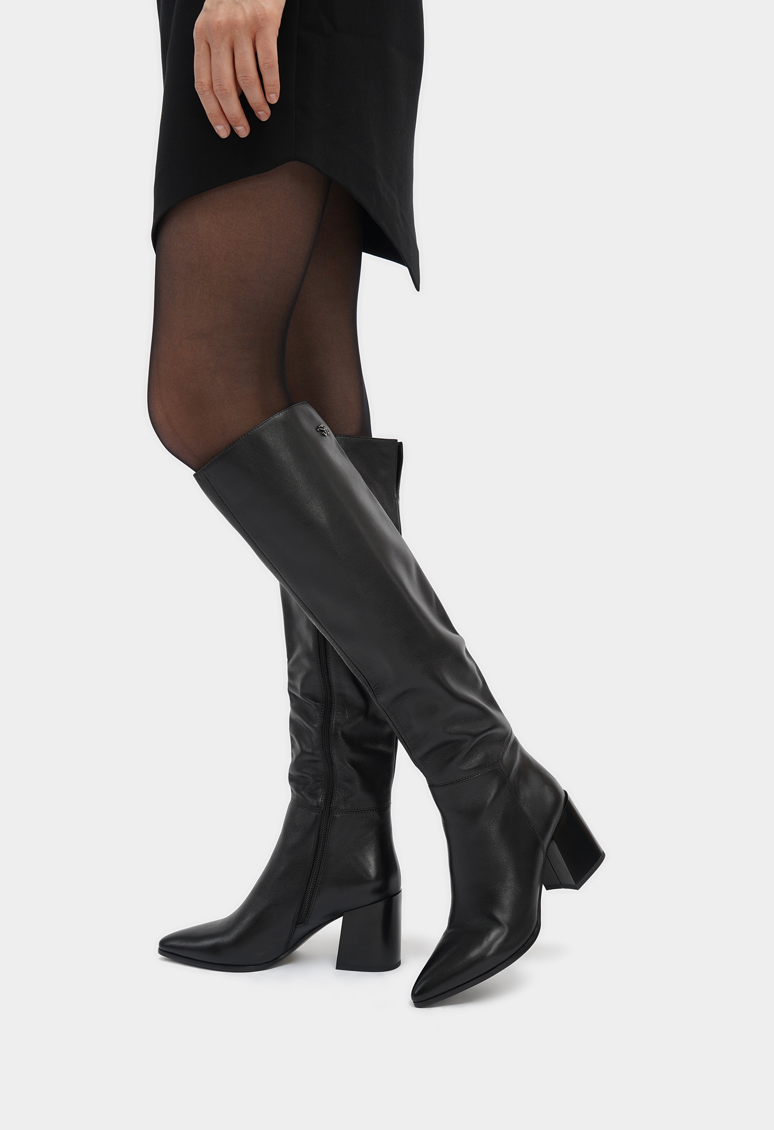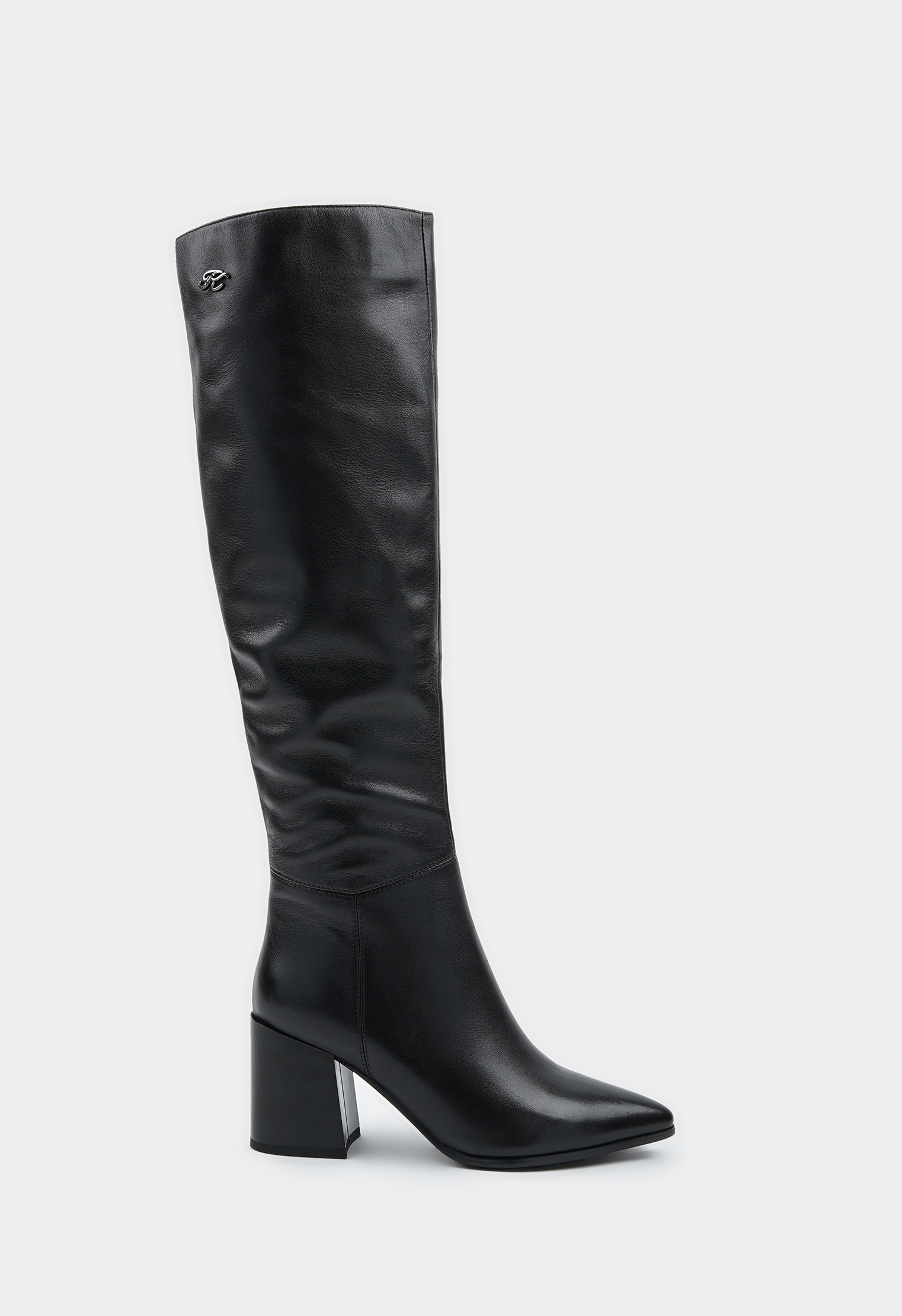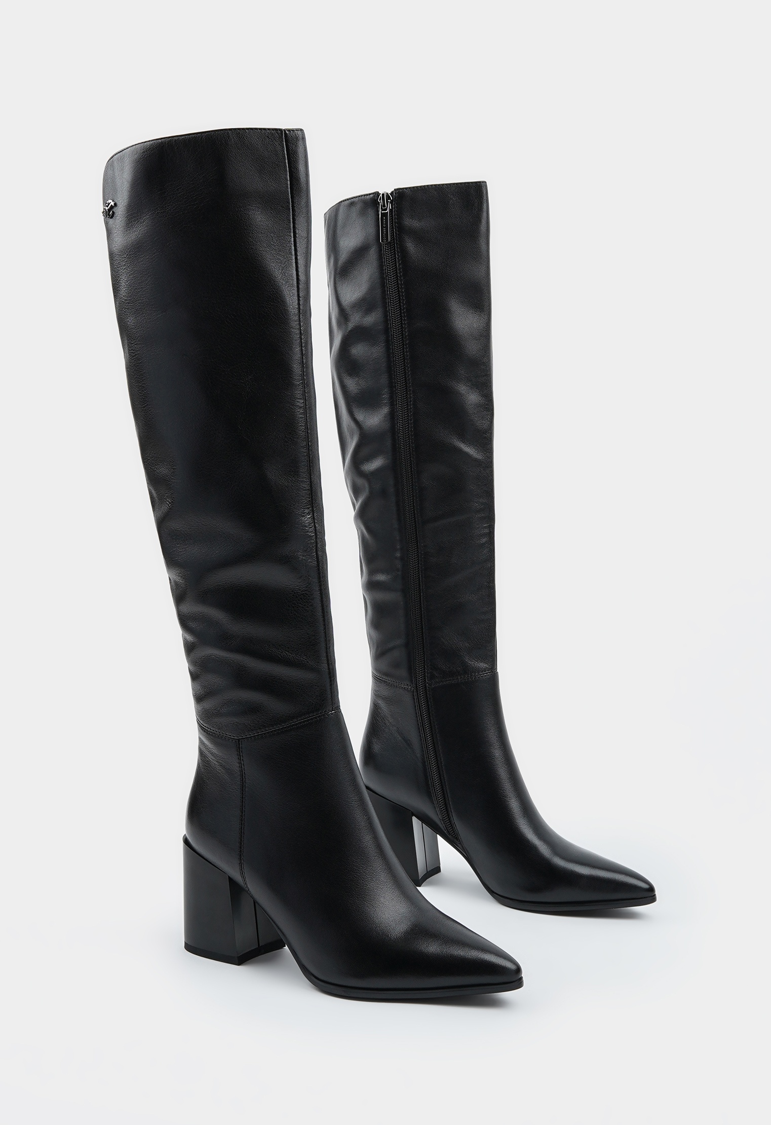 Стильные сапоги выполнены из натуральной кожи премиального качества и представлены в черном цвете. Актуальный силуэт с заостренным мысом дизайнеры дополнили удобной молнией и устойчивым каблуком. За комфорт отвечает утепленная подкладка из байки. Современная модель удачно сочетается с элементами базового и классического гардероба. Чтобы выбрать наиболее комфортную модель, соответствующую вашим анатомическим особенностям, следует учесть полноту модели и характеристики стопы. Более подробную информацию по выбору размера и об особенностях модели предоставит наш менеджер.