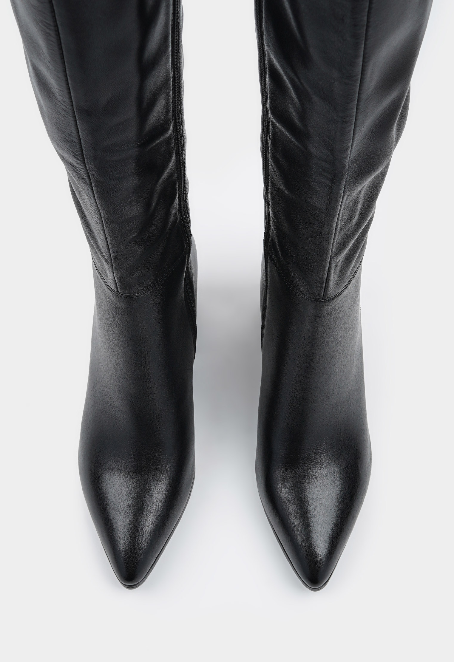 Сапоги черного цвета. Все идеально: мыс. каблук. длина. Немного не рассчитала с голенищем чуть-чуть в натяг, но это дело поправимое (у меня обхват 37 см.) Рост 163см и по длине чуть ниже середины колена. И конечно хочу отметить сюрприз от Марио Берлуччи! На сапогах красуется шикарная буква "К", а у меня фамилия начинается на эту букву - именные сапоги получились))))) Спасибо. за отличную обувь. Мои ножки довольны. Очень приятно покупать качественную обувь в красивой упаковке и чувствовать к себе, как Покупателю, внимание со стороны Продавца, всегда хочется вернуться за покупками.