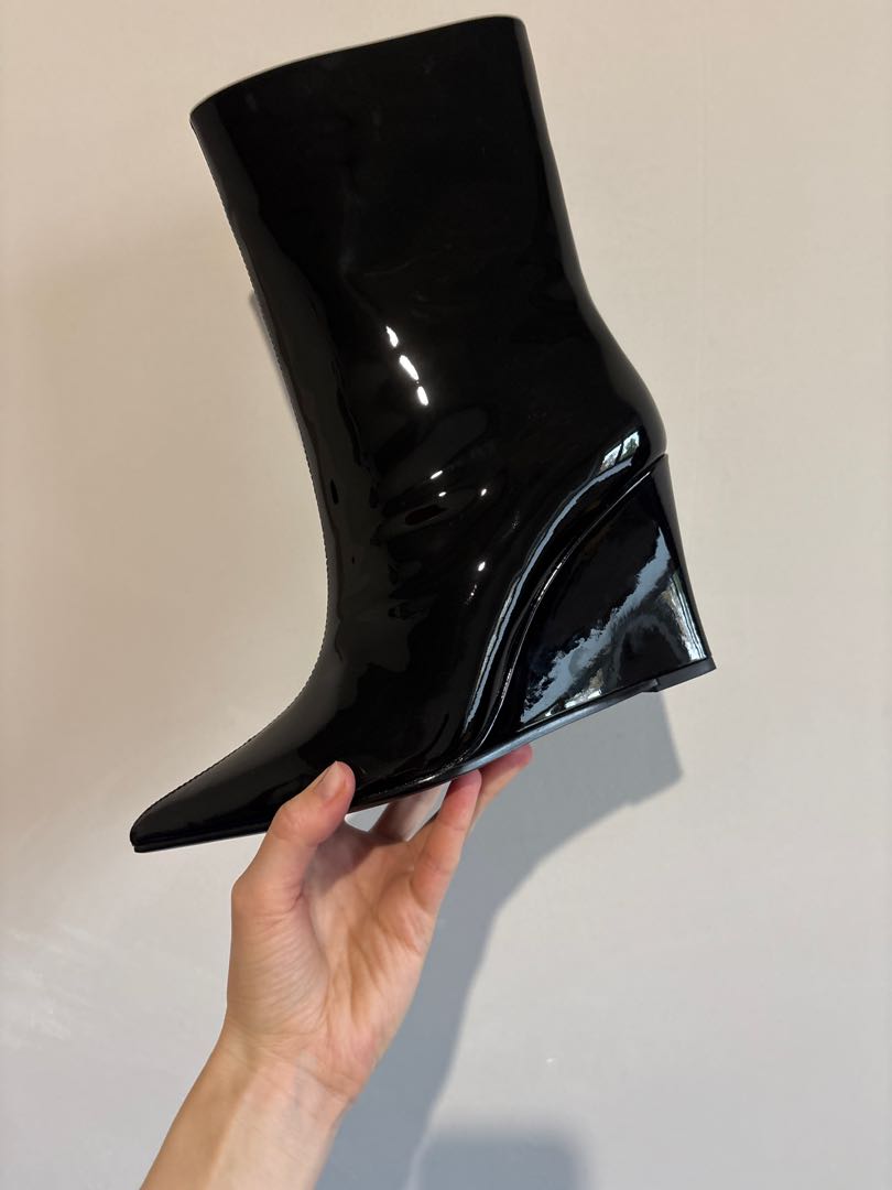 отличного качества сапожки, подъём комфортный, танкетка не смотря на форму вполне устойчивая. я всем