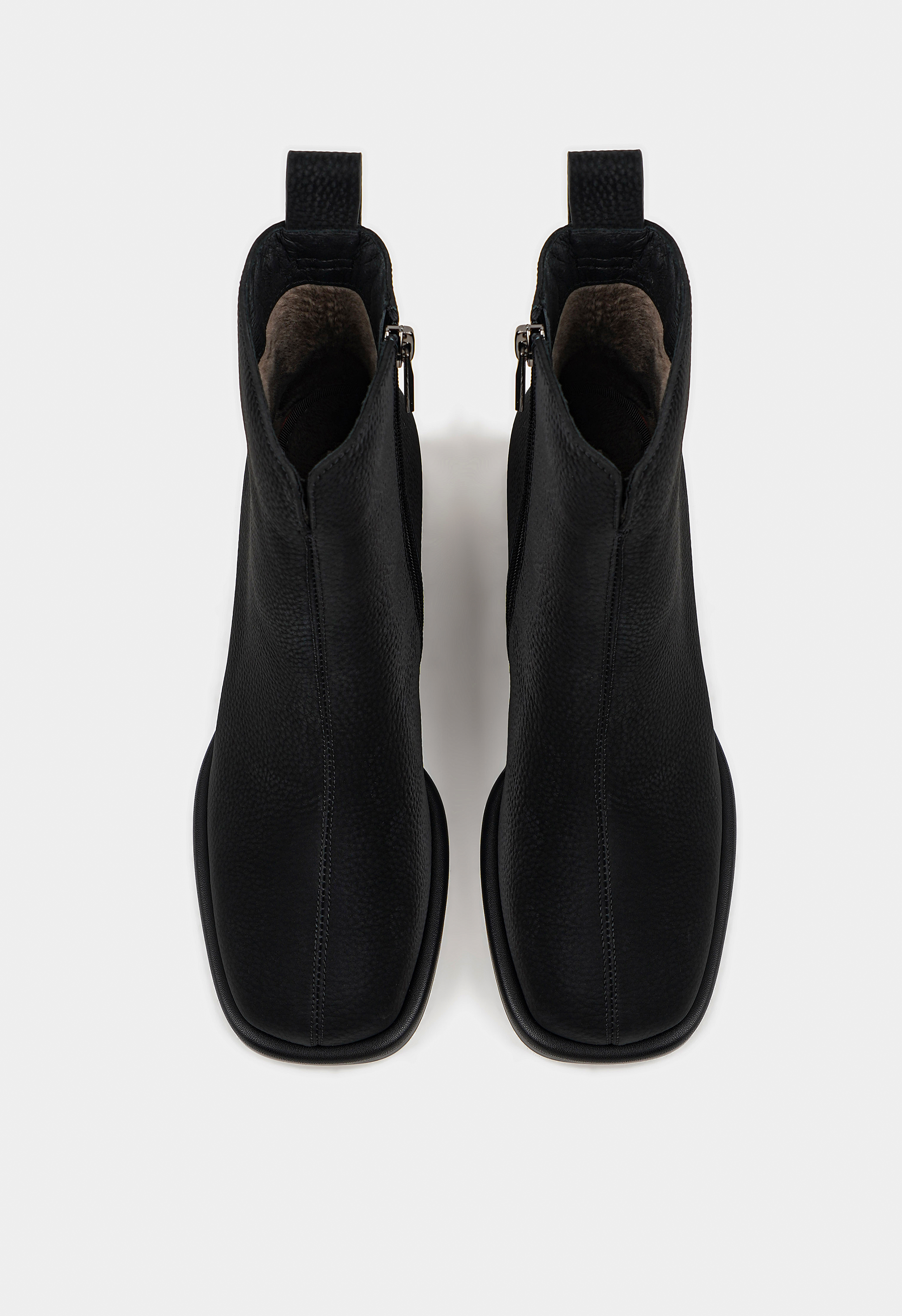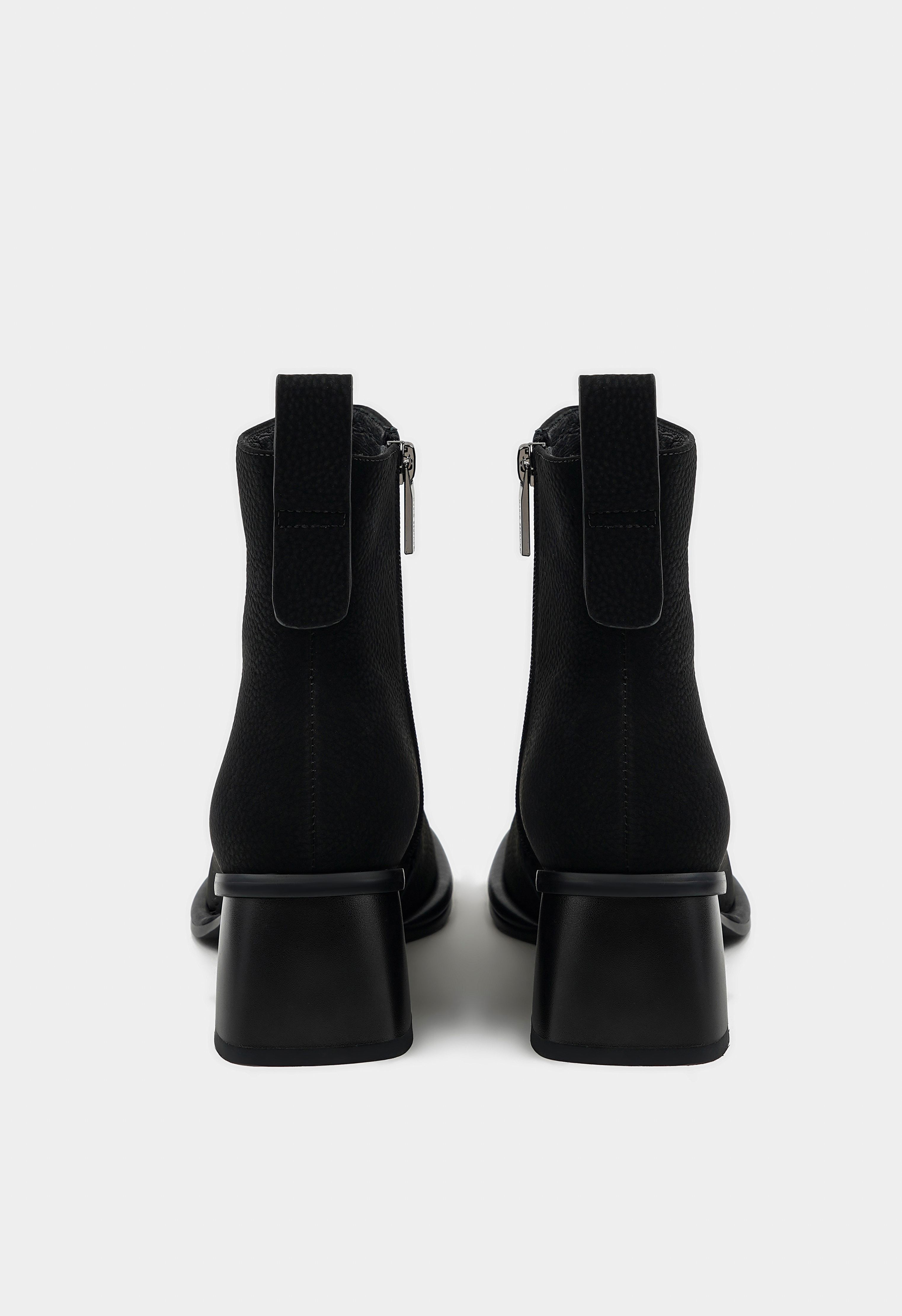 Ботильоны из натурального велюра выполнены в чёрном цвете. Внутренний материал представлен байкой. Стильный дизайн подчёркивают молния в цвете металлик и квадратный тип мыска. Комфорт при ходьбе обеспечивают гибкая подошва и скошенный каблук. Чтобы выбрать наиболее комфортную модель, соответствующую вашим анатомическим особенностям, следует учесть полноту модели и характеристики стопы. Более подробную информацию по выбору размера и об особенностях модели предоставит наш менеджер.
