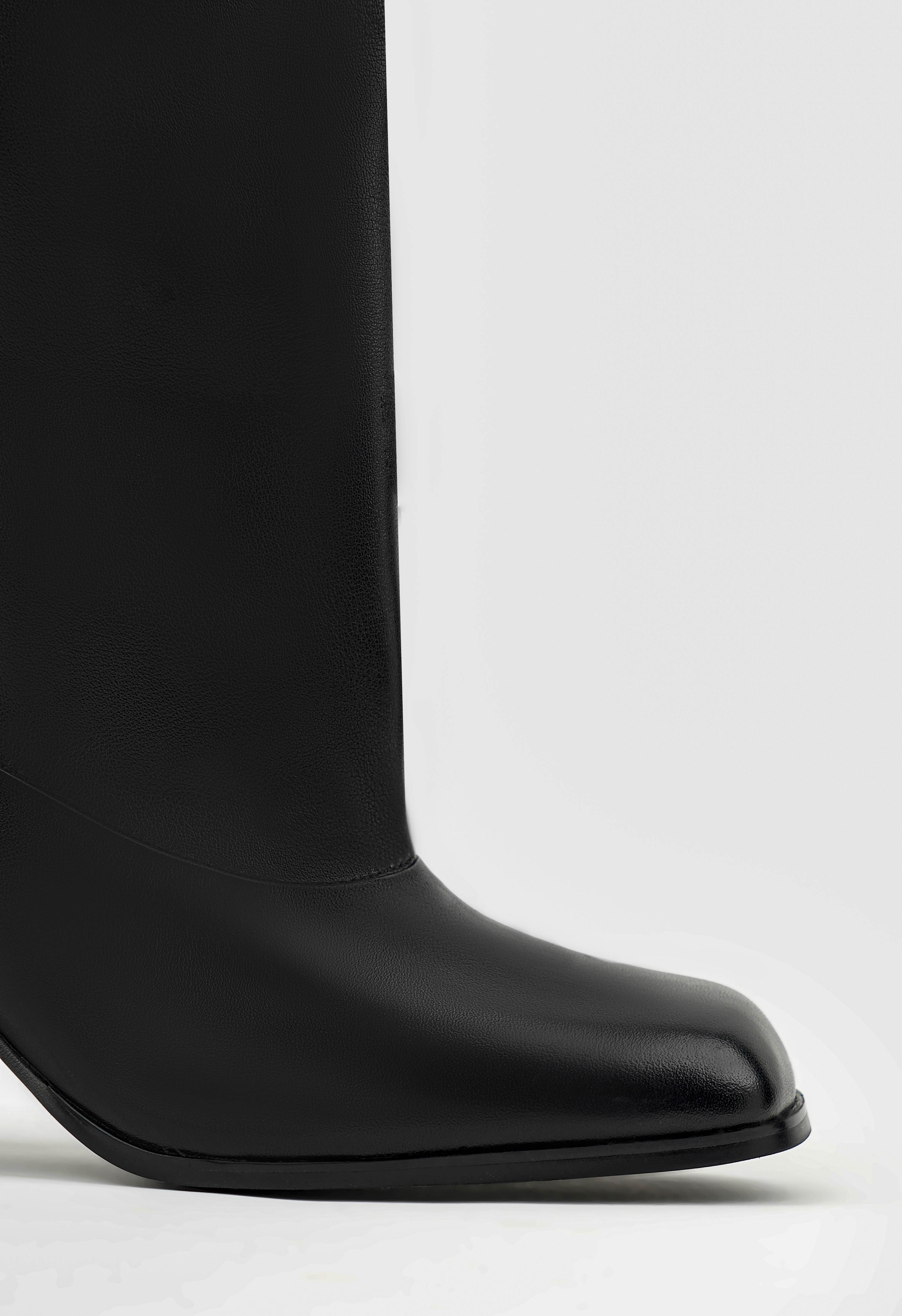 Женские сапоги из натуральной черной кожи – это безупречное сочетание стиля и практичности для активной городской жизни. Модель с модным квадратным мысом и широким каблуком подчеркивает актуальность образа, а гибкая подошва гарантирует комфорт в течение всего дня. Натуральная кожа мягко облегает ногу, обеспечивая приятные ощущения при каждом шаге. Универсальный черный цвет легко сочетается с любой одеждой, а лаконичный дизайн делает эту пару идеальной как для повсевных образов, так и для прогулок.