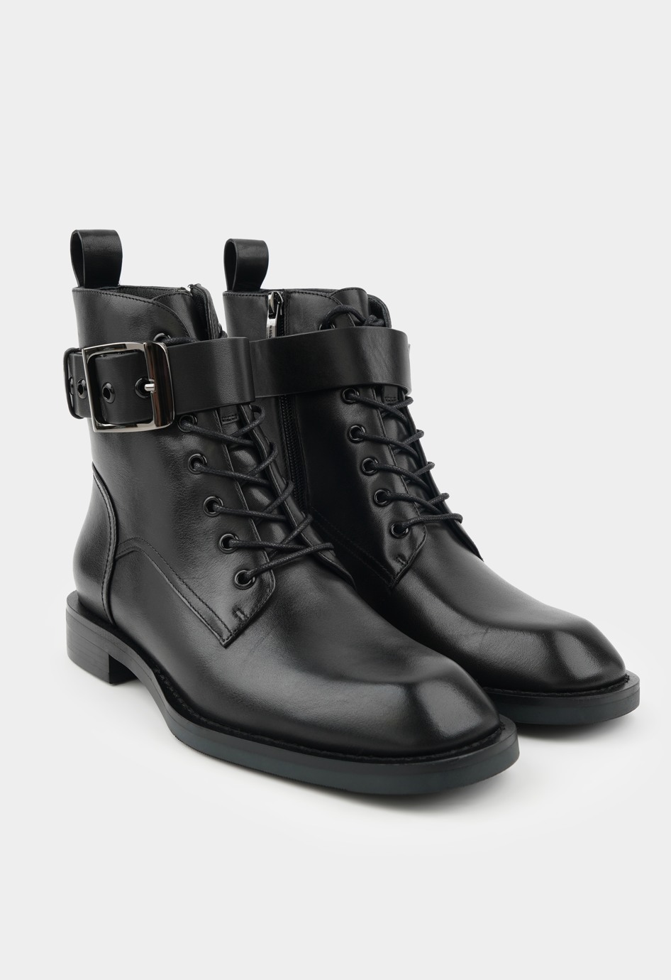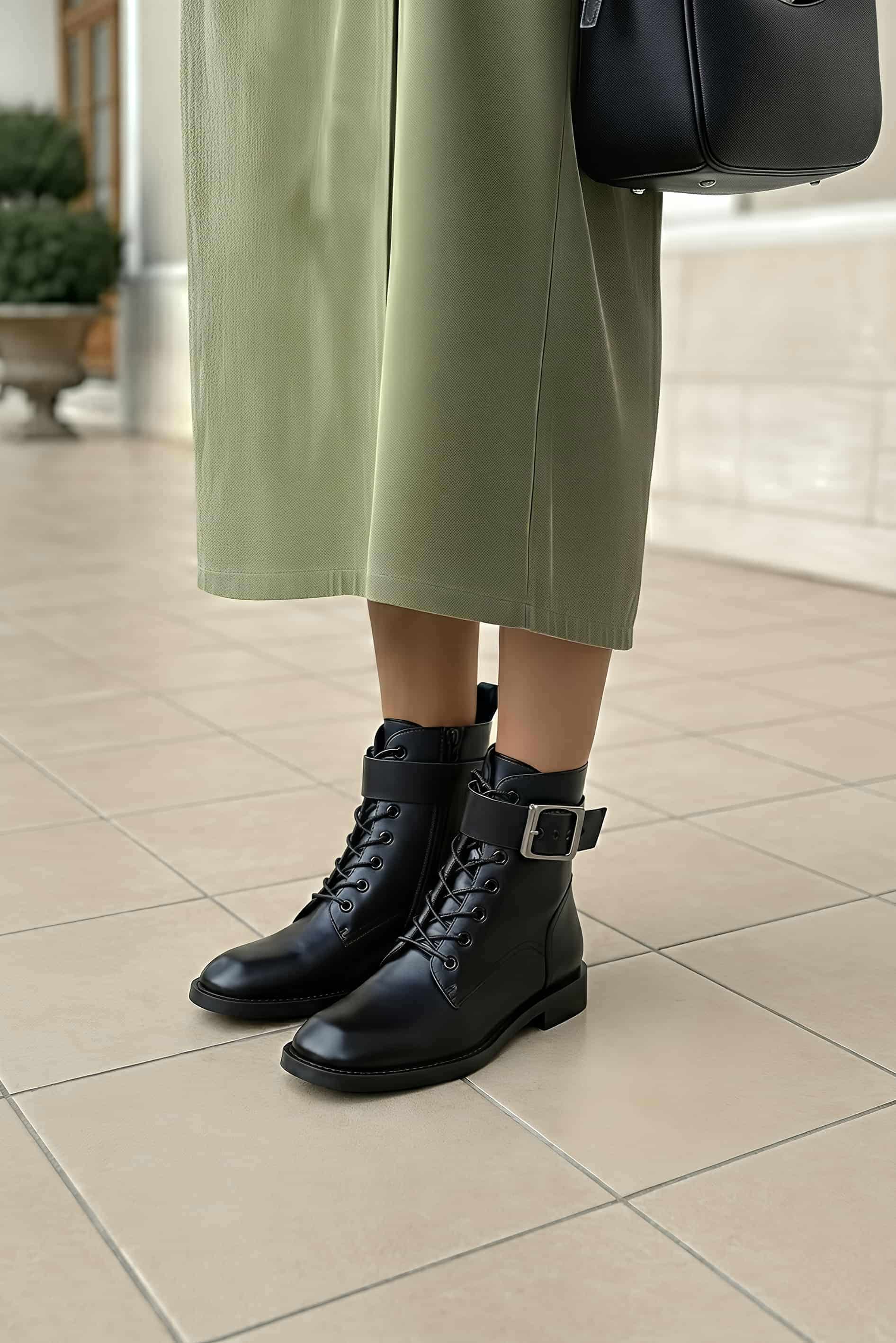Демисезонные ботинки из натуральной кожи с мягкой байкой внутри и дополнительной меховой стелькой в комплекте подарят тепло и комфорт в любую погоду. Гибкая подошва и устойчивый широкий каблук обеспечат уверенность в каждом шаге, а квадратный мысок добавит модного акцента и удобства для стопы. Комбинация молнии и шнуровки позволяет подгонять посадку идеально, в то время как фурнитура в черно-металлическом оформлении придает стильный, немного брутальный характер. Классический черный цвет делает их универсальными для повседневных и деловых образов.