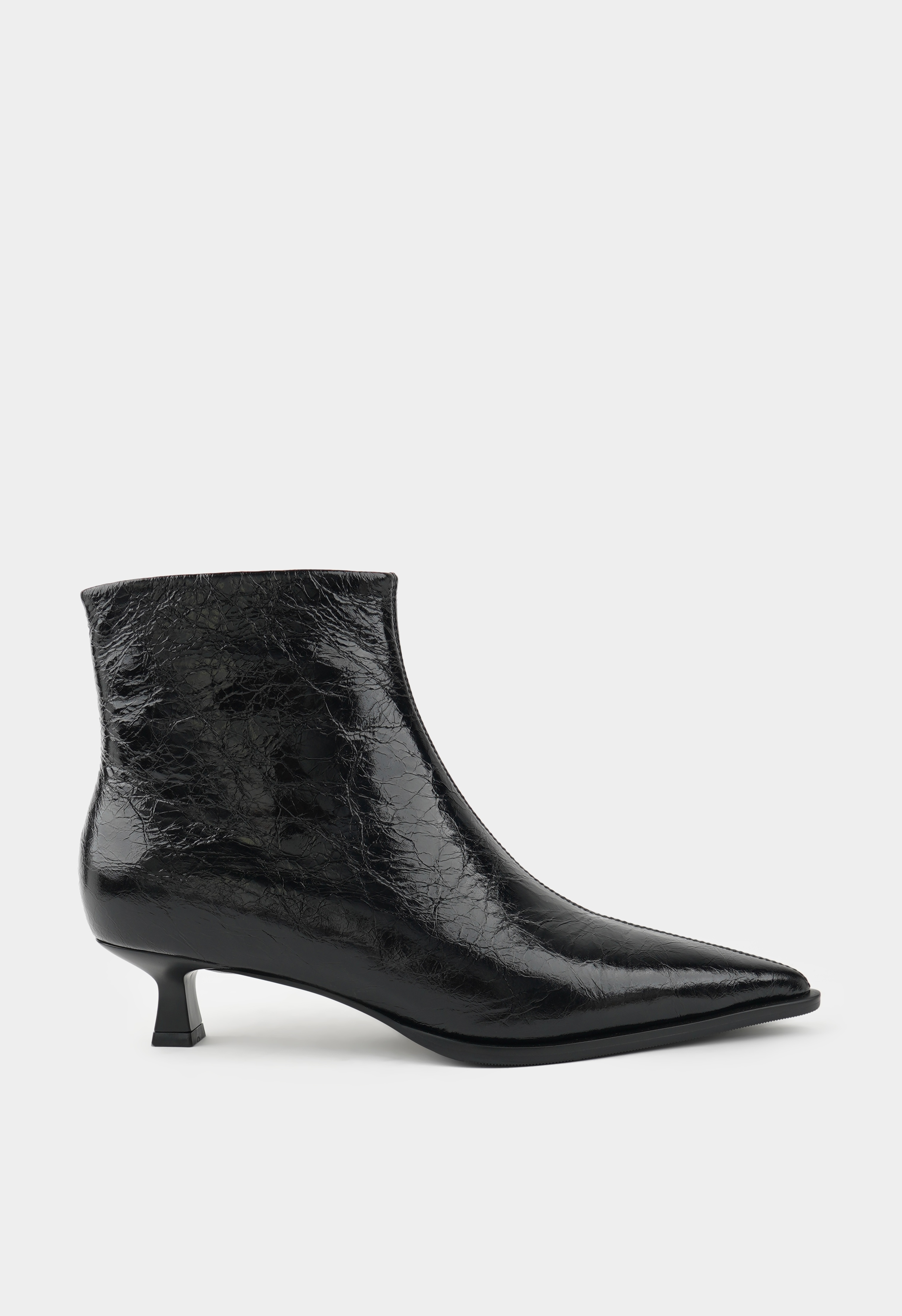 Черные ботильоны из натуральной кожи с байкой внутри – стильное сочетание элегантности и комфорта. Гибкая подошва и аккуратный каблук kitten heel делают походку легкой и уверенной, а заостренный мысок добавляет образу утонченности и современного шарма. Удобная молния обеспечивает быстрое надевание, а металлическая фурнитура подчеркивает изысканный дизайн. Такая модель станет универсальным решением для повседневных и вечерних образов, добавляя им стиль и женственность.