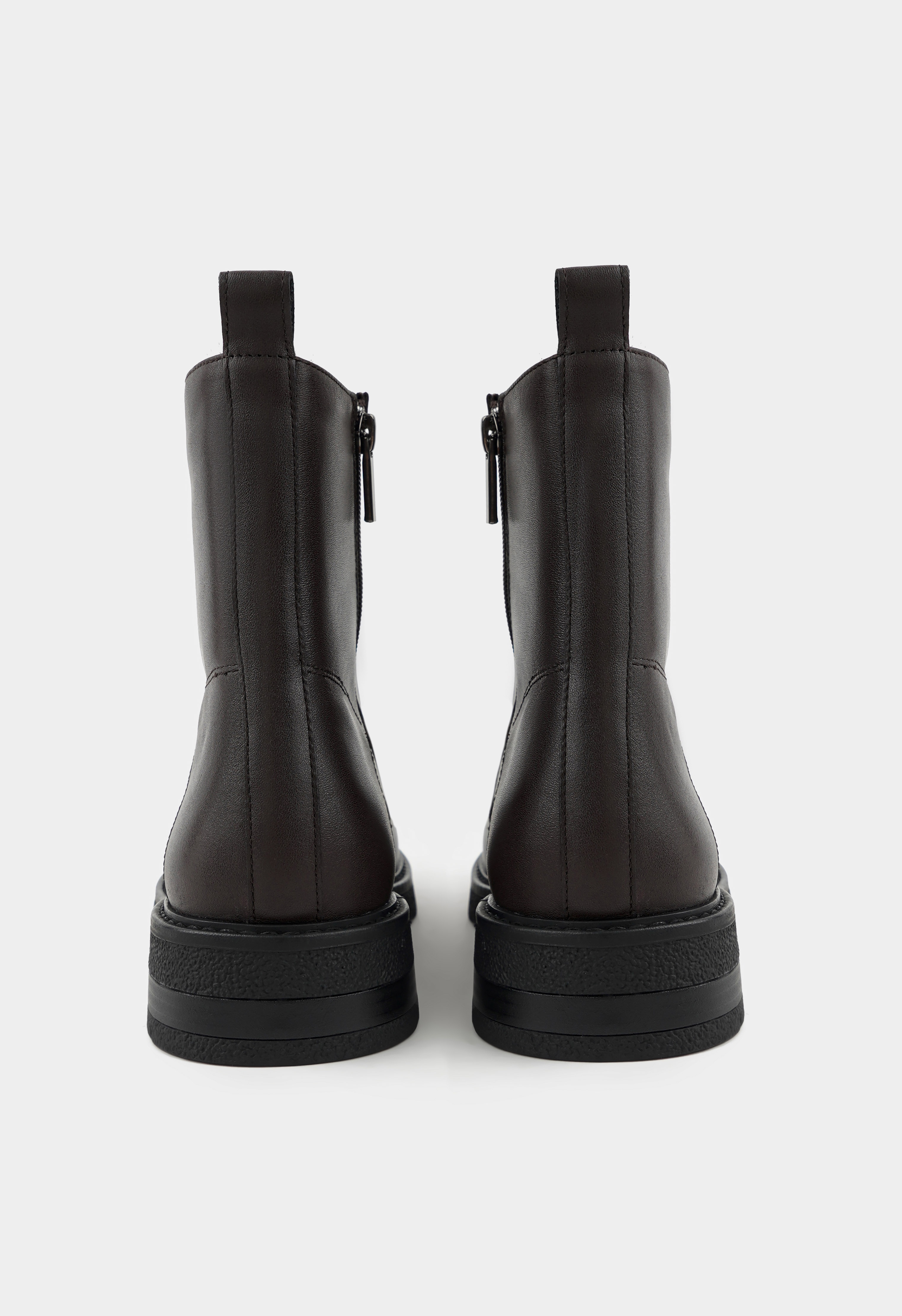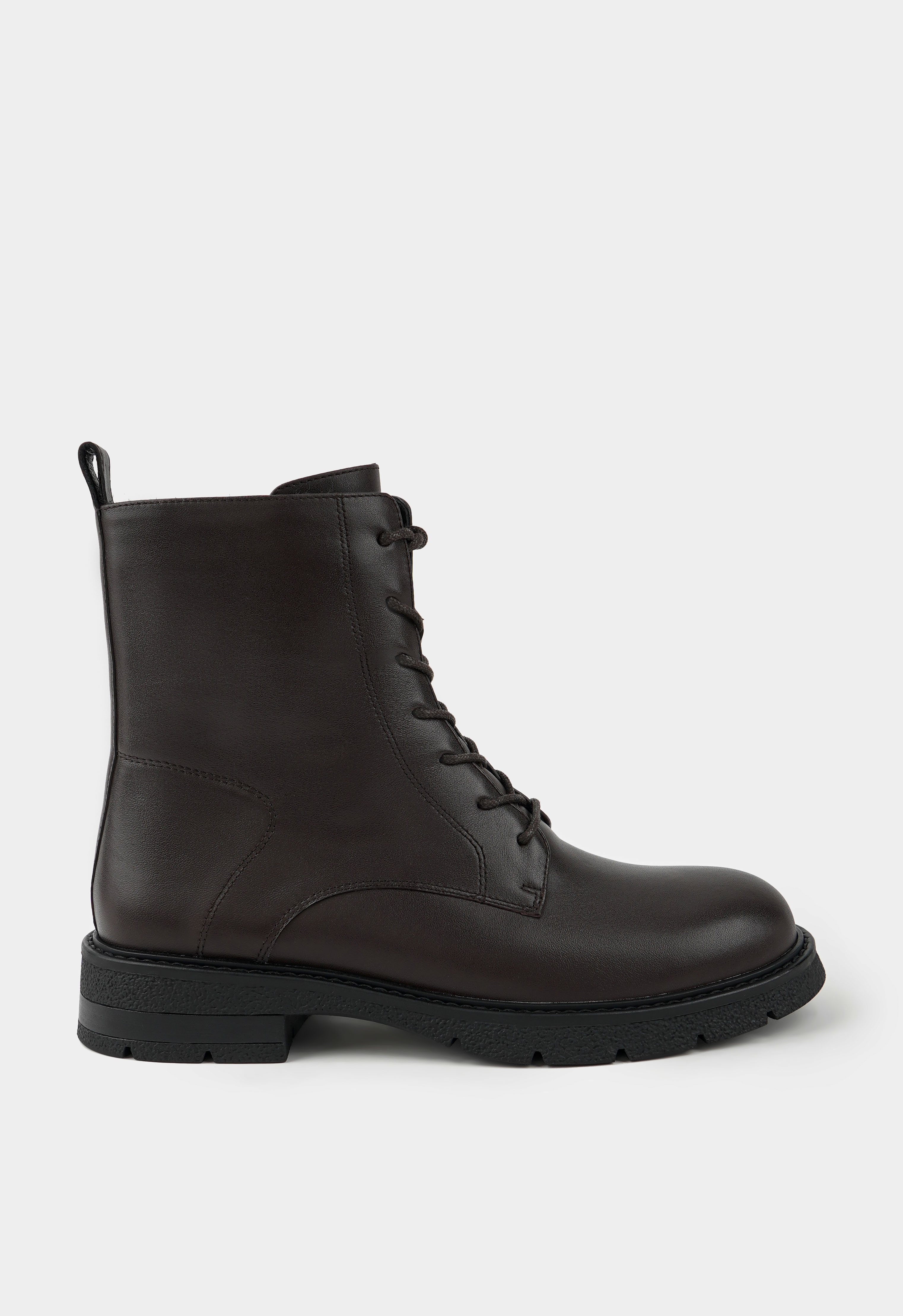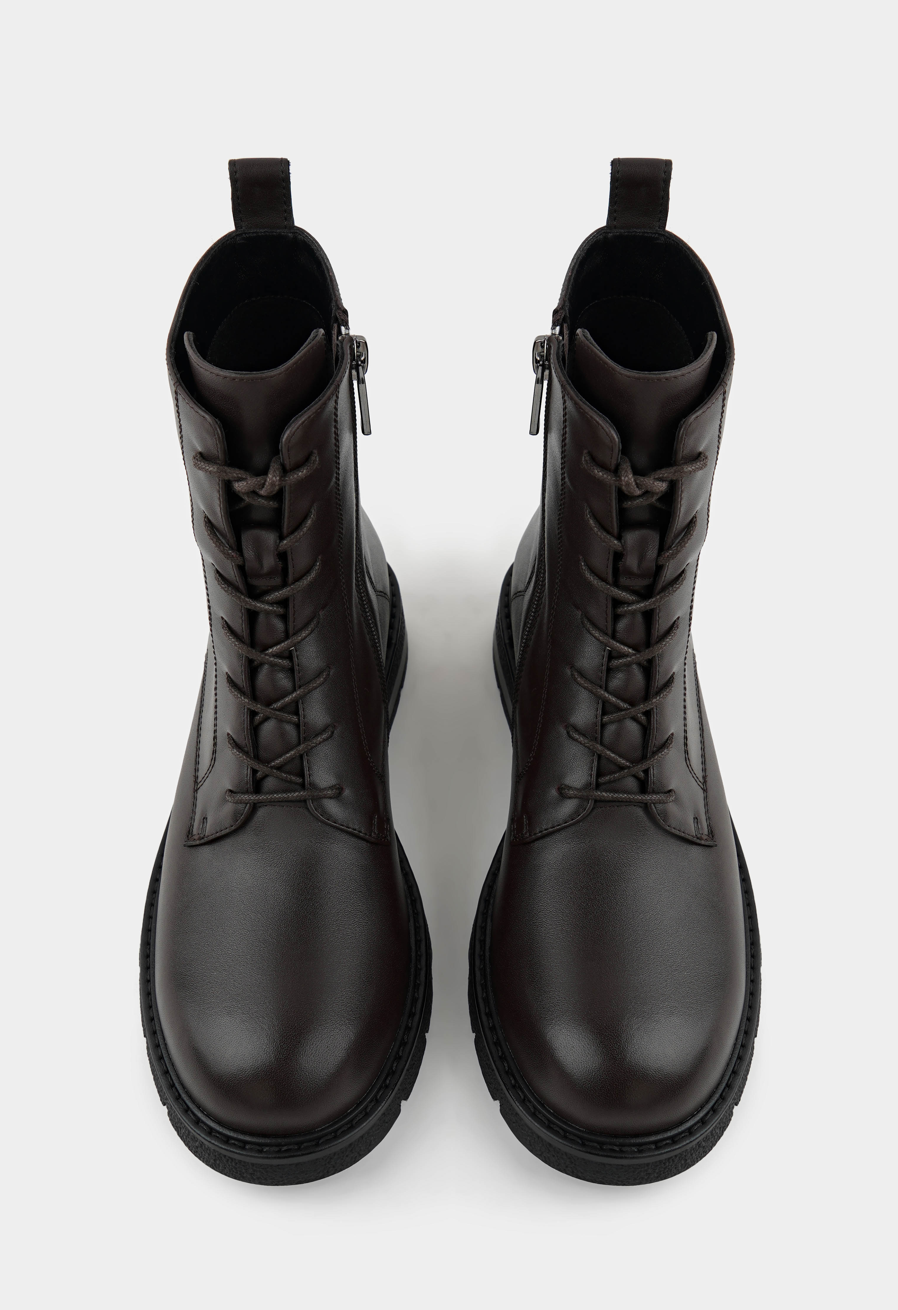 Ботинки из натуральной кожи насыщенного коричневого цвета созданы для тех, кто ценит стиль и комфорт каждый день. Внутри мягкая байка дарит тепло и уют, а гибкая подошва с широким каблуком обеспечивает удобство даже при длительной носке. Округлый мысок гарантирует комфортную посадку, в то время как сочетание молнии и шнуровки делает модель практичной и легко адаптируемой под любую ногу. Металлическая фурнитура добавляет современного акцента, в комплекте предусмотрена дополнительная стелька из натурального меха для комфорта в более холодное время. Эти ботинки отлично впишутся в повседневный гардероб, подчеркивая уверенный стиль и универсальность образа.