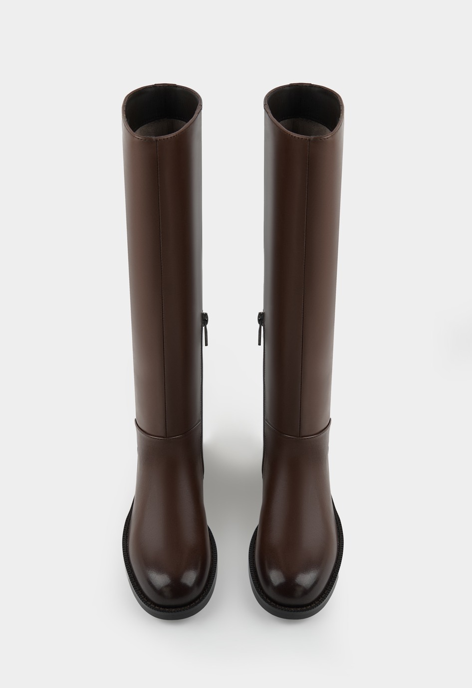 Элегантные коричневые сапоги из натуральной кожи с аккуратным округлым мыском и стильной фурнитурой металлик создают универсальный образ для города. Удобный широкий каблук и гибкая подошва обеспечивают комфорт при длительной ходьбе, а практичная боковая молния и мягкая байковая подкладка делают каждую носку по-настоящему приятной. Эта модель станет идеальным выбором для разных ситуаций.