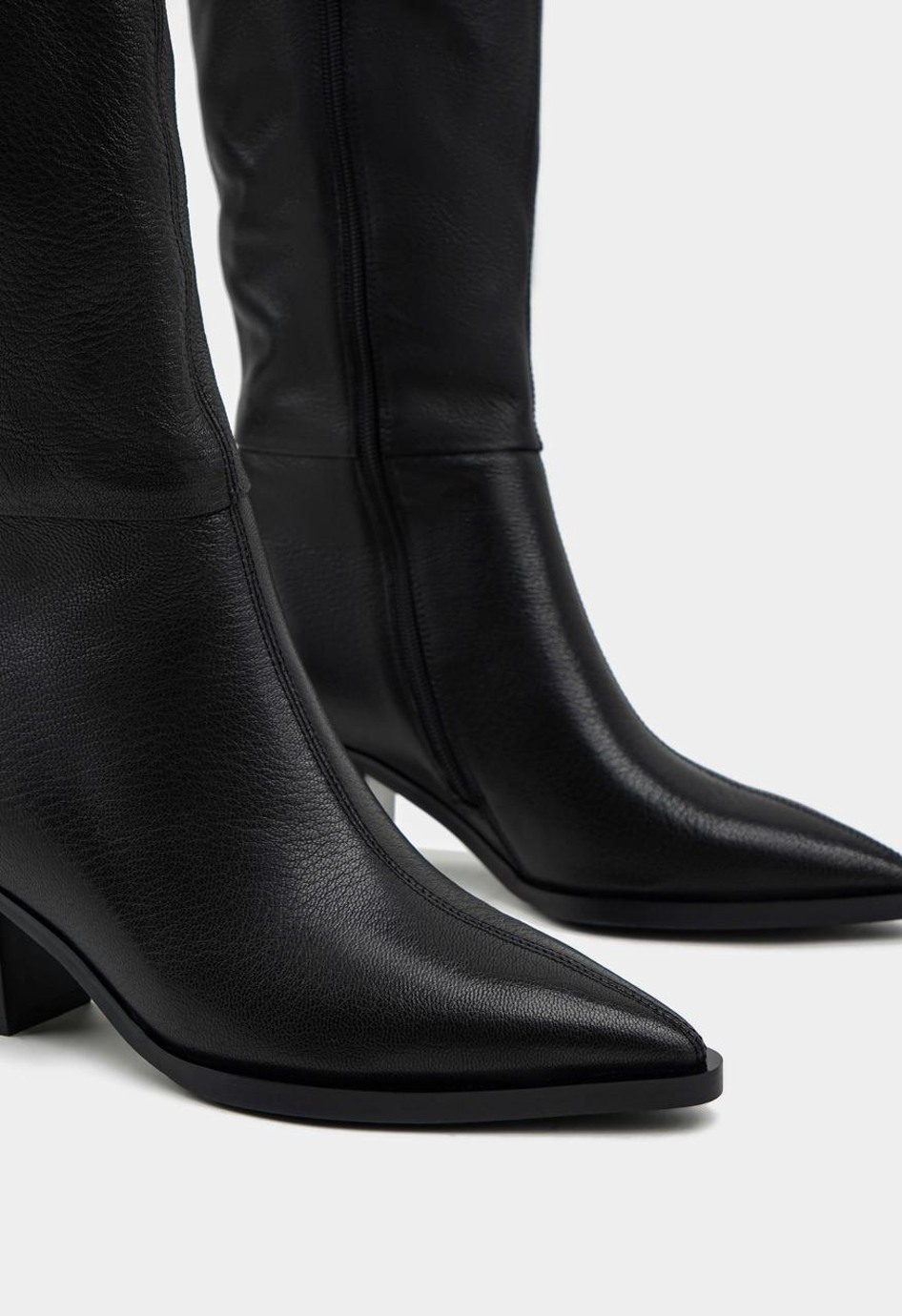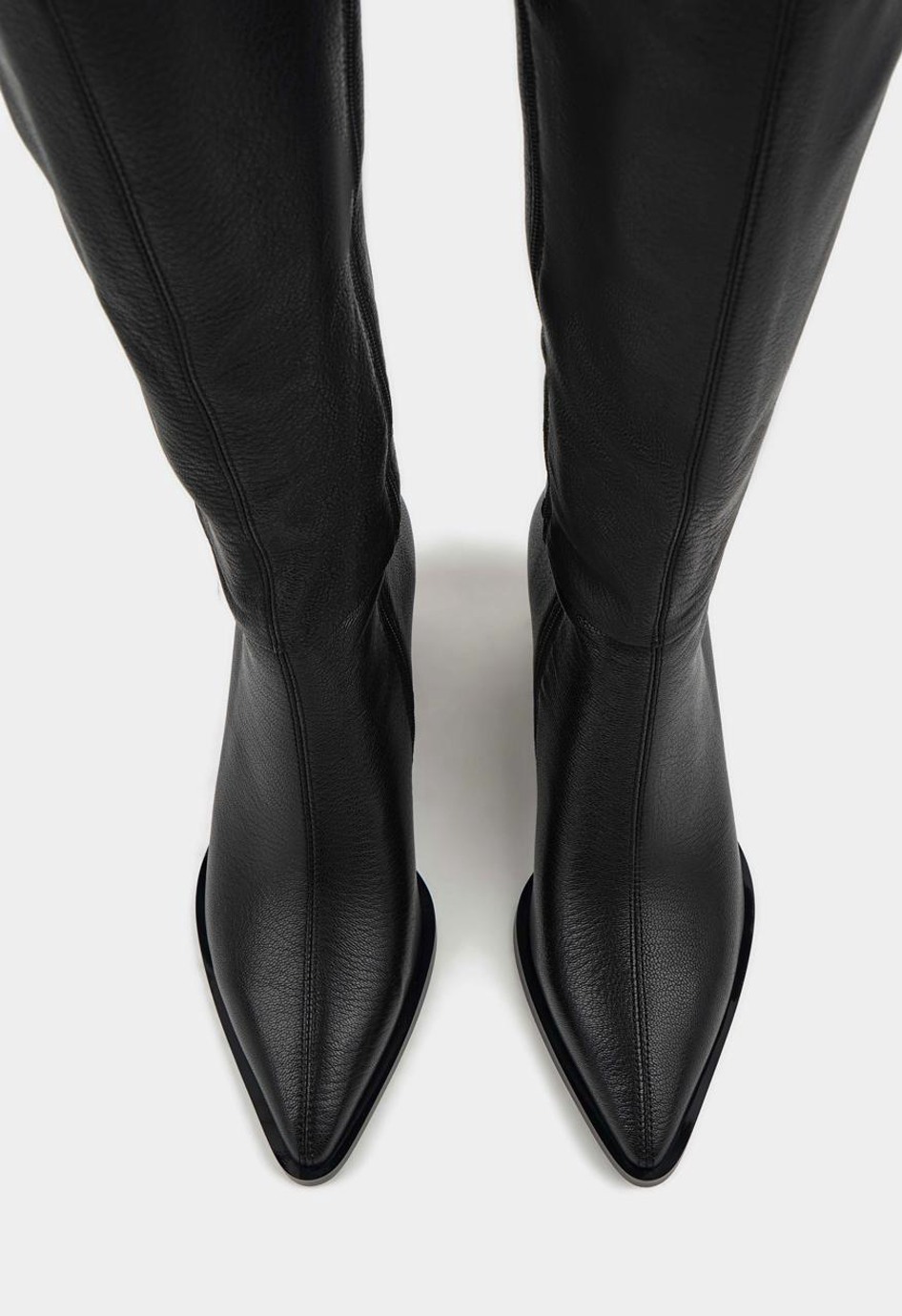 Черные сапоги из натуральной кожи с подкладкой из байки – это идеальное сочетание современного стиля и практичности. Заостренный мысок придает образу элегантность, а скошенный каблук делает силуэт изящным и женственным. Жесткая подошва обеспечивает надежную устойчивость и комфорт при ходьбе, делая обувь удобной для долгих прогулок и активного дня. Эта модель легко вписывается в повседневные образы и станет стильным акцентом как в деловом, так и в вечернем луке, подчеркивая уверенность и вкус своей обладательницы.