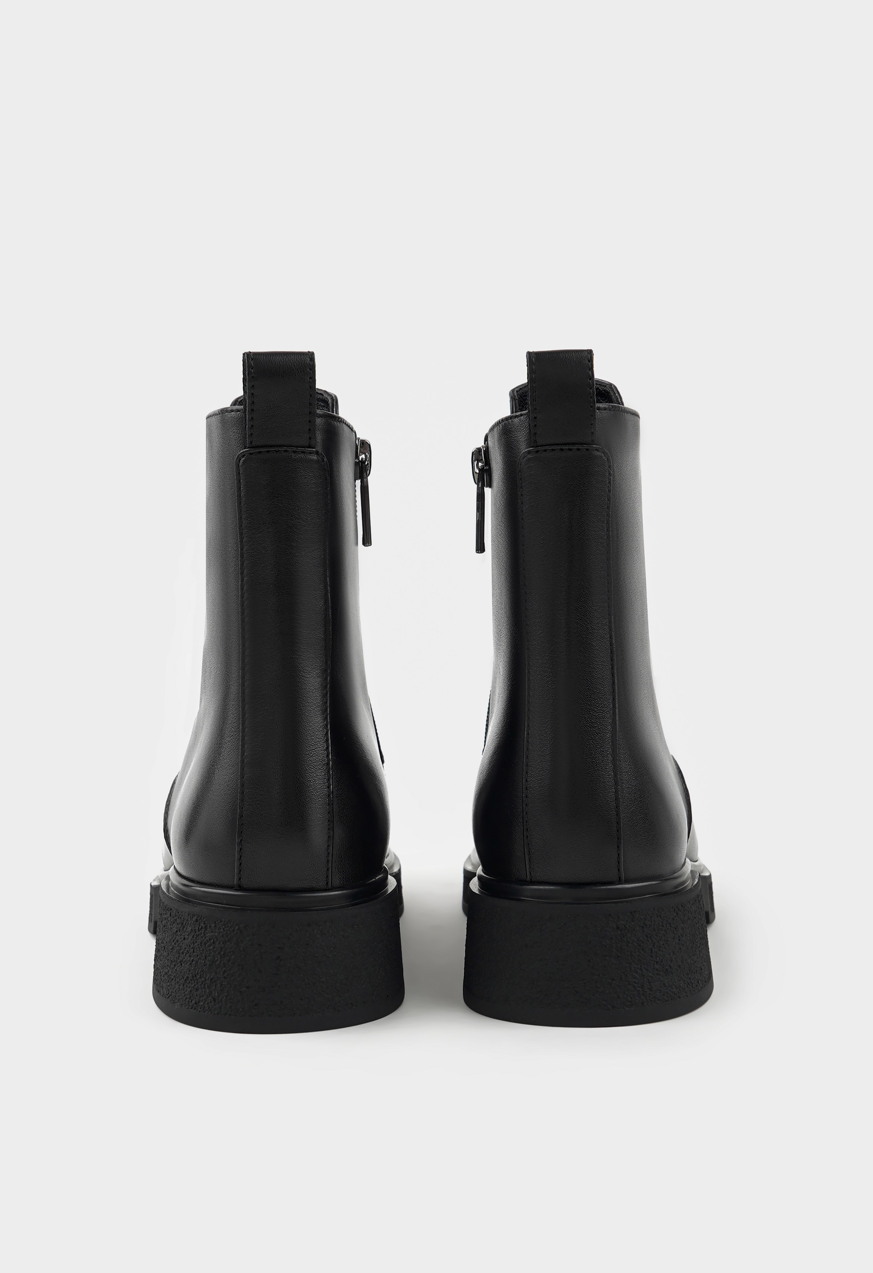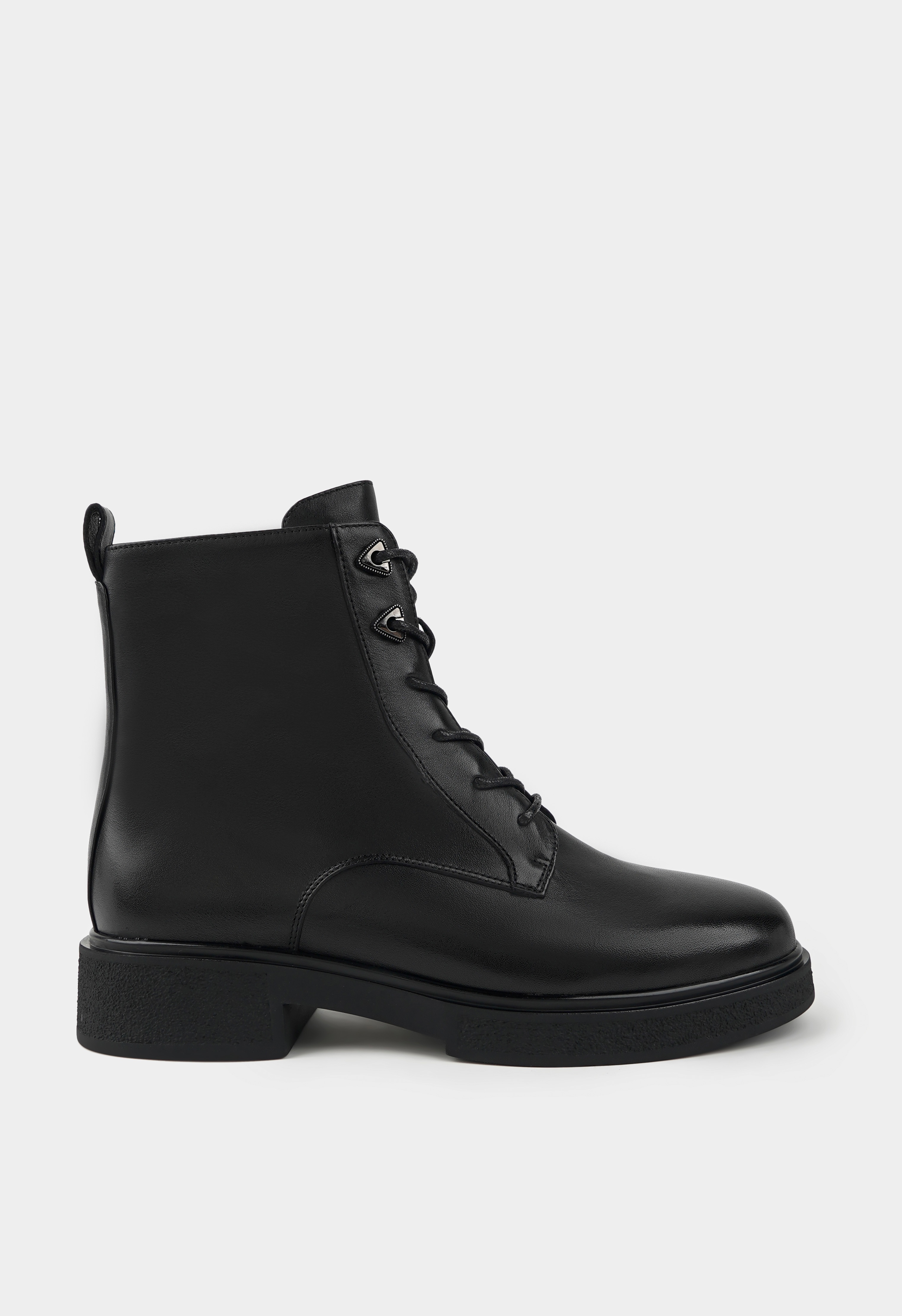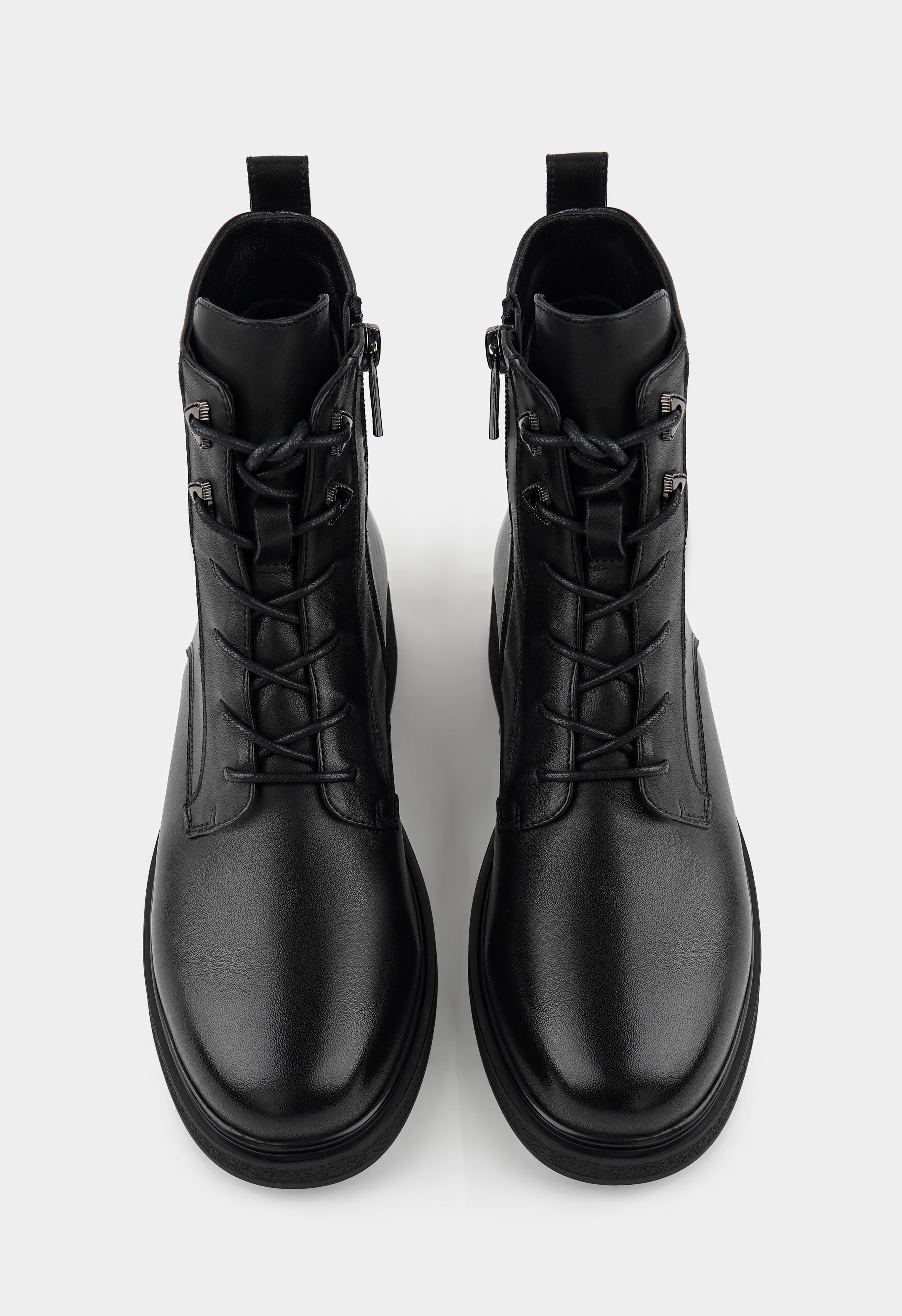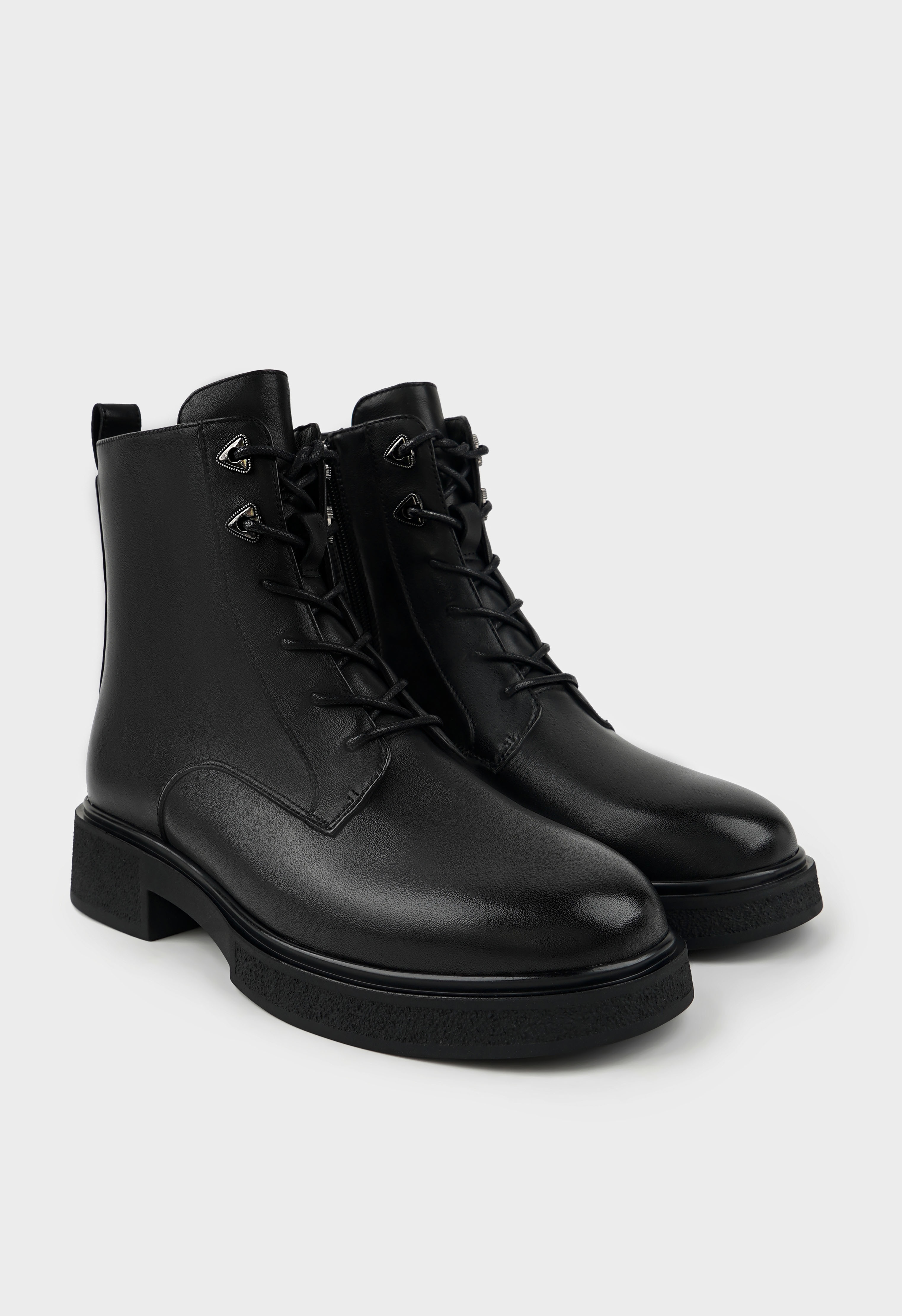 Черные ботинки из натуральной кожи – стильное решение для повседневных образов, где комфорт и актуальность идут рука об руку. Внутри мягкая байка надежно сохраняет тепло, а гибкая подошва и широкий каблук делают шаги легкими и уверенными. Округлый мысок добавляет удобства, в то время как сочетание молнии и шнуровки обеспечивает практичность и безупречную посадку. Металлическая фурнитура придает модели современный характер, дополнительная стелька из натурального меха в комплекте делает их еще более комфортными. Эти ботинки станут универсальной парой на каждый день, подчеркивая уверенный стиль и гармонично дополняя любые образы.