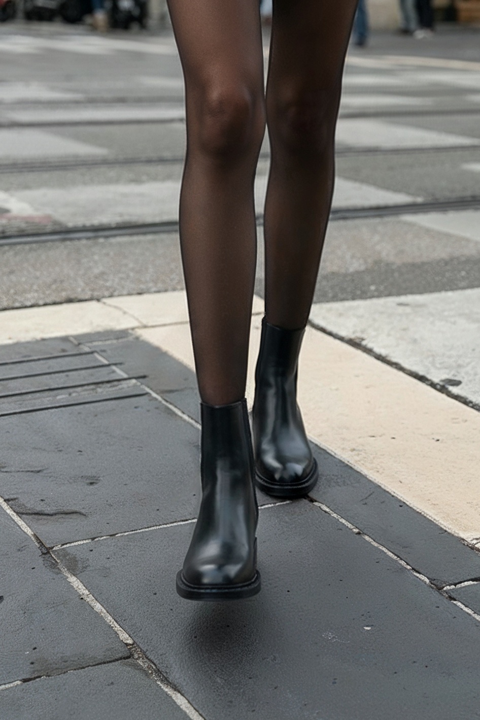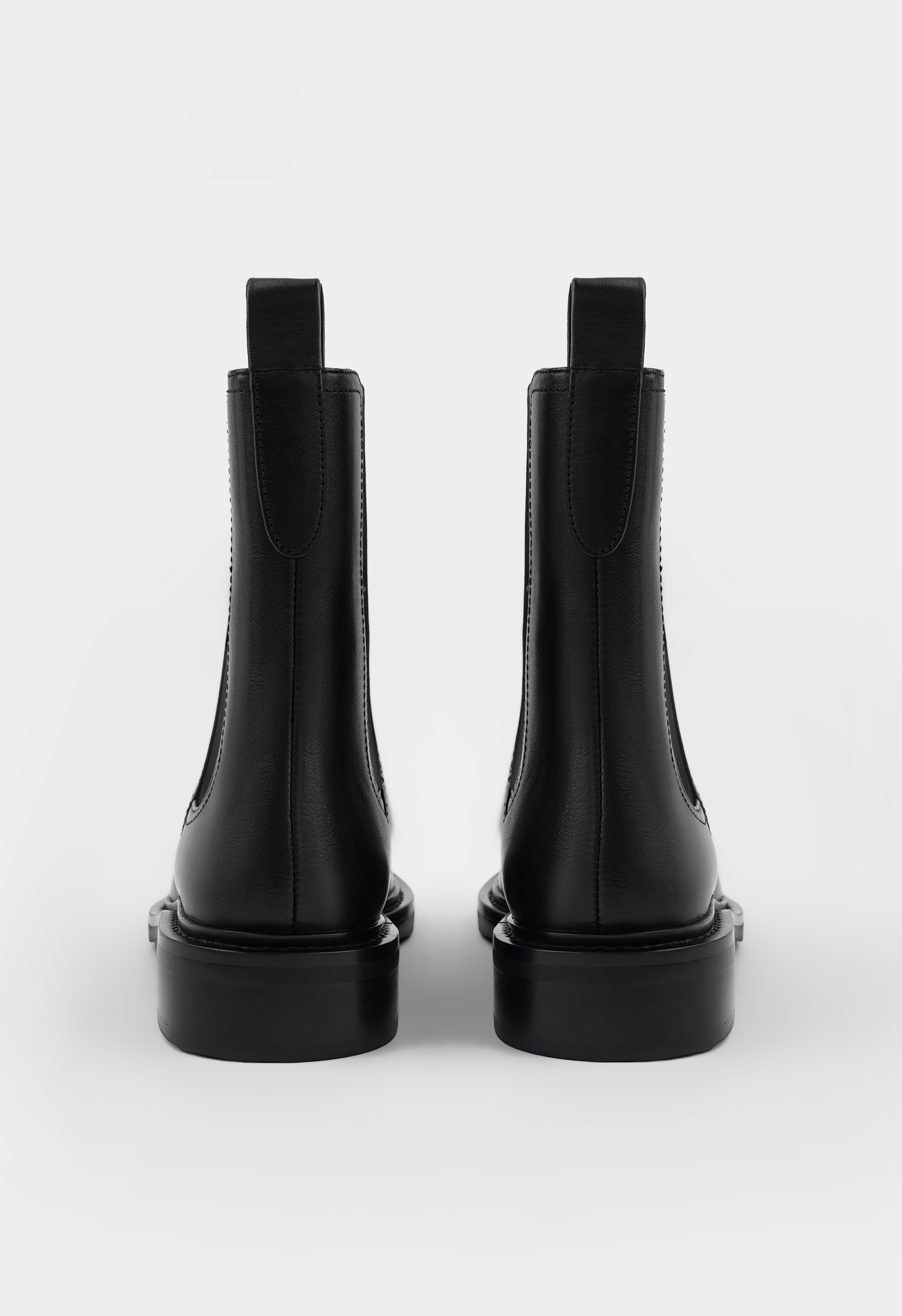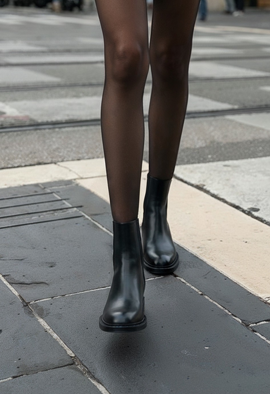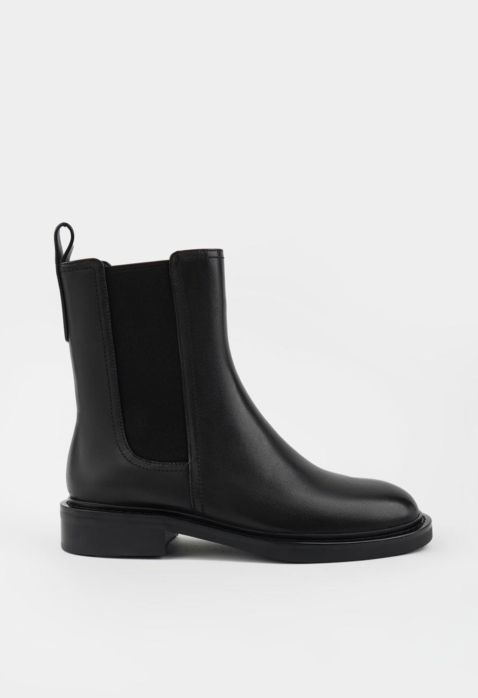 Ботинки черного цвета из качественной натуральной кожи с аккуратным округлым мыском и устойчивым широким каблуком создают образ надежности и стиля, они сочетают в себе классическую элегантность и практичную функциональность. Жесткая подошва обеспечивает уверенную поддержку при ходьбе, а удобные втачные резинки и мягкая байковая подкладка дарят комфорт в течение всего дня. Эта модель станет универсальным дополнением повседневного гардероба, добавив нотку лаконичности в трендовые образы.