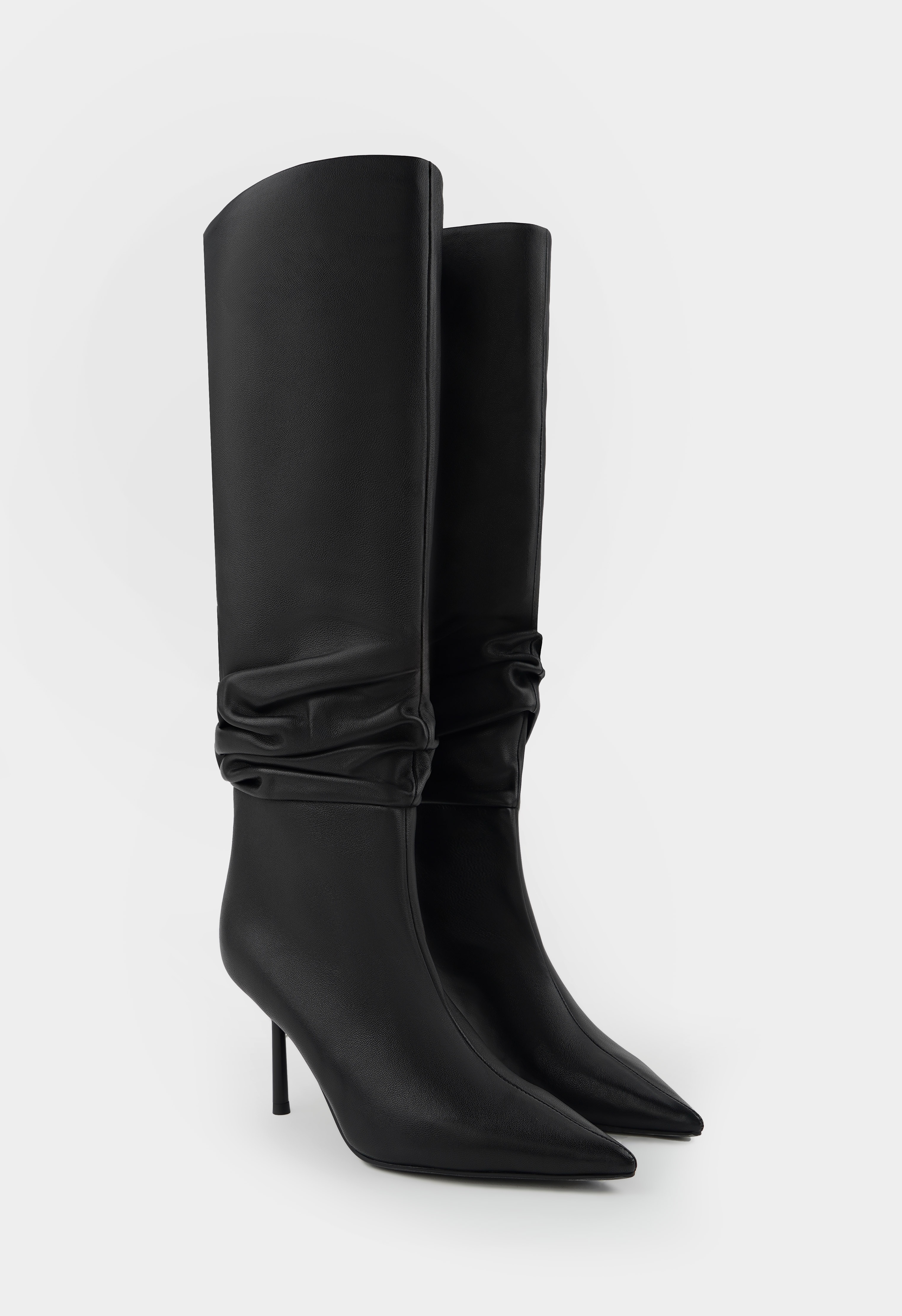 Актуальные черные сапоги из натуральной кожи с элегантным заостренным мысом и стройной шпилькой создают образ безупречного стиля. Идеально сбалансированная колодка и гибкая подошва обеспечивают комфорт, а мягкая байковая подкладка нежно заботится о ваших ногах. Эти сапоги станут гармоничным дополнением вечернего наряда, делового костюма или коктейльного платья, подчеркивая утонченный вкус своей обладательницы в любой ситуации.