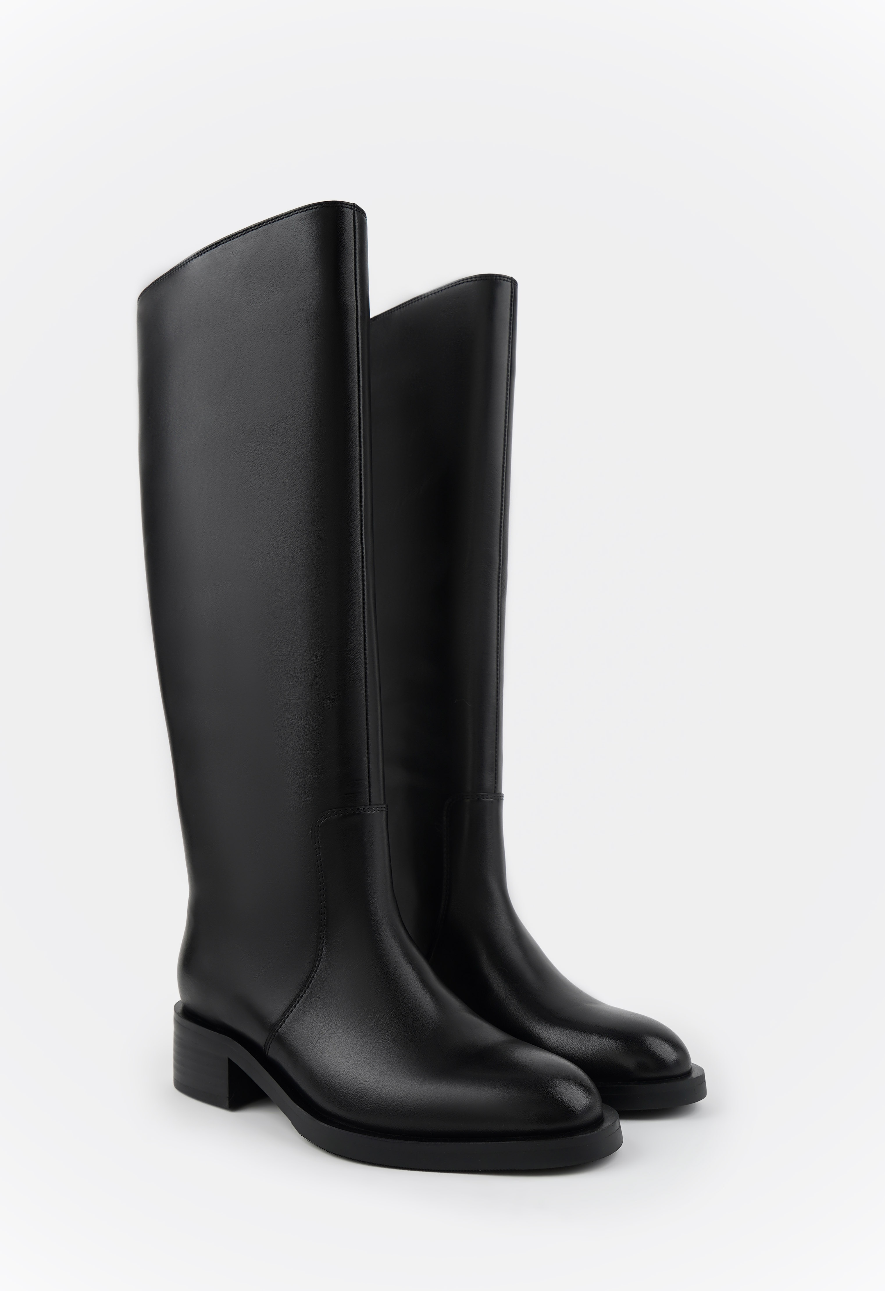 Сапоги черного цвета – практичный и элегантный выбор для прохладного сезона, сочетающий в себе комфорт и современный стиль. Верх из натуральной кожи устойчив к износу и сохраняет аккуратный внешний вид, в то время как внутренняя отделка из байки создает приятное ощущение тепла и мягкости. Жесткая подошва обеспечивает надежную устойчивость на любой поверхности, округлый мысок способствует естественному положению стопы, а широкий каблук добавляет устойчивости и делает походку уверенной. Такая модель станет удачным завершением как повседневного, так и более строгого образа.