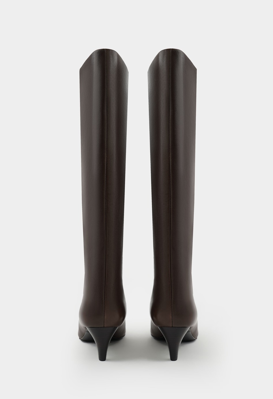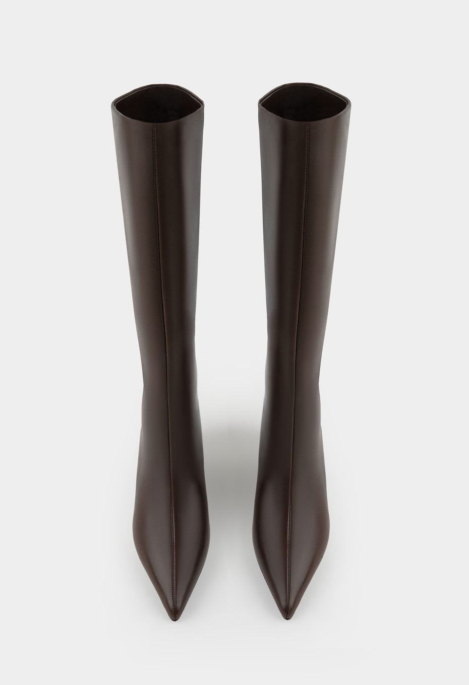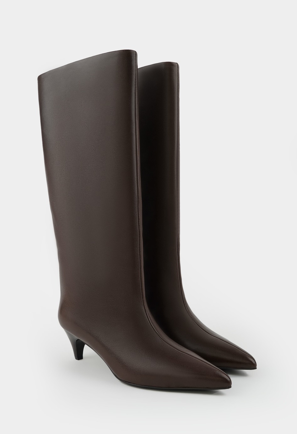 Сапоги коричневого цвета из натуральной кожи – воплощение элегантности и комфорта в одной паре. Мягкая, податливая кожа красиво подчеркивает форму ноги, а подкладка из байки дарит ощущение тепла и уюта в любую погоду. Благодаря гибкой подошве шаг становится легким и естественным, заостренный мысок придает модели изысканность, в то время как каблук kitten heel добавляет утонченный акцент и обеспечивает устойчивость. Эти сапоги легко дополнят как повседневные, так и более нарядные образы, подчеркивая вашу уверенность и безупречный вкус.