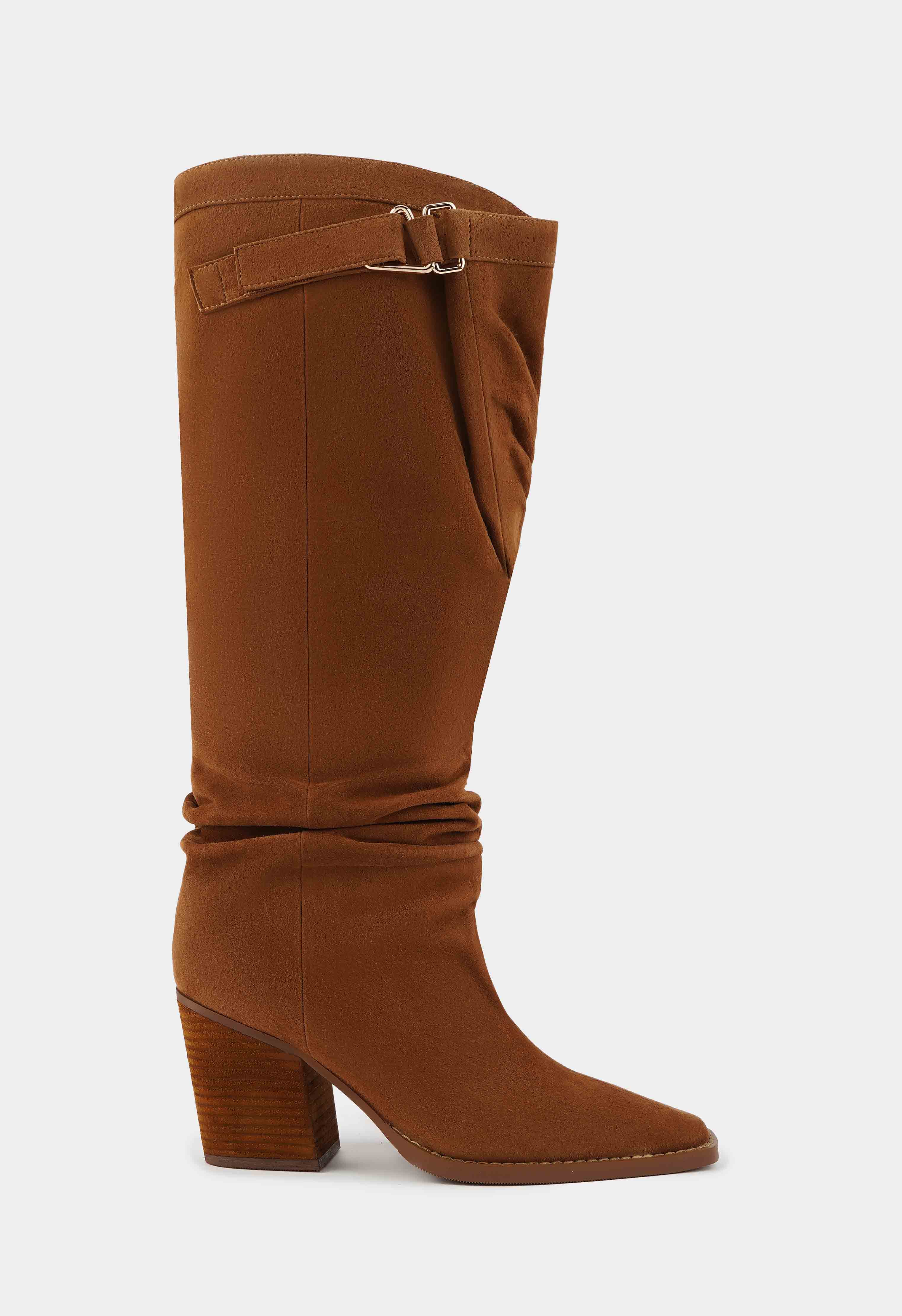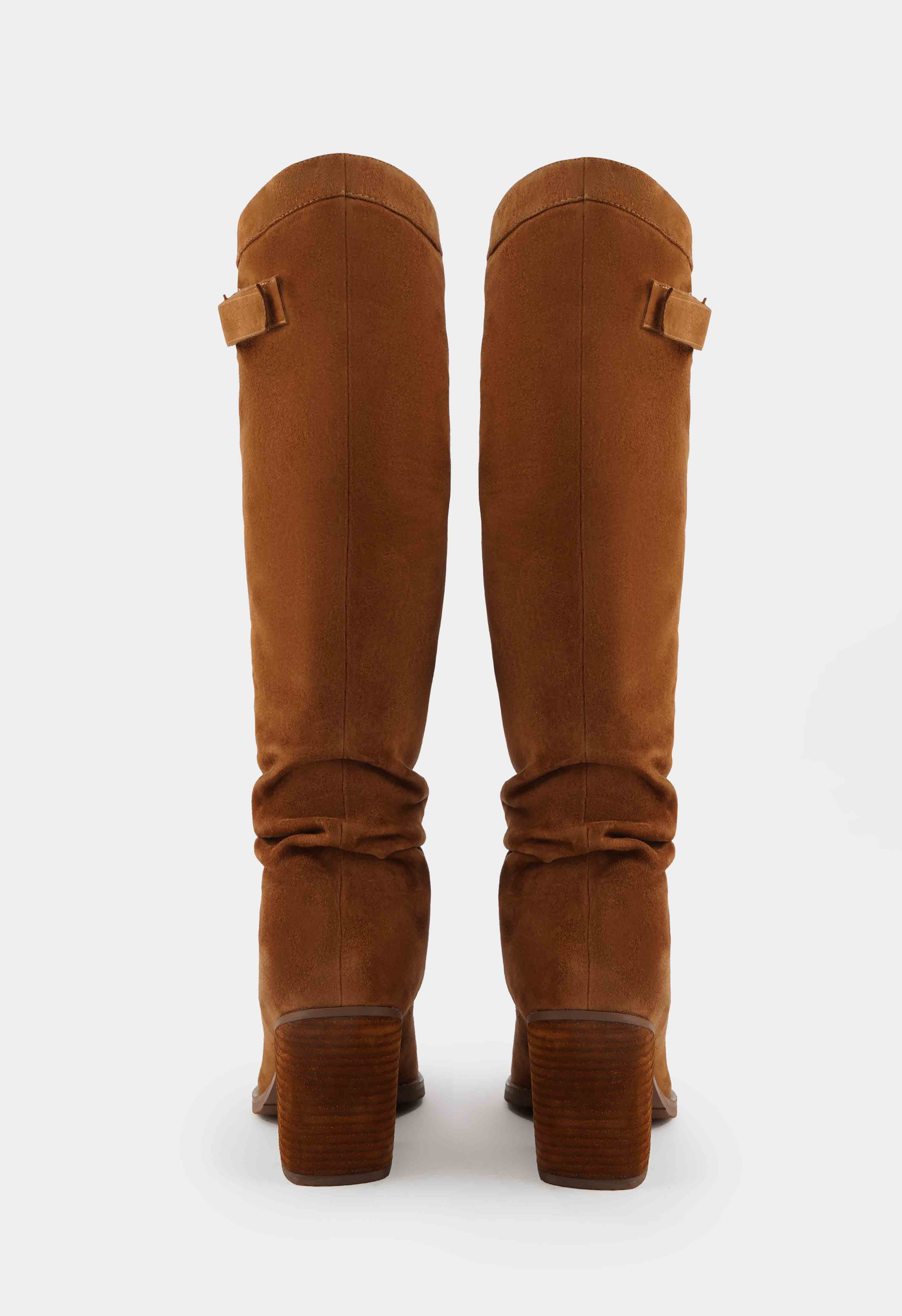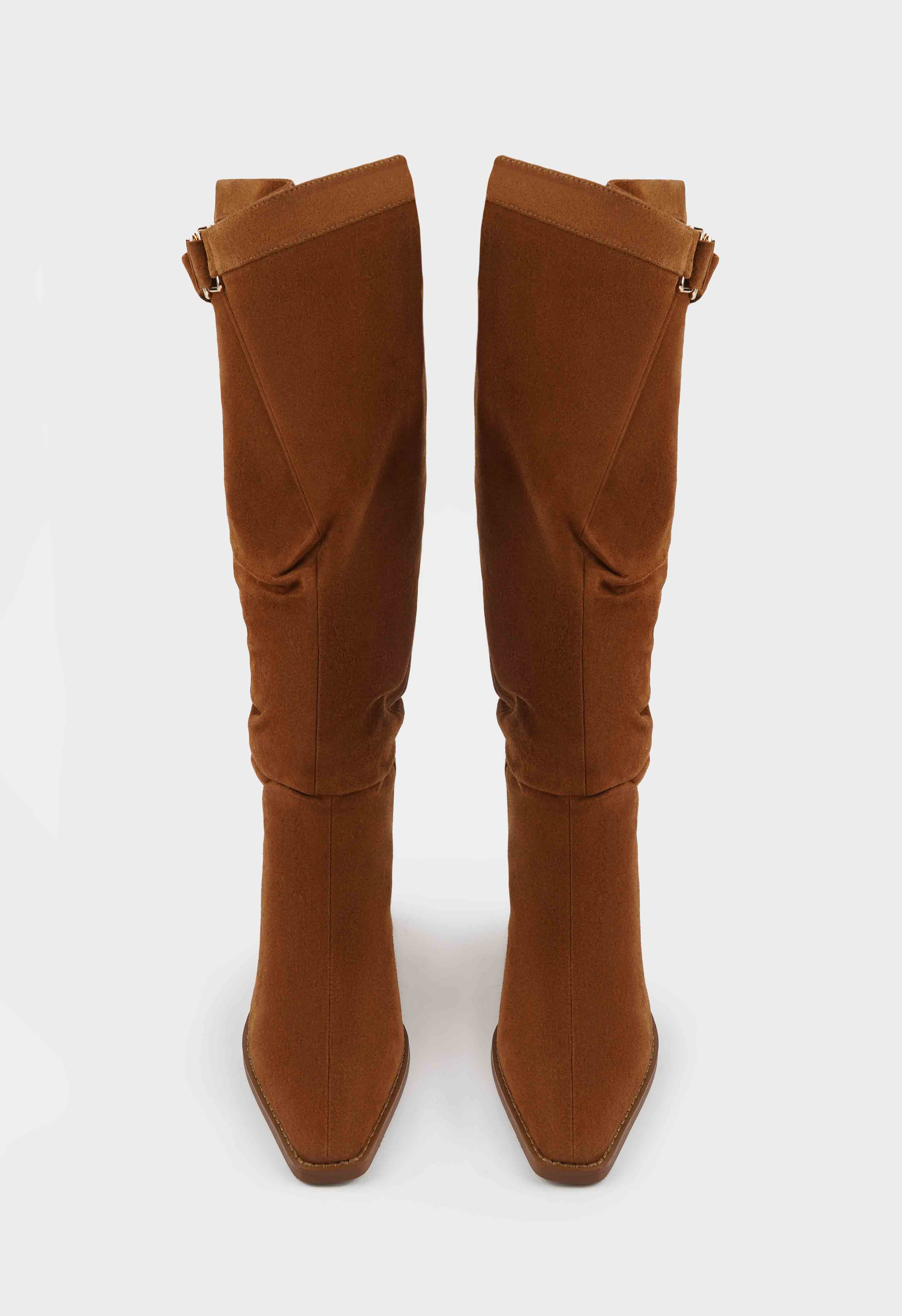 Роскошные рыжие сапоги из нежнейшей натуральной замши с элегантным заостренным мысом и утонченным скошенным каблуком создают образ восхитительной женственности – в них идеально сочетаются дерзкая элегантность и непринужденный комфорт. Гибкая подошва обеспечивает удивительную легкость при ходьбе, а мягкая байковая подкладка дарит уютное тепло, делая эту пару идеальной для прохладного сезона. Изысканная золотая фурнитура добавляет акцент роскоши, подчеркивая благородный оттенок замши. Универсальная модель станет изюминкой вашего гардероба, безупречно дополняя как повседневные образы с джинсами и пальто, так и вечерние сочетания с платьями и юбками.