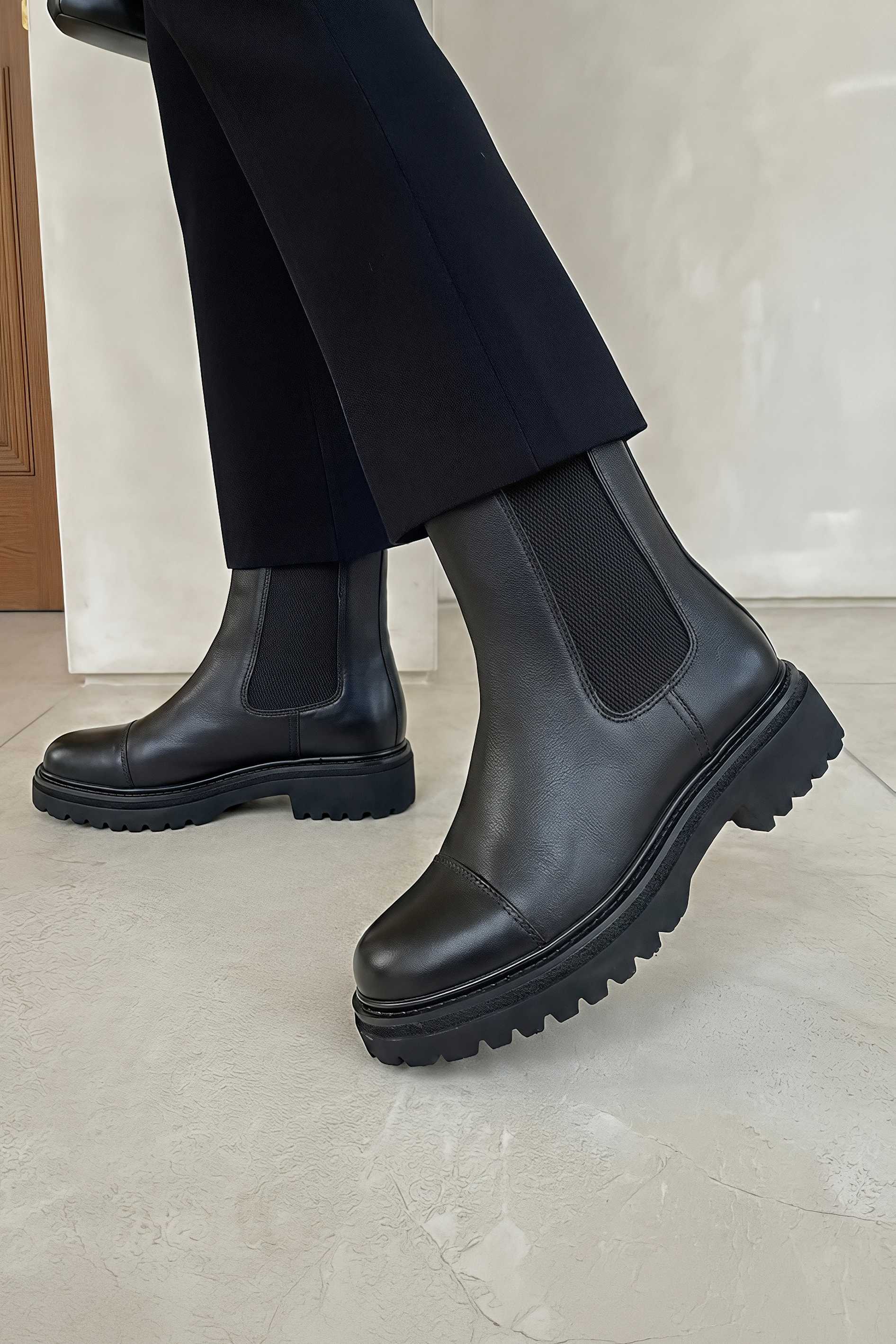 Стильные ботильоны из натуральной кожи в универсальном черном цвете – это практичная и стильная пара для холодного сезона. Внутри мягкая байка, а в комплекте идет дополнительная меховая стелька, которая дарит еще больше тепла и уюта. Жесткая подошва и широкий каблук обеспечивают устойчивость и комфорт, а округлый мысок и втачная резинка делают посадку максимально удобной. Эта модель легко впишется в повседневный гардероб, подойдет и к джинсам, и к платьям, помогая всегда выглядеть стильно и чувствовать себя уверенно в любой ситуации.