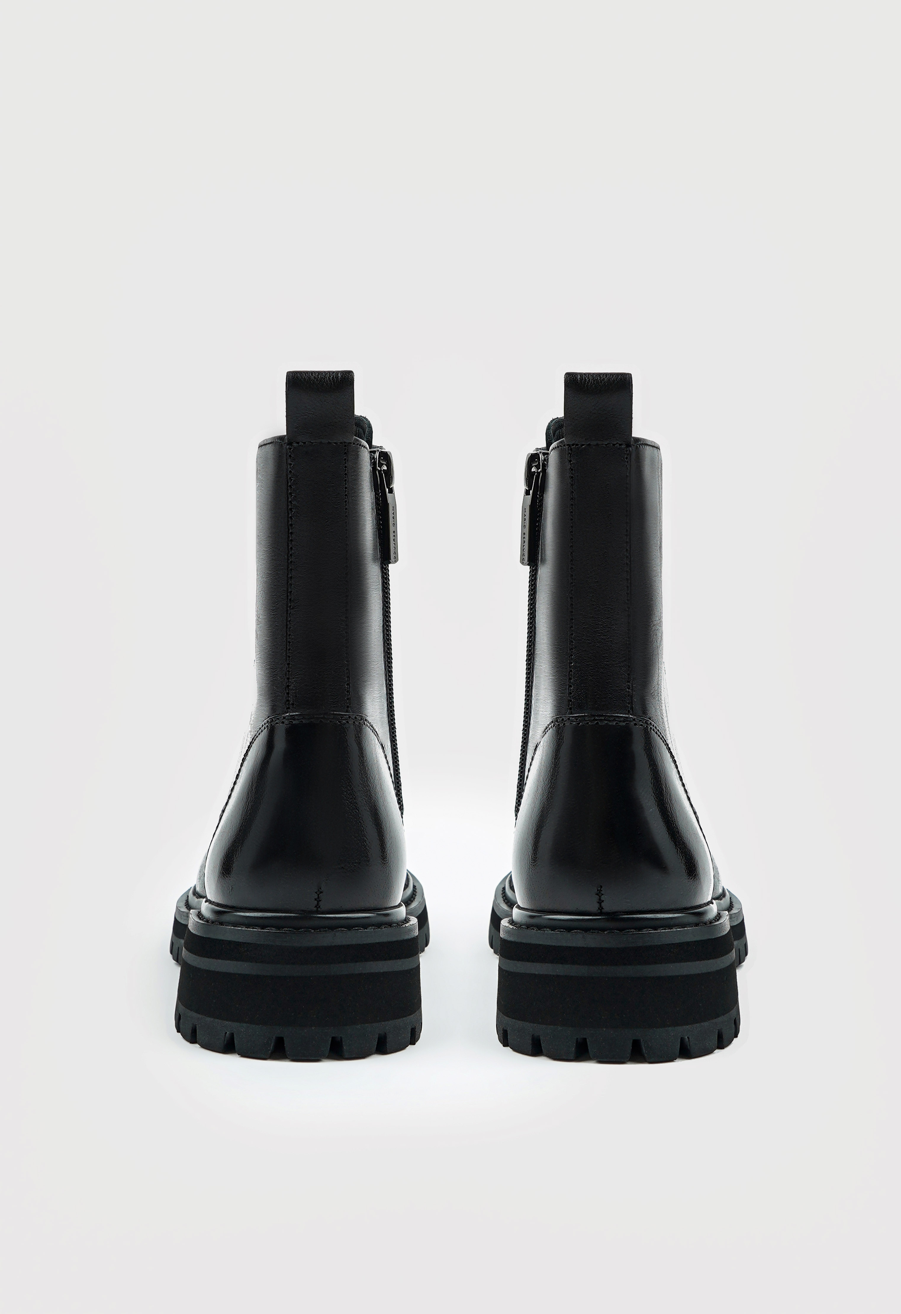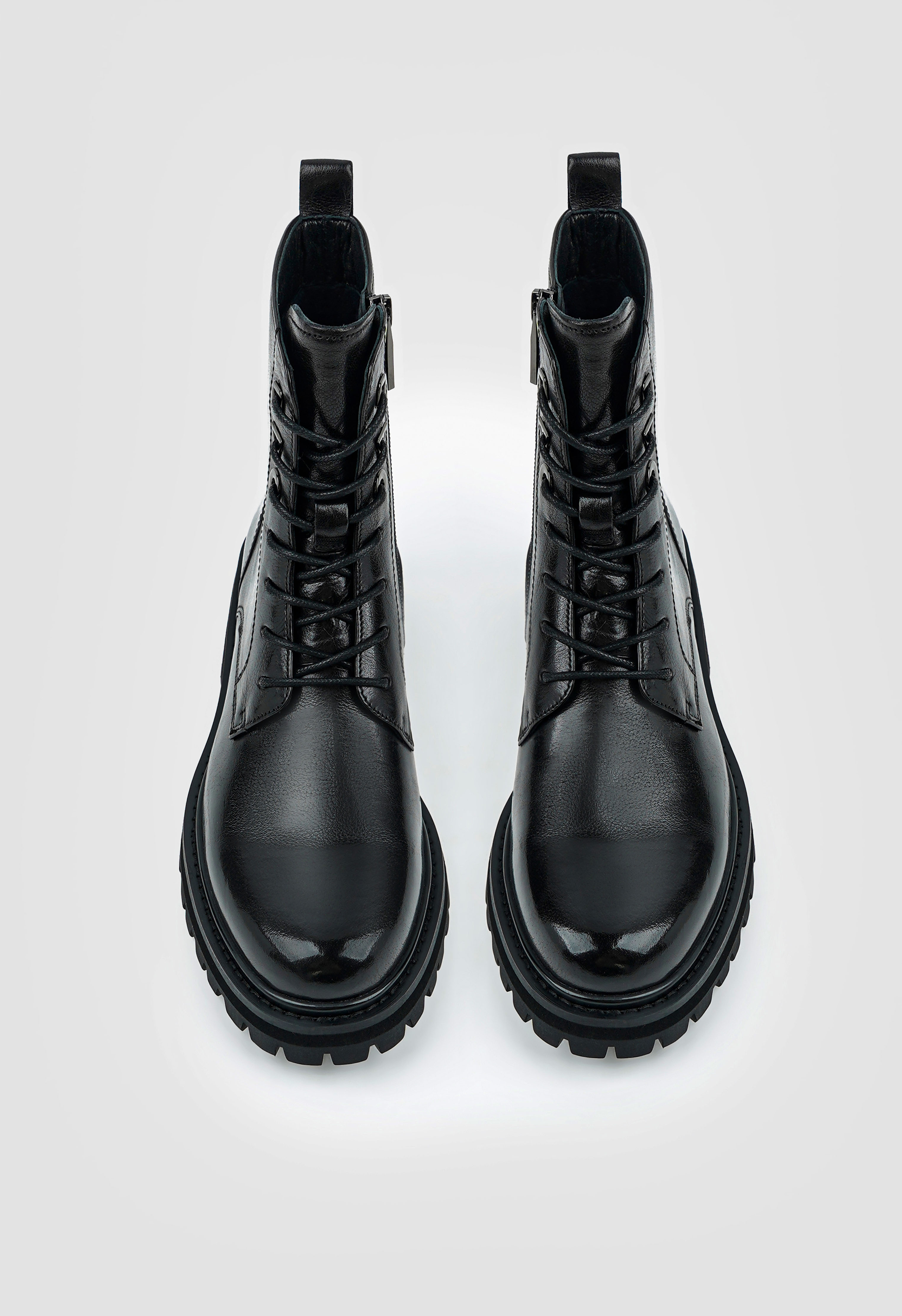Стильные ботинки из натуральной кожи в классическом черном цвете – надежный выбор для тех, кто ценит комфорт и современный дизайн. Внутри мягкая байка сохраняет тепло, а дополнительная меховая стелька в комплекте подарит особый уют в холодные дни. Жесткая подошва и широкий каблук обеспечивают устойчивость и уверенную походку, в то время как округлый мысок добавляет удобства при носке. Металлическая фурнитура, молния и шнуровка создают гармоничный акцент и подчеркивают актуальность модели. Эти ботинки легко впишутся в повседневный гардероб и помогут выглядеть стильно в любой ситуации.