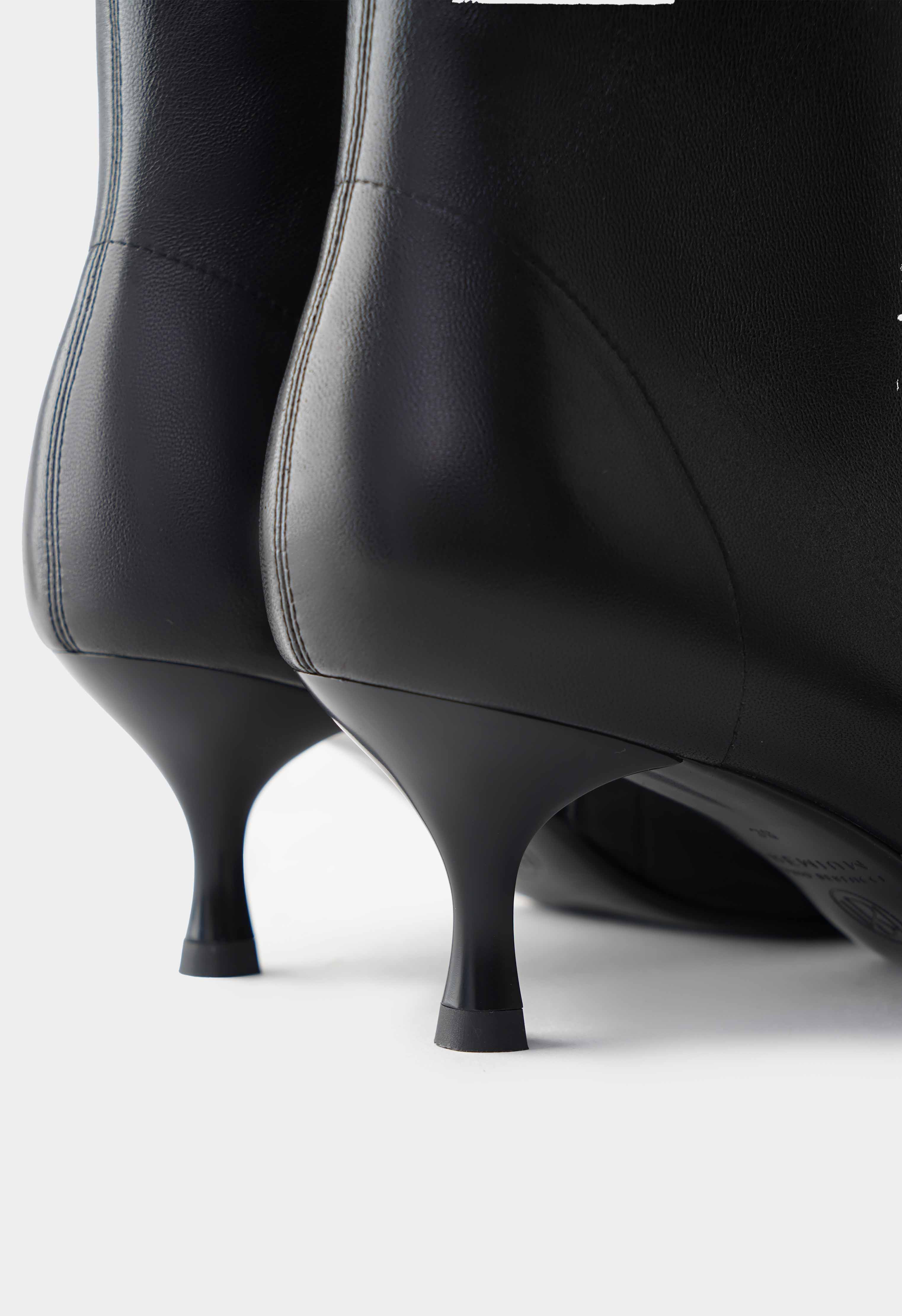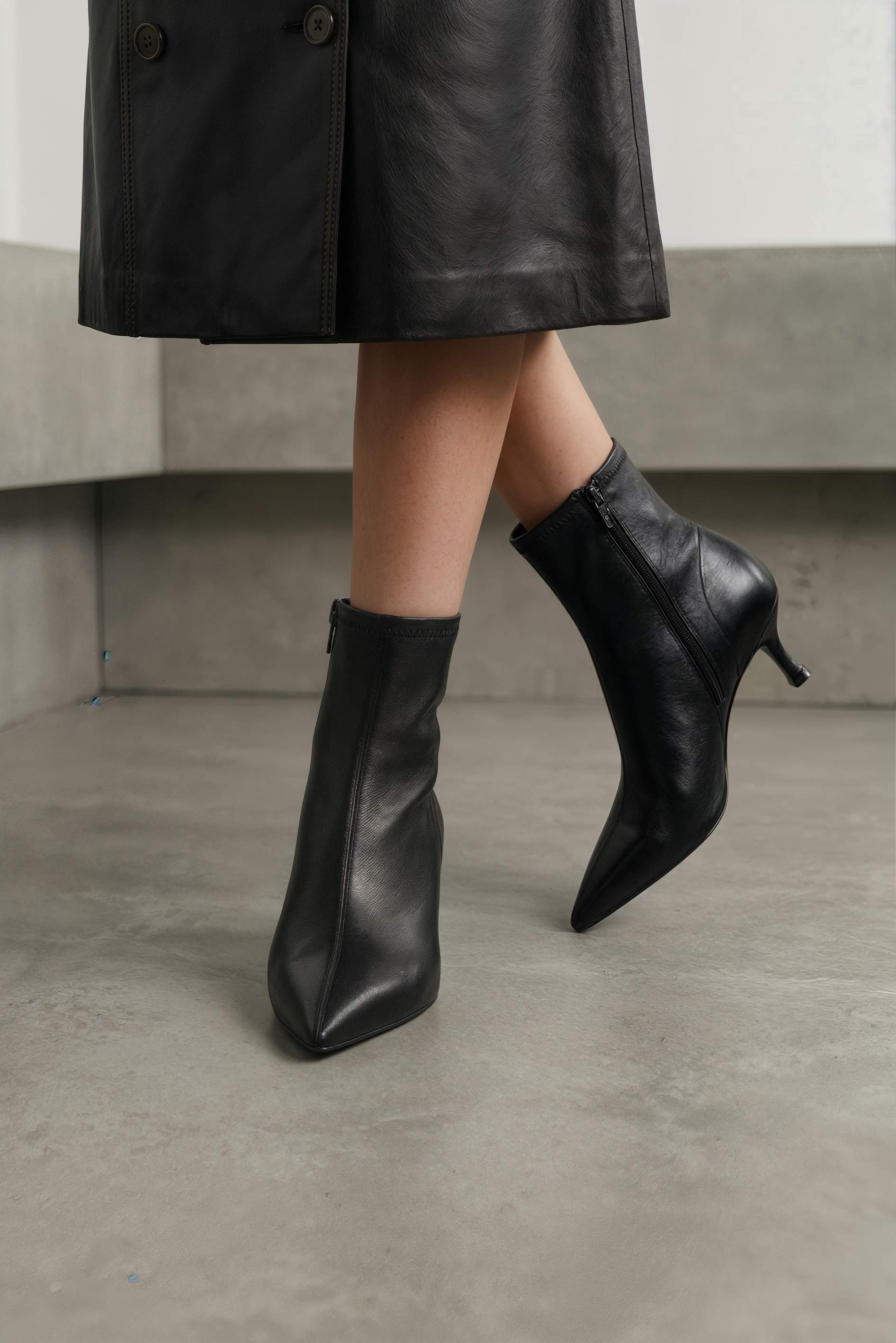 Черные ботильоны из натуральной кожи – удачная пара для демисезона, когда хочется выглядеть элегантно и чувствовать комфорт. Заостренный мысок и изящный каблук-рюмка делают силуэт более женственным и утонченным. Фурнитура в оттенке металлик добавляет аккуратный современный акцент, а молния обеспечивает удобное надевание и плотную посадку. Гибкая подошва поддерживает мягкий шаг и легкость в движении в течение всего дня.