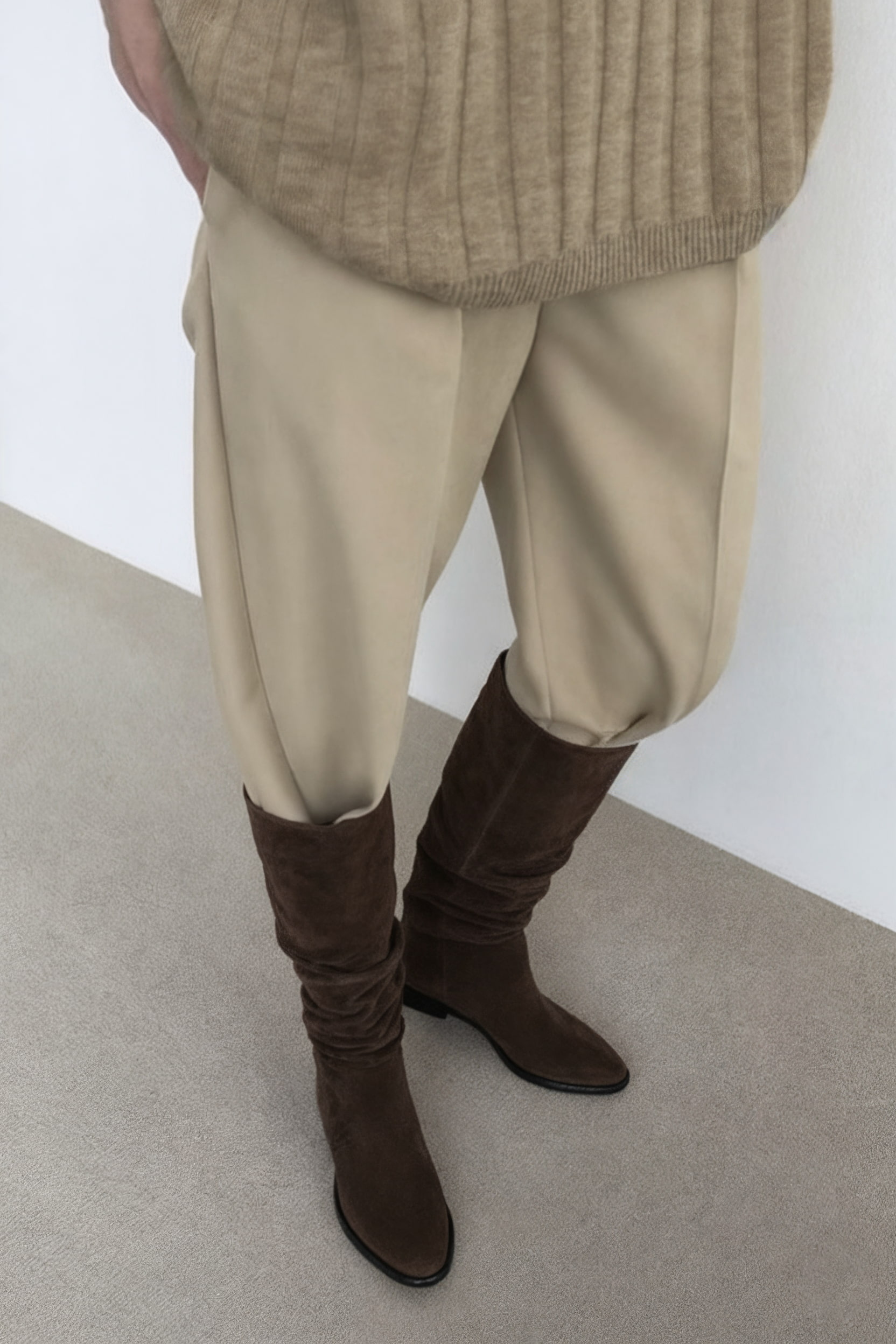 Замша очень достойная, так же как и подошва сапог.. Смотрятся великолепно, мягкие удобные!