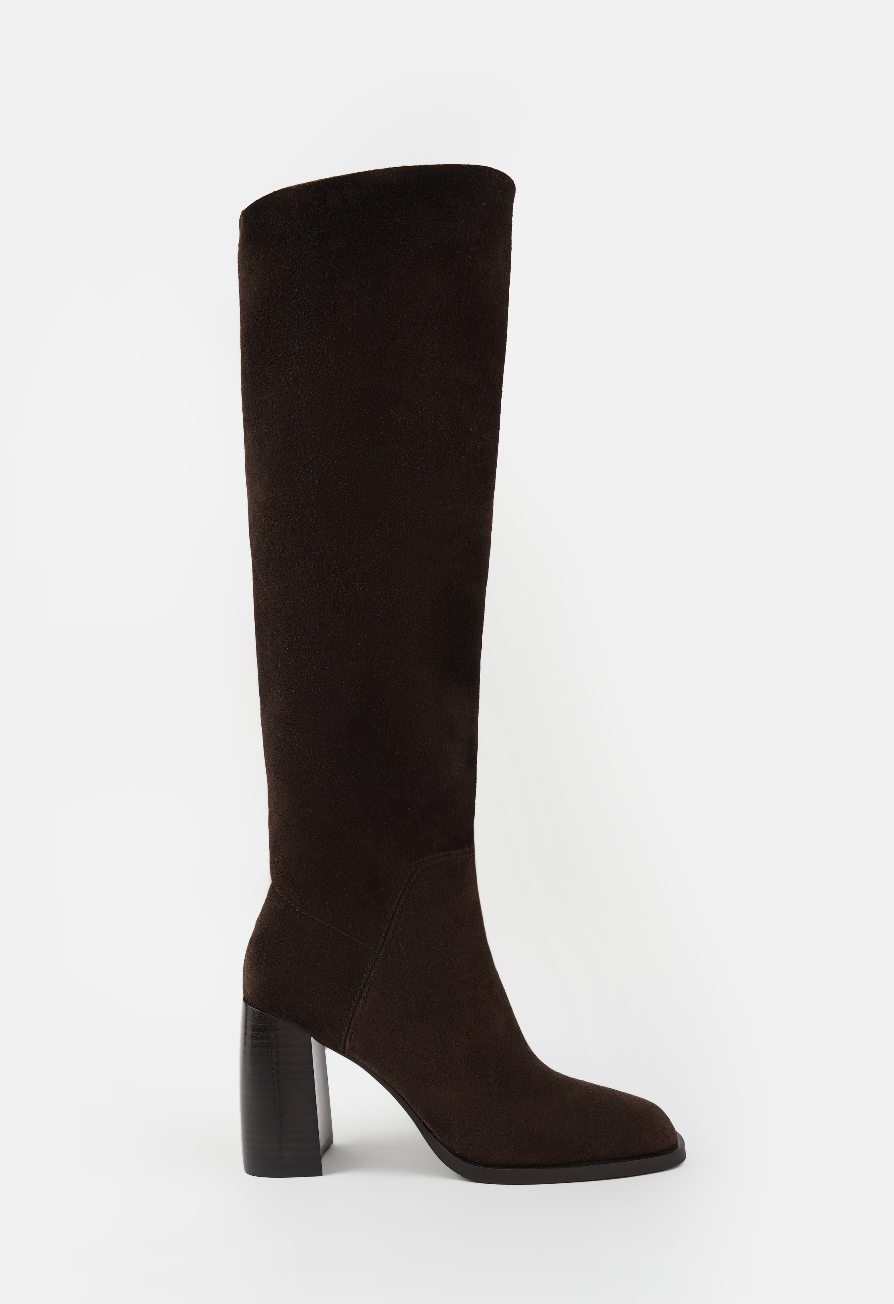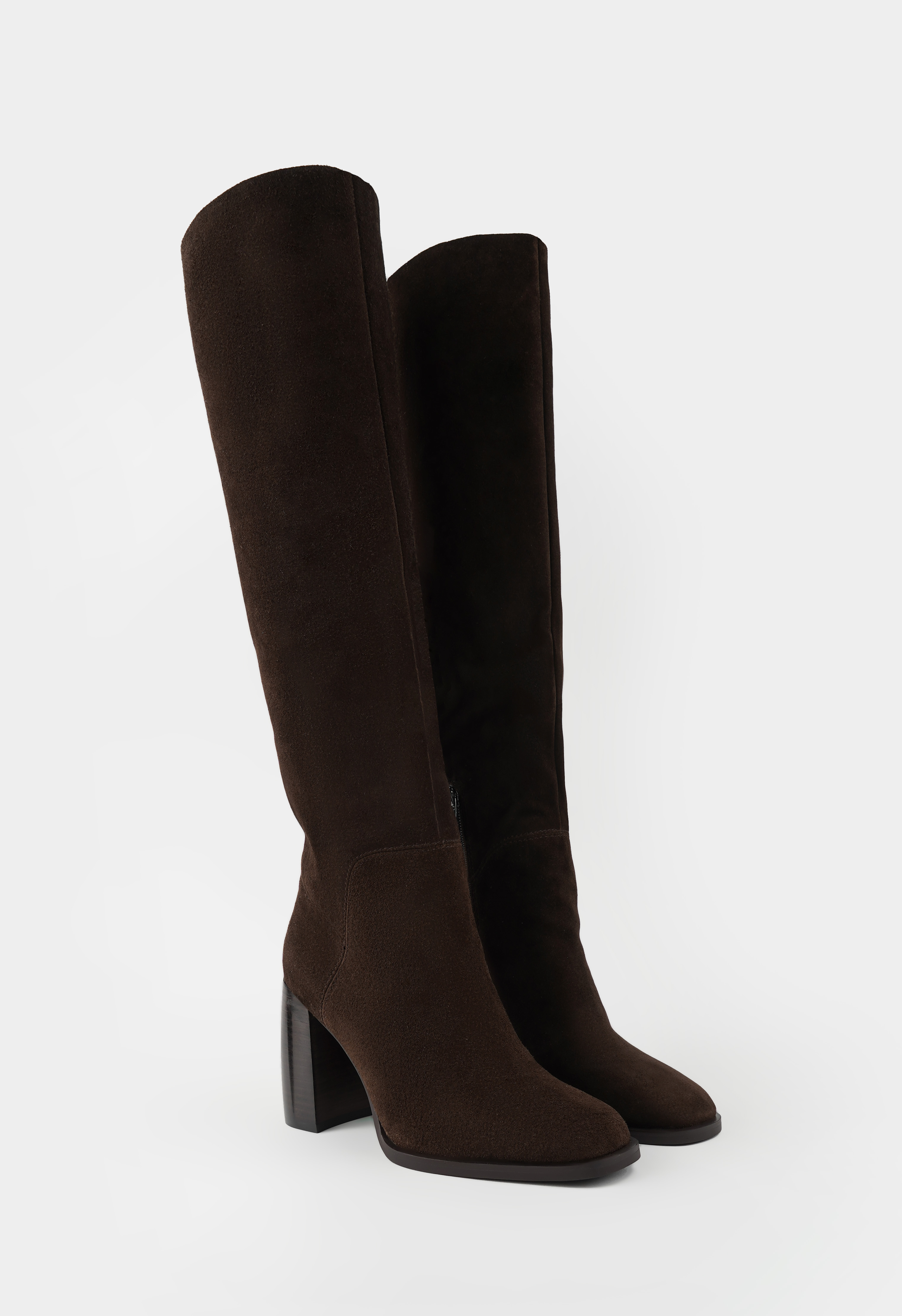 Сапоги из натуральной замши с подкладкой из байки и кожи станут стильным и удобным выбором на каждый день. Мягкая замша в насыщенном коричневом цвете смотрится элегантно и благородно, а гибкая подошва и квадратный мысок обеспечивают комфорт даже при длительной носке. Молния делает обувь практичной и удобной, металлическая фурнитура добавляет современный акцент, в то время как геометричный каблук придает образу изысканную оригинальность. Эти сапоги легко впишутся как в повседневные, так и в более строгие наряды, подчеркивая уверенность и чувство стиля.