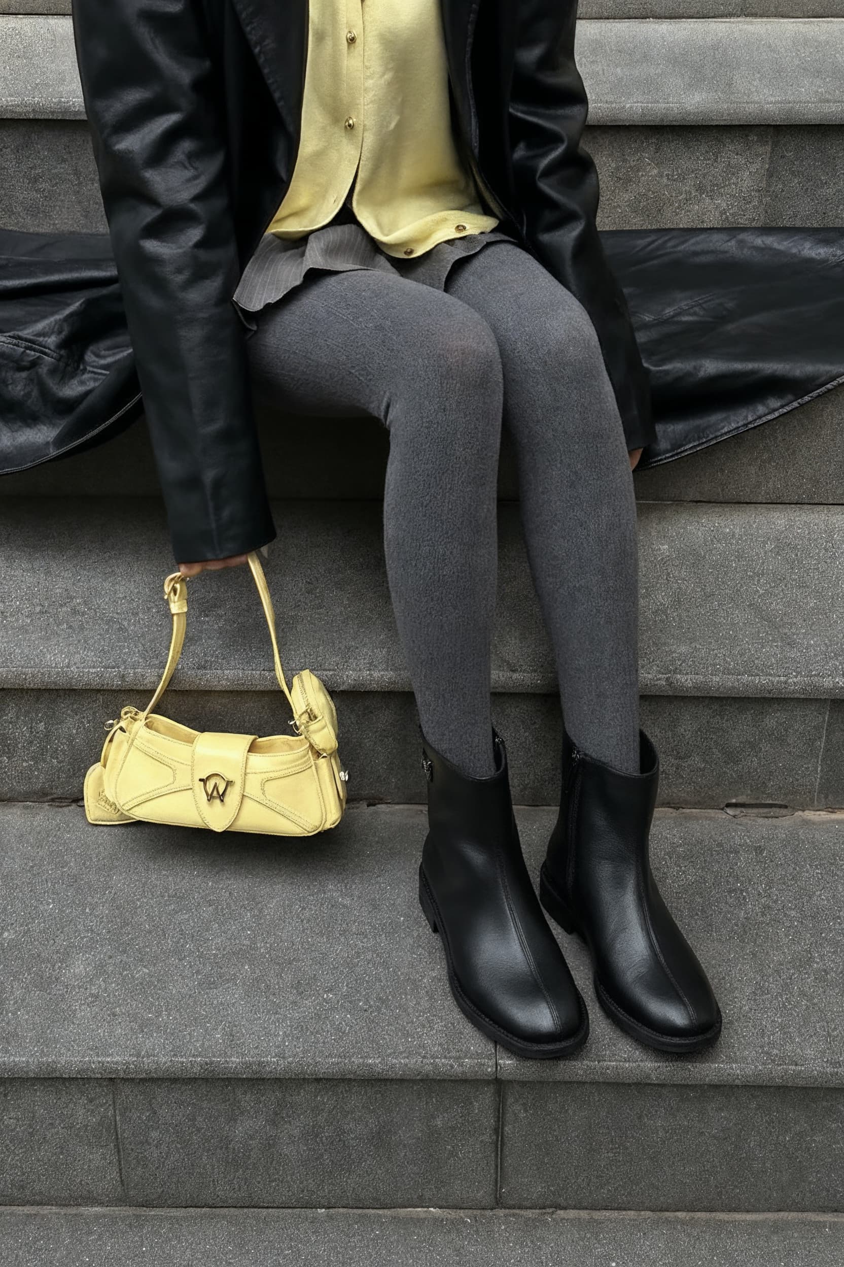 Элегантные полусапоги из черной натуральной кожи с мягкой байкой внутри подарят комфорт и тепло в прохладные дни. Гибкая подошва и широкий устойчивый каблук обеспечивают удобство при ходьбе, а округлый мысок создаёт гармоничный силуэт и добавляет женственности образу. Лаконичная металлическая фурнитура и удобная молния делают модель не только стильной, но и практичной.