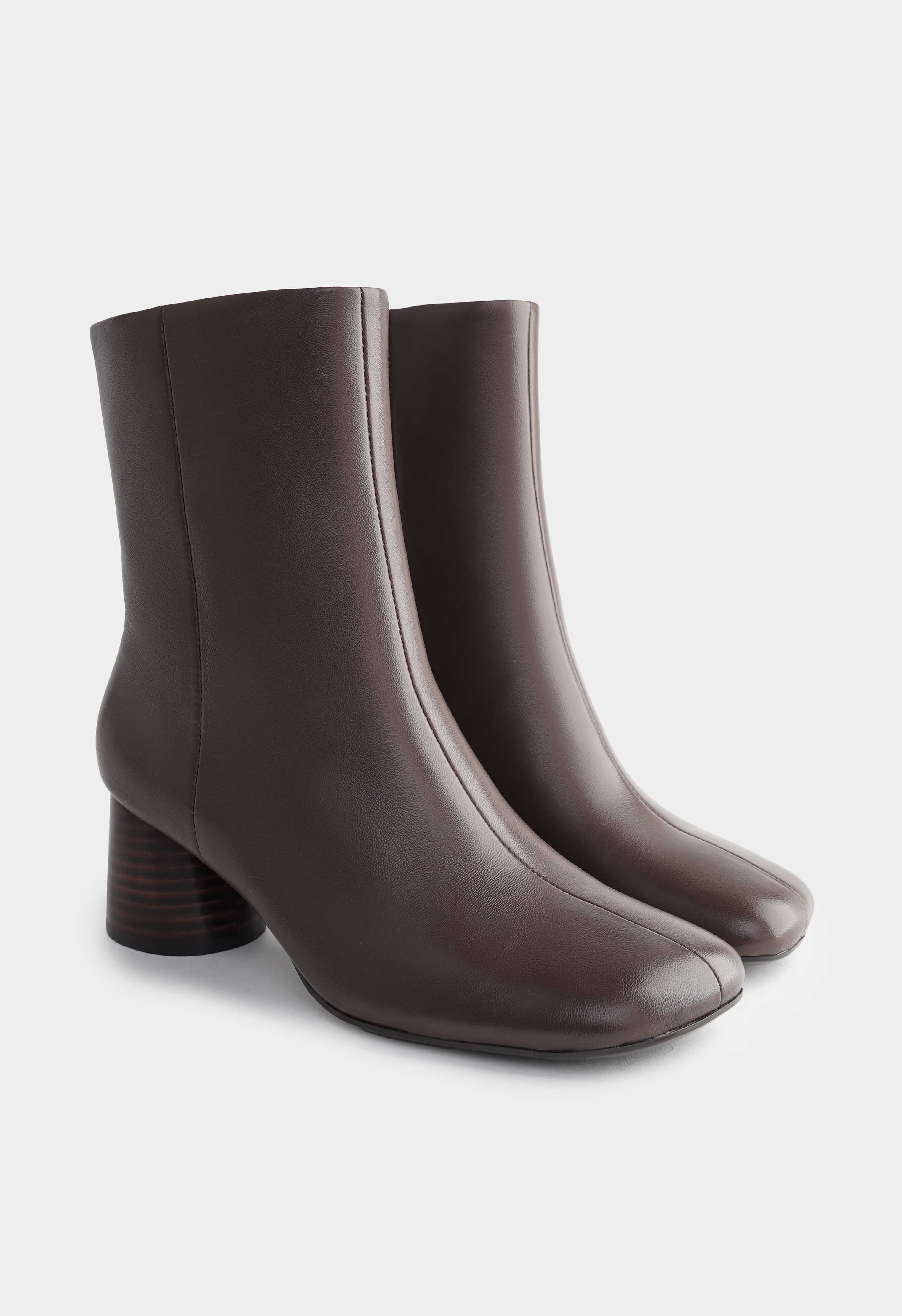 Коричневые ботильоны из натуральной кожи – аккуратная пара с мягкой линией голенища и современным силуэтом, которая легко вписывается в базовый гардероб. Квадратный мысок добавляет актуальную геометрию и делает посадку комфортной, а наборный каблук с древесной фактурой смотрится благородно и дает устойчивую высоту. Молния сбоку обеспечивает удобное надевание, а фурнитура в оттенке металлик добавляет сдержанный акцент и подчеркивает качество деталей. Жесткая подошва держит форму и поддерживает уверенный шаг – отличный выбор для офиса, города и прохладного сезона.
