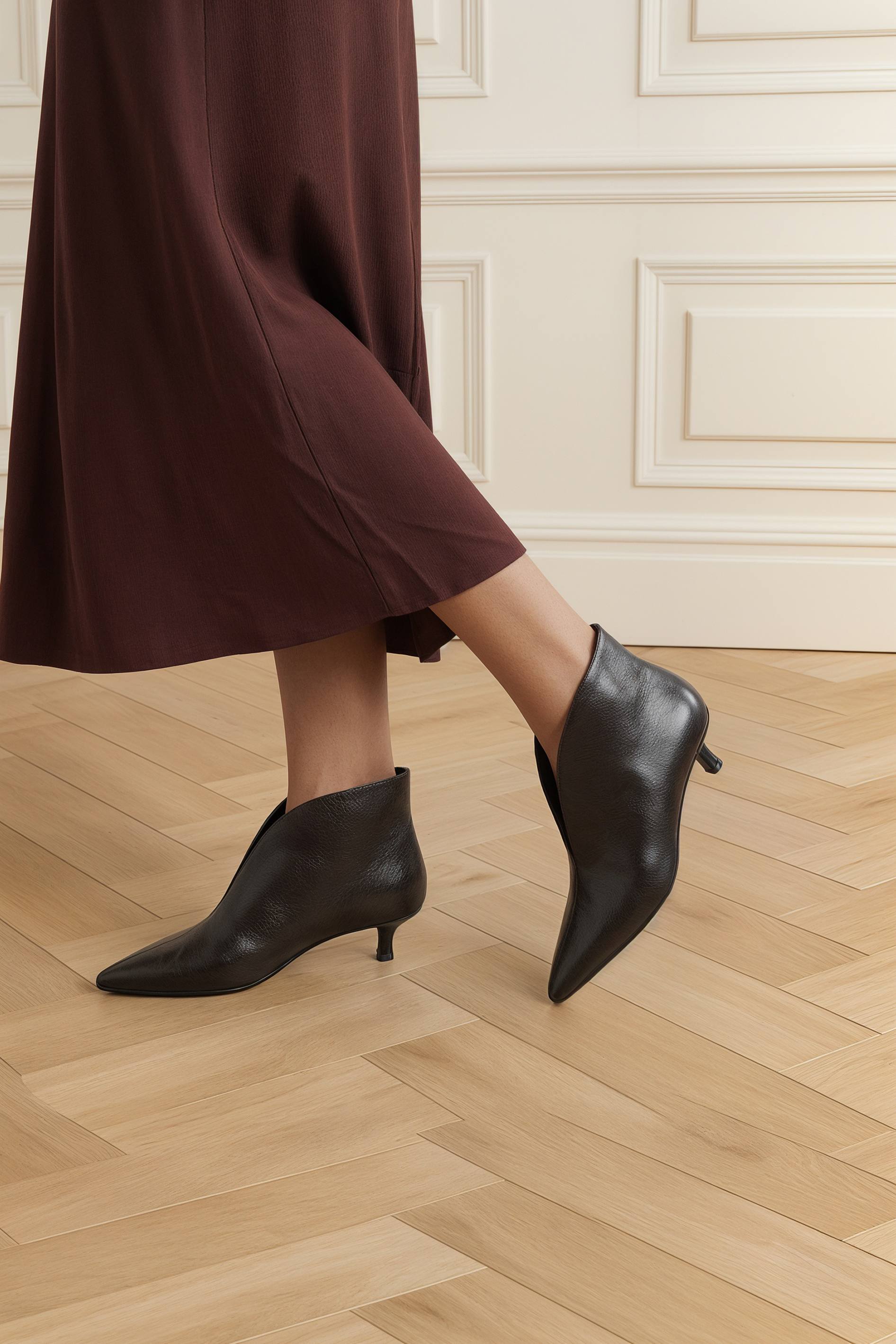 Коричневые ботильоны из натуральной кожи – универсальная и аккуратная пара, которая легко делает образ более собранным и стильным. Гладкая кожа выглядит дорого и ухоженно, заостренный мысок добавляет элегантности и визуально вытягивает силуэт. Невысокий каблук киттен хилл дает комфортную высоту на каждый день и смотрится женственно, не перегружая образ. Втачная резинка обеспечивает удобную посадку по ноге и помогает быстро надевать ботильоны, сохраняя элегантные линии модели. Гибкая подошва поддерживает мягкий шаг и комфорт при ходьбе, поэтому ботильоны подходят для офиса, встреч и активных городских прогулок.