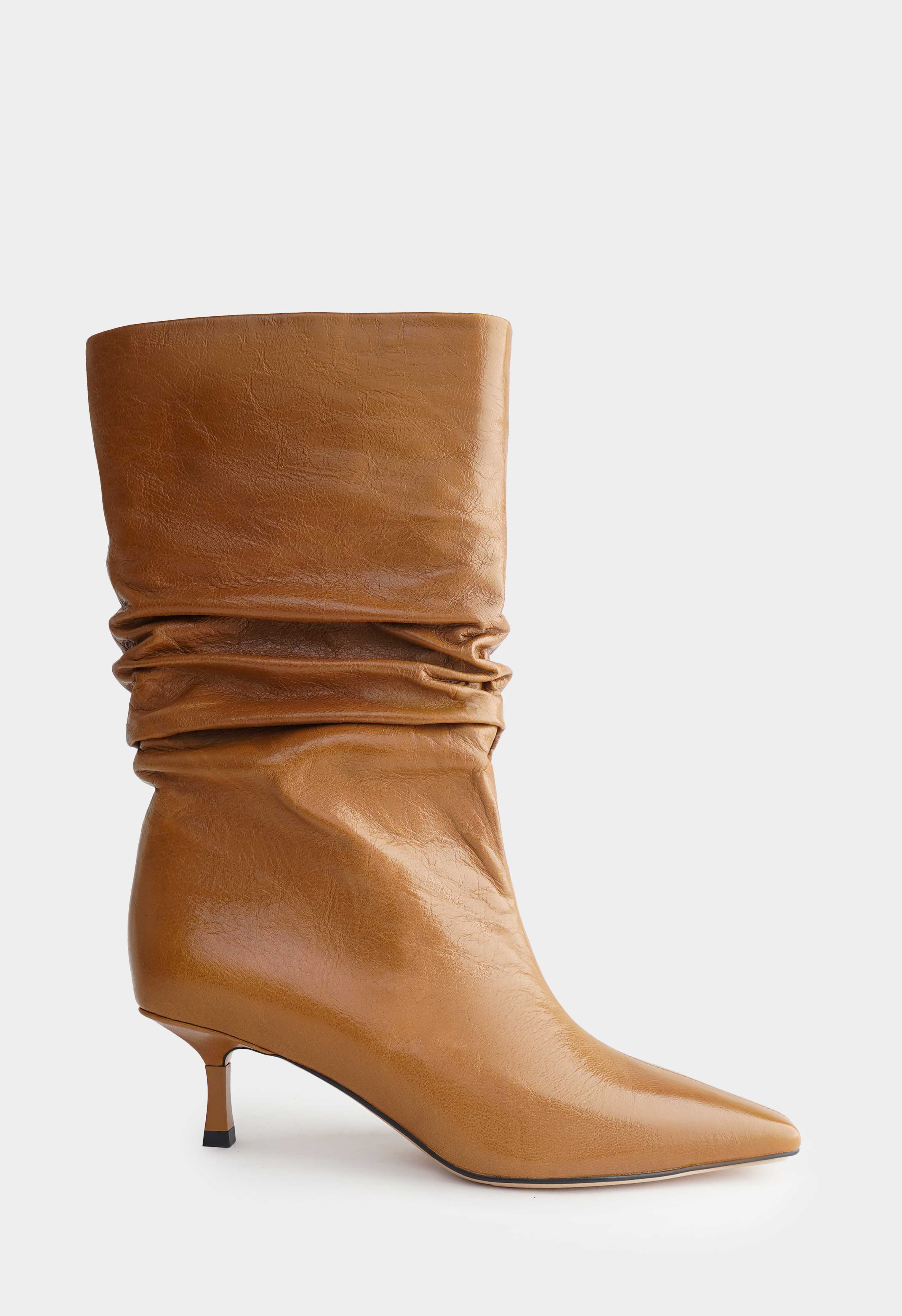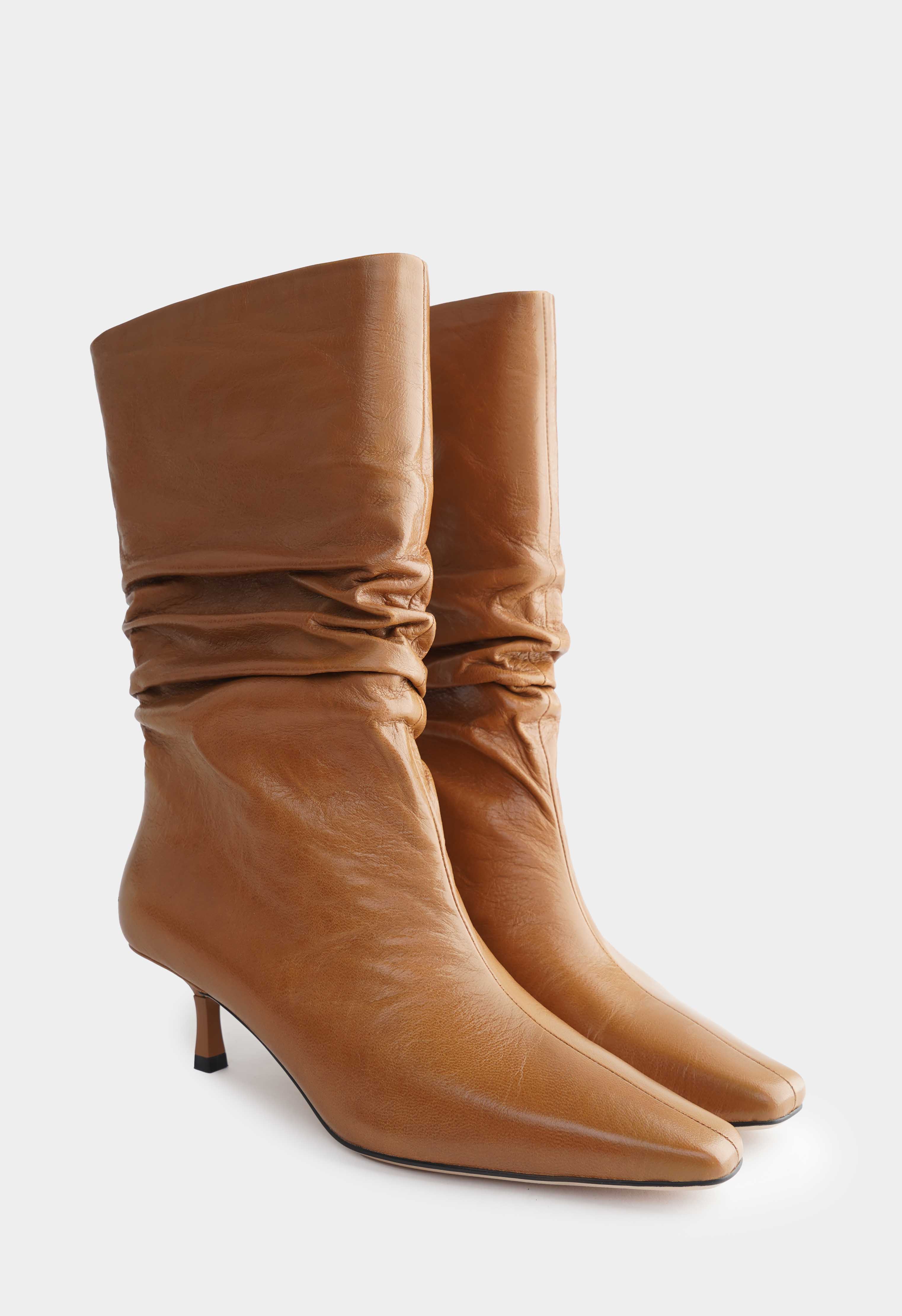 Высокие ботильоны в благородном коричневом оттенке – эффектная пара, которая сразу выделяет образ и смотрится очень дорого. Натуральная кожа с мягкими складками красиво ложится по голенищу, в то время как квадратный мысок подчеркивает аккуратный силуэт. Изящная шпилька визуально вытягивает ноги и делает походку более легкой, при этом модель остается комфортной для города. Внутри теплая байка дарит уют в прохладную погоду, а гибкая подошва поддерживает мягкий шаг и удобство в течение дня.
