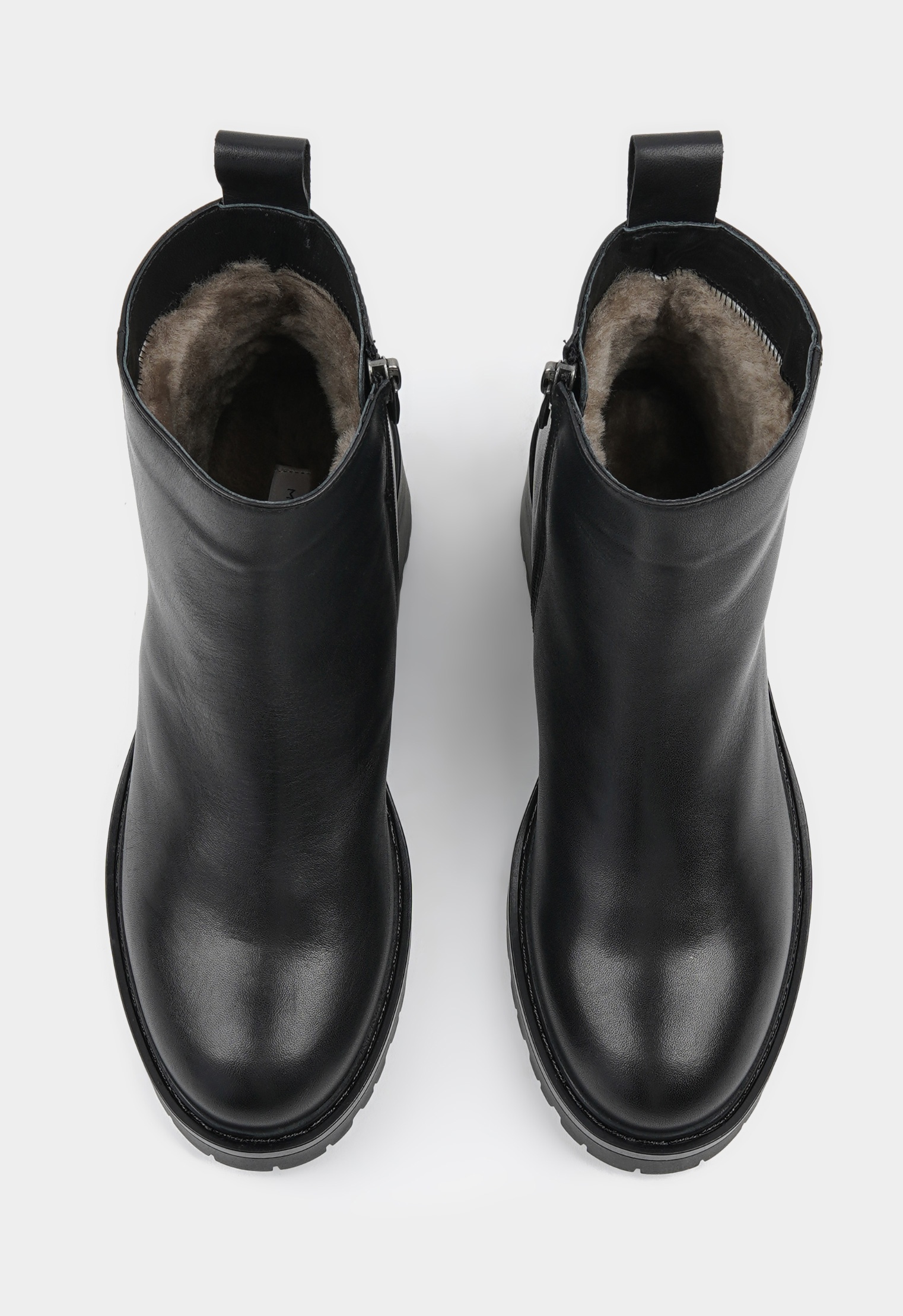 Высокие ботинки из новой коллекции выполнены из натуральной кожи и представлены в черном цвете. Современный крой дополнен удобной молнией и утепленной подкладкой из натурального меха. Специальный протектор предохраняет от скольжения во время ходьбы. Однотонная модель удачно впишется в повседневный гардероб и останется актуальной не один сезон. Чтобы выбрать наиболее комфортную модель, соответствующую вашим анатомическим особенностям, следует учесть полноту модели и характеристики стопы. Более подробную информацию по выбору размера и об особенностях модели предоставит наш менеджер.