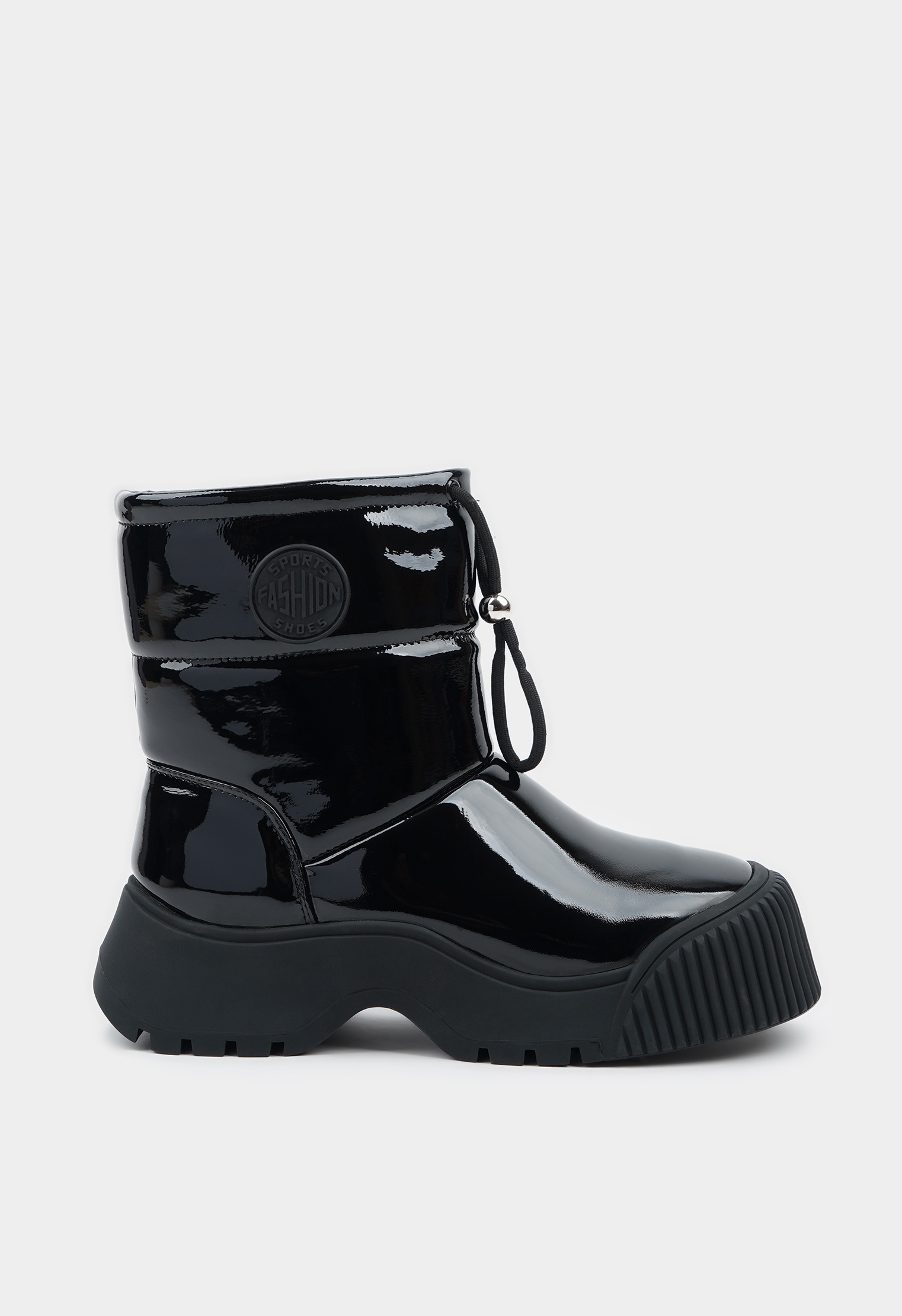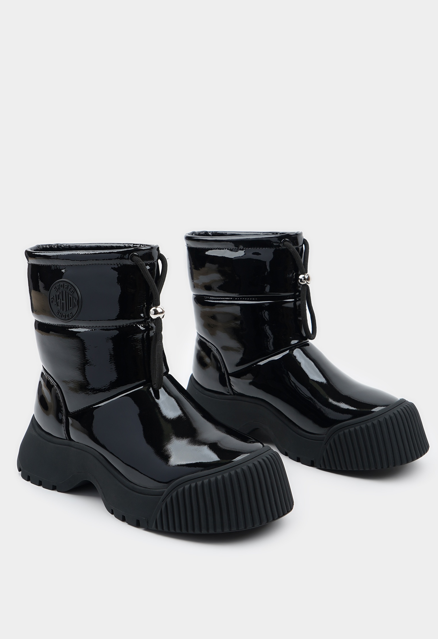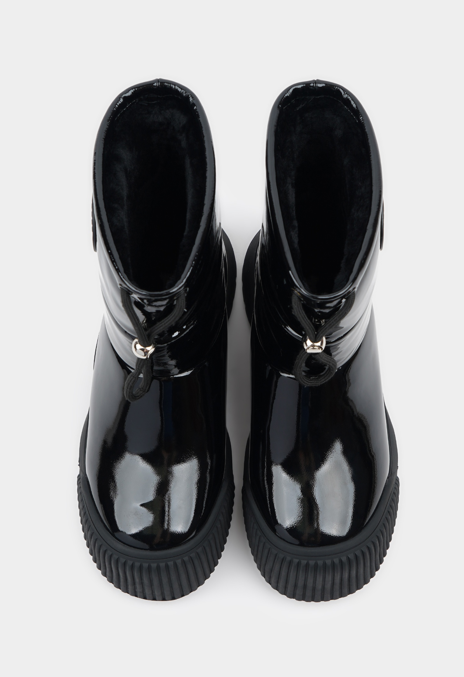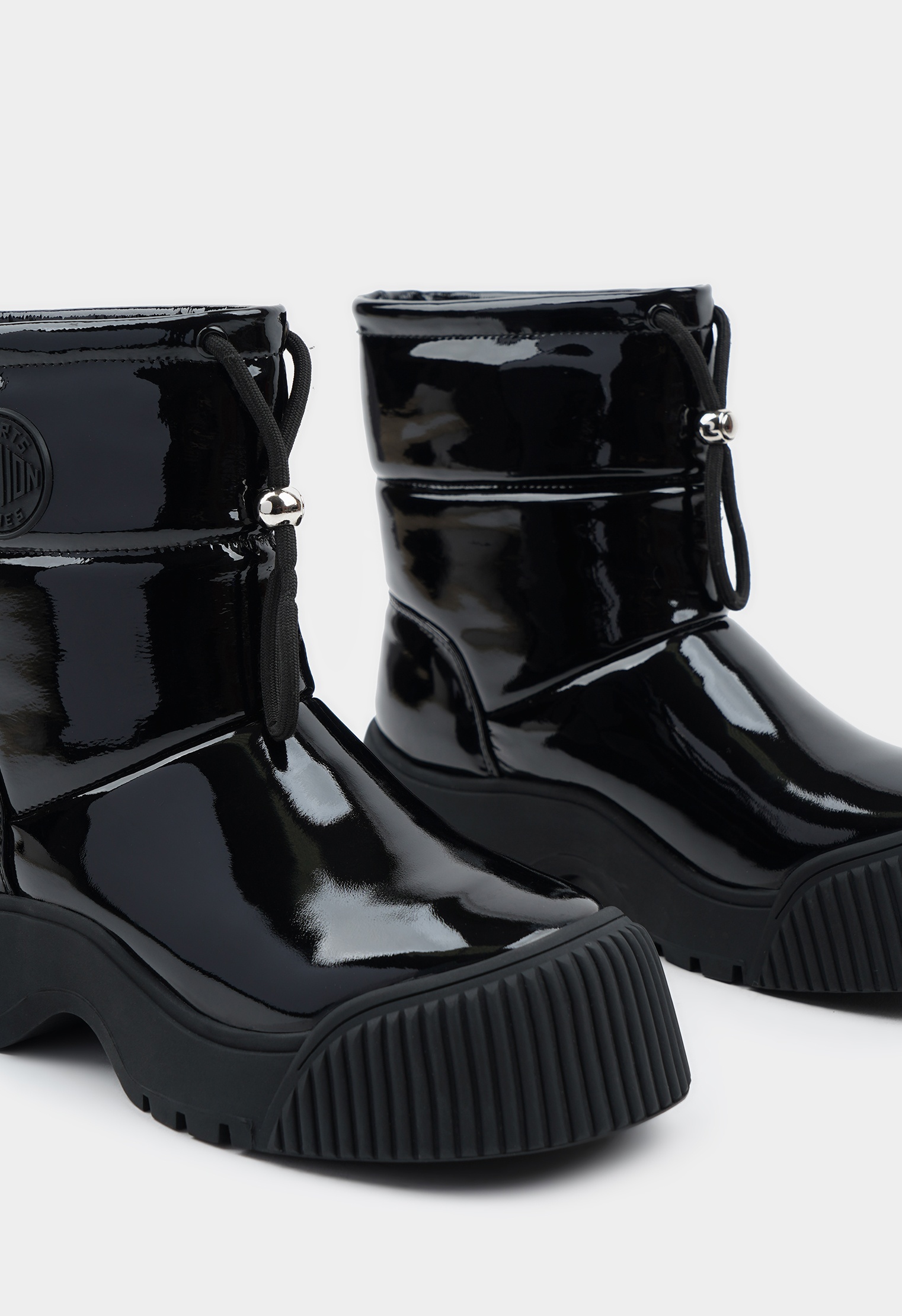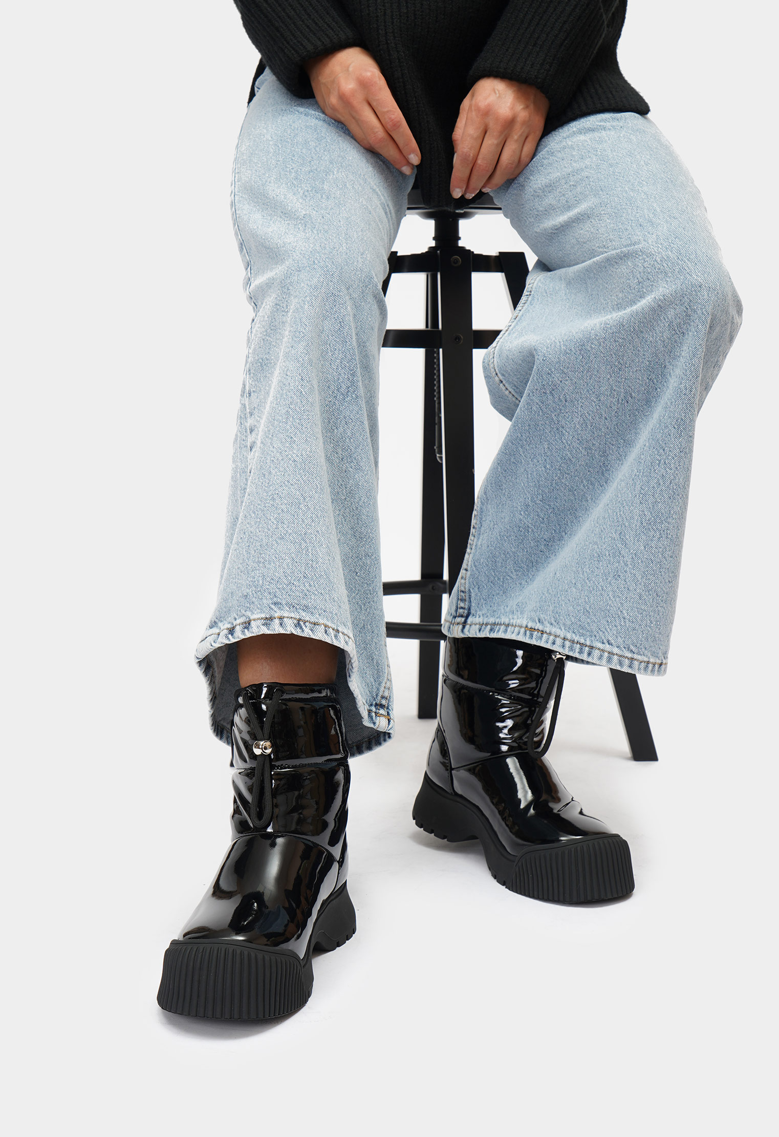 Высокие дутики из новой коллекции выполнены из натуральной лакированной кожи и представлены в черном цвете. Современный силуэт дополнен шнурком с регулировкой и массивной платформой. Утепленная подкладка и стелька из натурального меха обеспечивают комфорт в зимний сезон. Эффектная модель удачно впишется в базовый гардероб на каждый день. Чтобы выбрать наиболее комфортную модель, соответствующую вашим анатомическим особенностям, следует учесть полноту модели и характеристики стопы. Более подробную информацию по выбору размера и об особенностях модели предоставит наш менеджер.