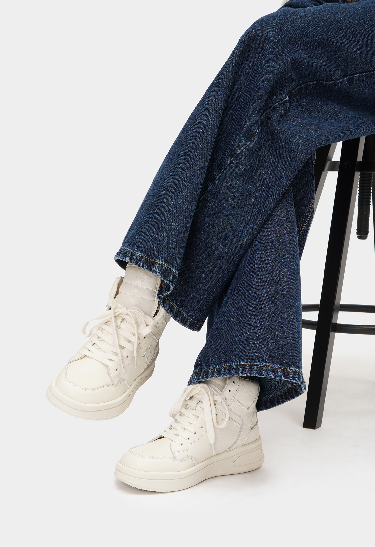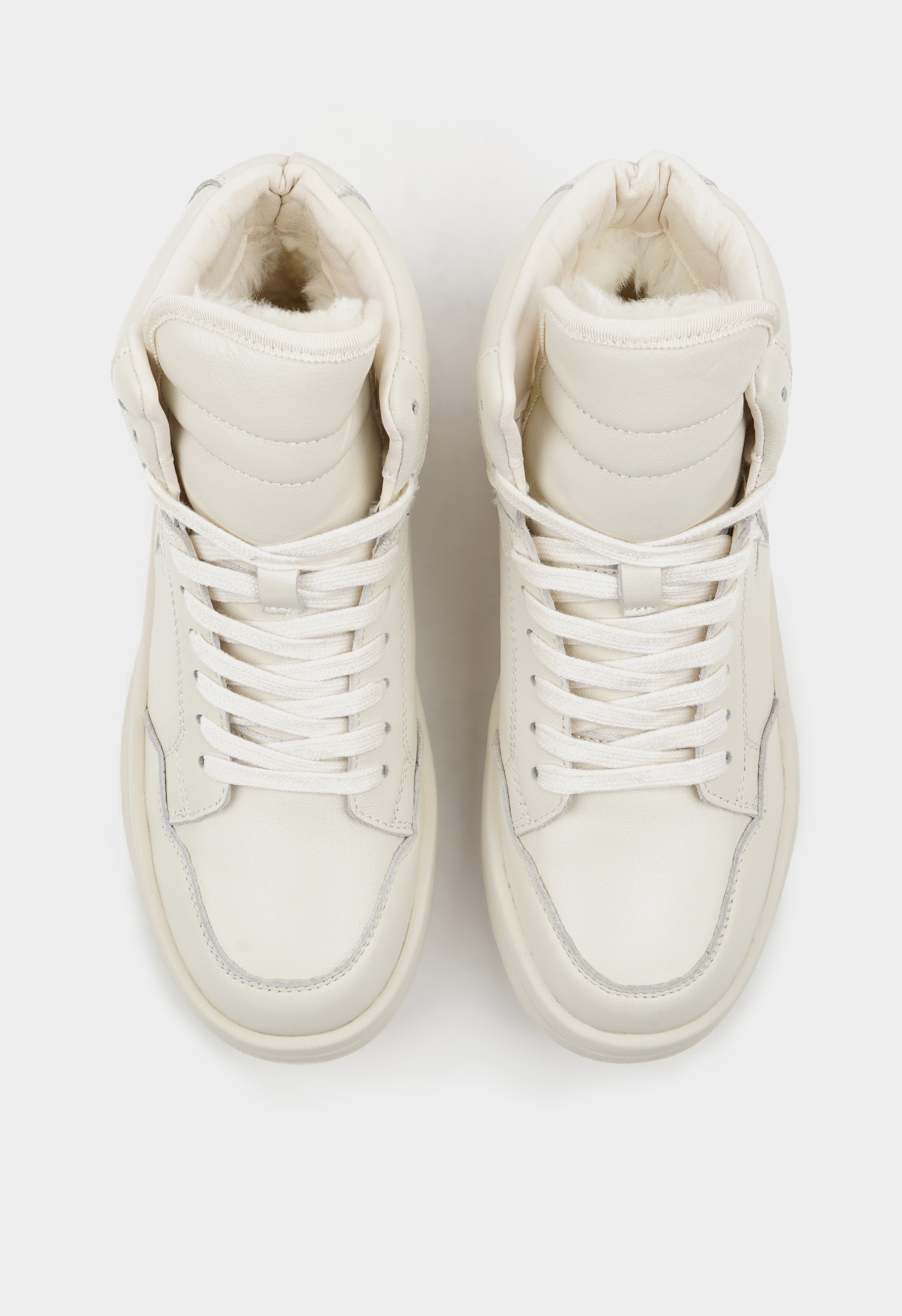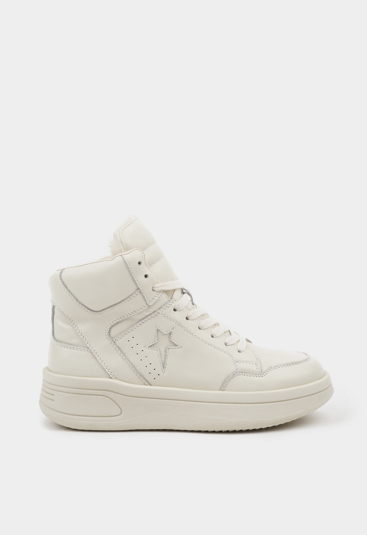 Высокие кроссовки из новой коллекции выполнены из натуральной кожи и представлены в однотонном дизайне. Современный крой дополнен лаконичной шнуровкой и платформой в тон. Утепленная подкладка и съемная стелька из натурального меха обеспечивают комфорт в зимний сезон. Актуальная модель идеально впишется в модный образ в спортивном стиле. Чтобы выбрать наиболее комфортную модель, соответствующую вашим анатомическим особенностям, следует учесть полноту модели и характеристики стопы. Более подробную информацию по выбору размера и об особенностях модели предоставит наш менеджер.