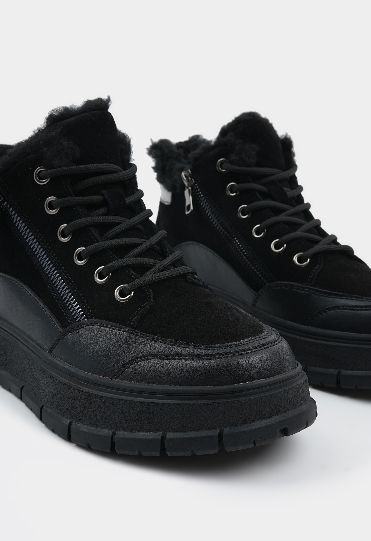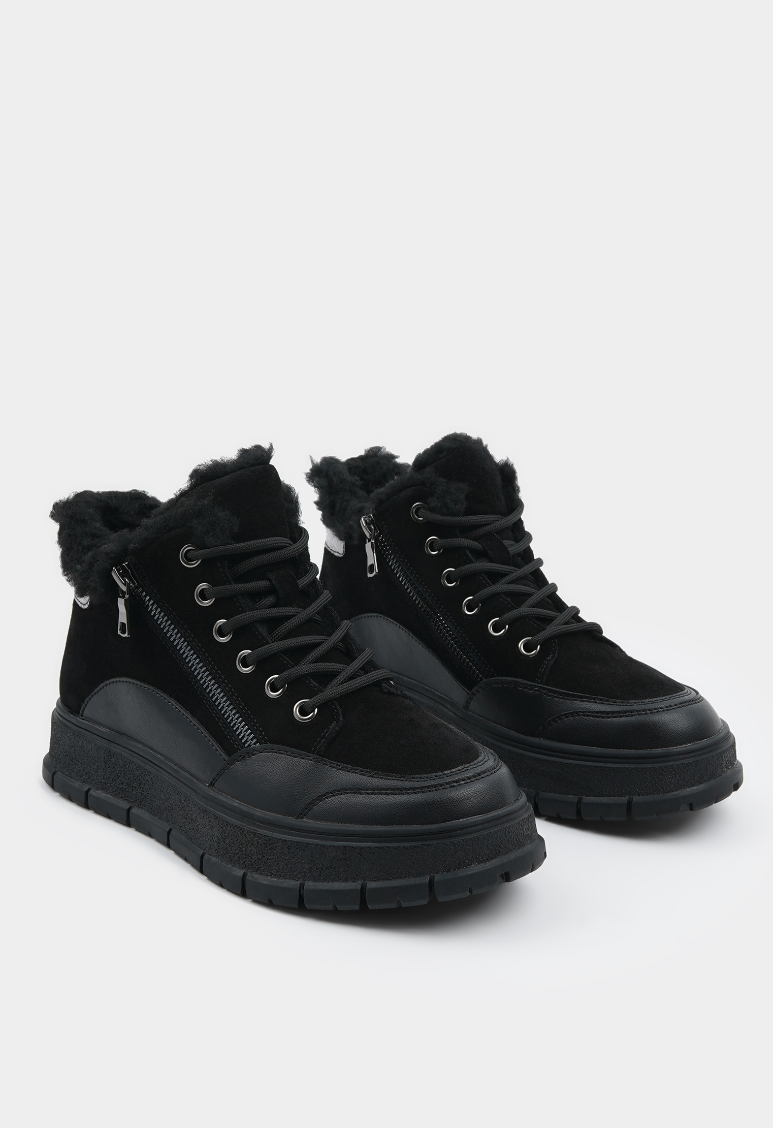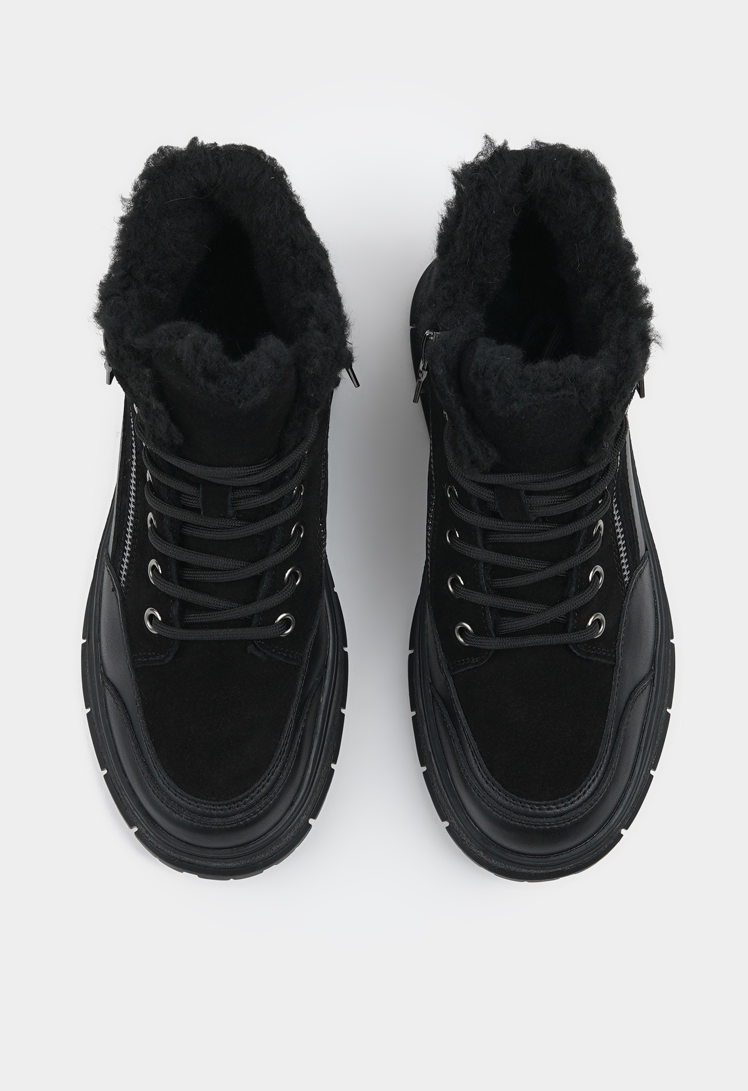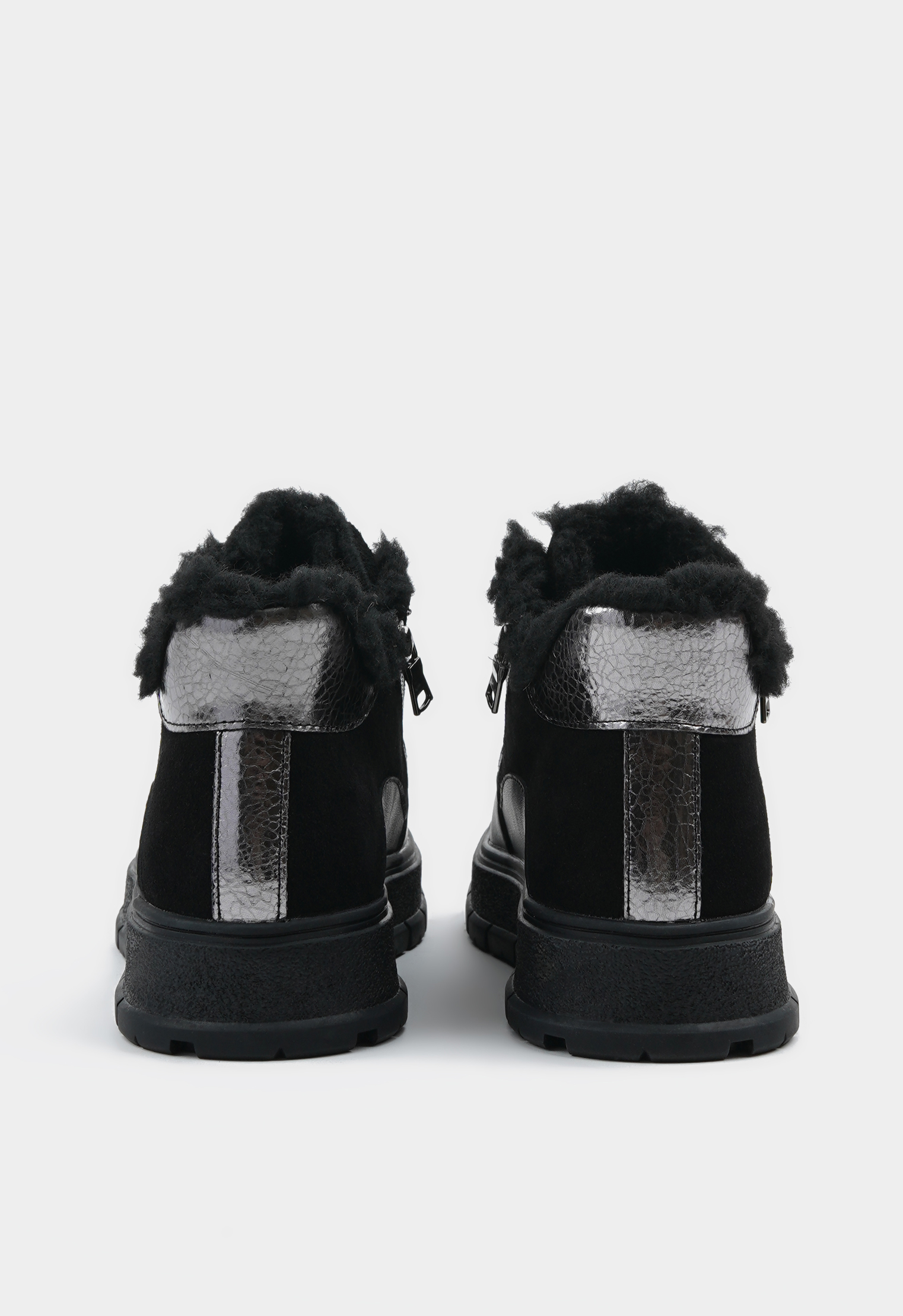 Вчера получила свой заказ.. Ботинки оказались на удивление удобными, выглядят на свою цену, замша и кожаные вставки все натуральное, внутри шерсть, мех смысла брать не было т.к. зимы не сильно морозные, для города вполне подойдут. Размер 39 сел четко по ноге, подбирала вместе с менеджером которая объяснила как надо правильно мерить обувь. Надеюсь прослужат долго!