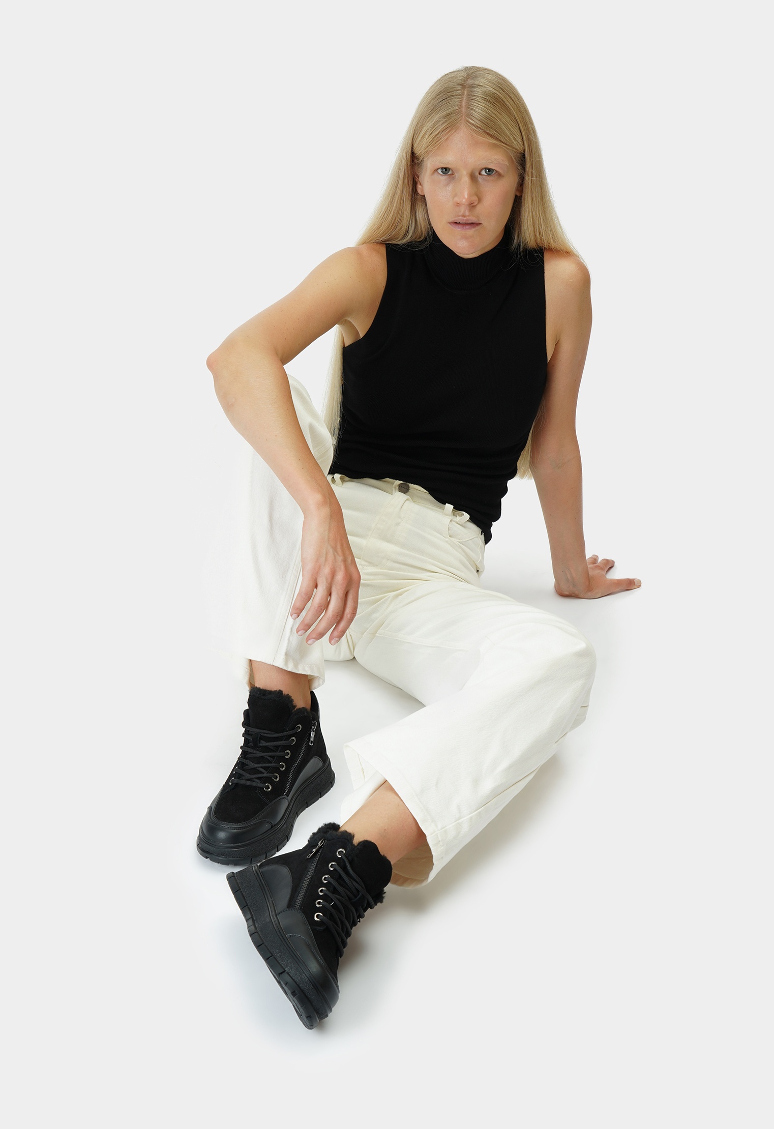 Высокие ботинки из новой коллекции выполнены из натуральной замши и представлены в однотонном дизайне. Современная модель дополнена шнуровкой и симметричными молниями по бокам. Утепленная подкладка из натуральной шерсти гарантирует высокий уровень комфорта в зимний сезон. Актуальная модель удачно впишется в стильный образ на каждый день. Чтобы выбрать наиболее комфортную модель, соответствующую вашим анатомическим особенностям, следует учесть полноту модели и характеристики стопы. Более подробную информацию по выбору размера и об особенностях модели предоставит наш менеджер.