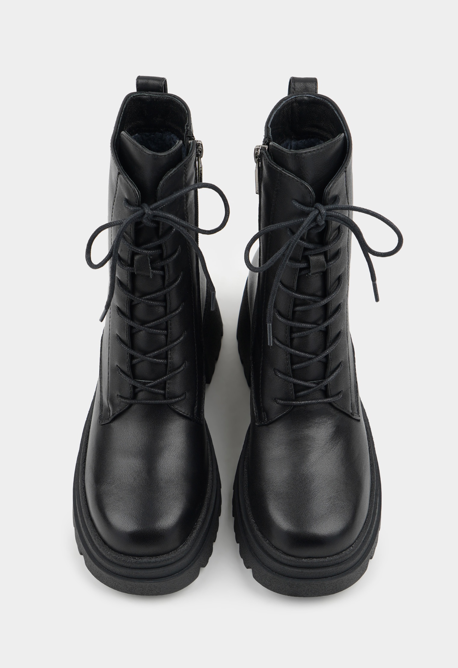 Стильные ботильоны из новой коллекции выполнены из натуральной кожи и представлены в однотонном дизайне. Трендовый крой на платформе дополнен шнуровкой и удобной молнией сбоку. Утепленная подкладка из натурального меха обеспечивает высокий уровень комфорта. Лаконичная модель на устойчивом каблуке удачно впишется в зимний гардероб на каждый день. Чтобы выбрать наиболее комфортную модель, соответствующую вашим анатомическим особенностям, следует учесть полноту модели и характеристики стопы. Более подробную информацию по выбору размера и об особенностях модели предоставит наш менеджер.