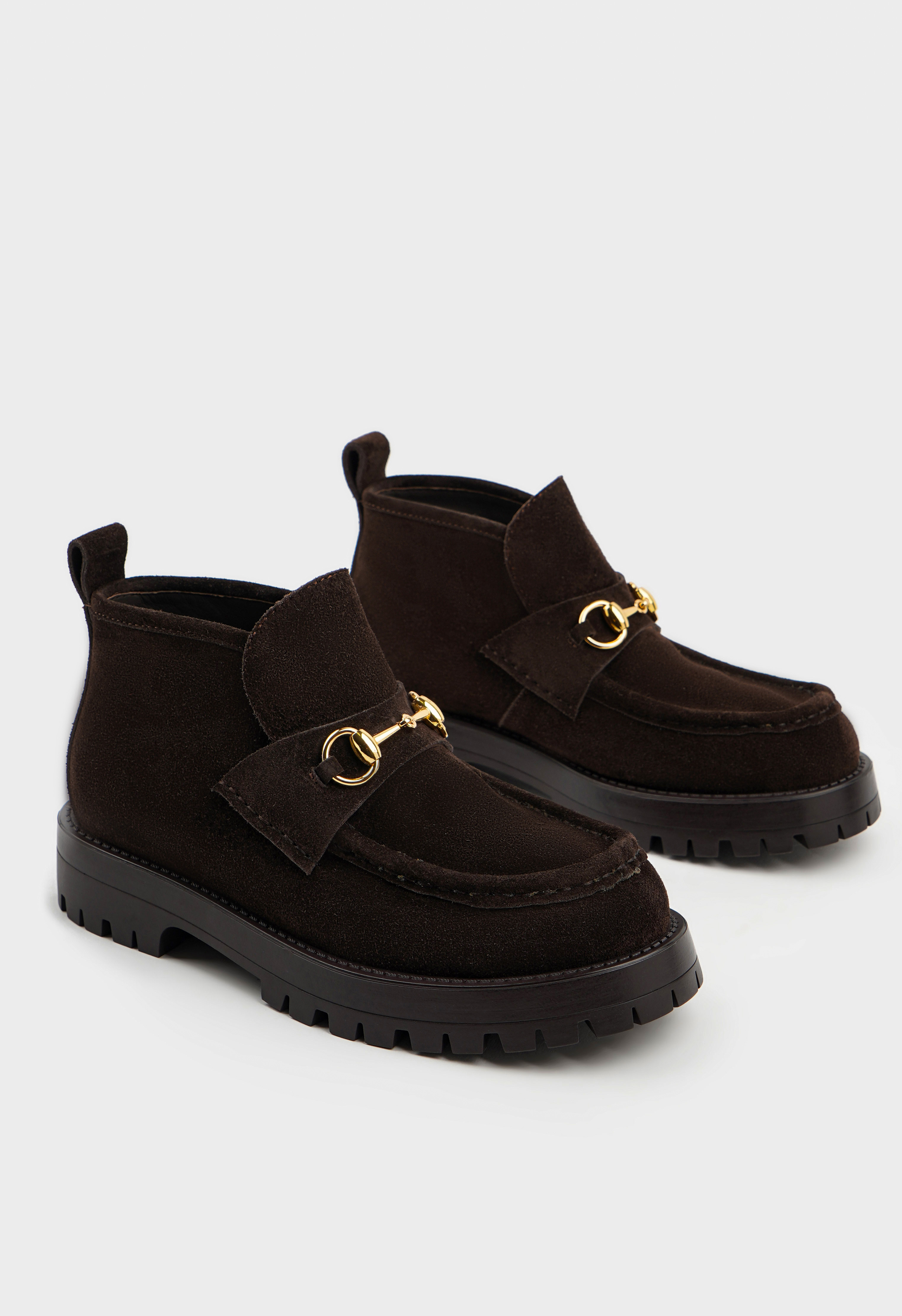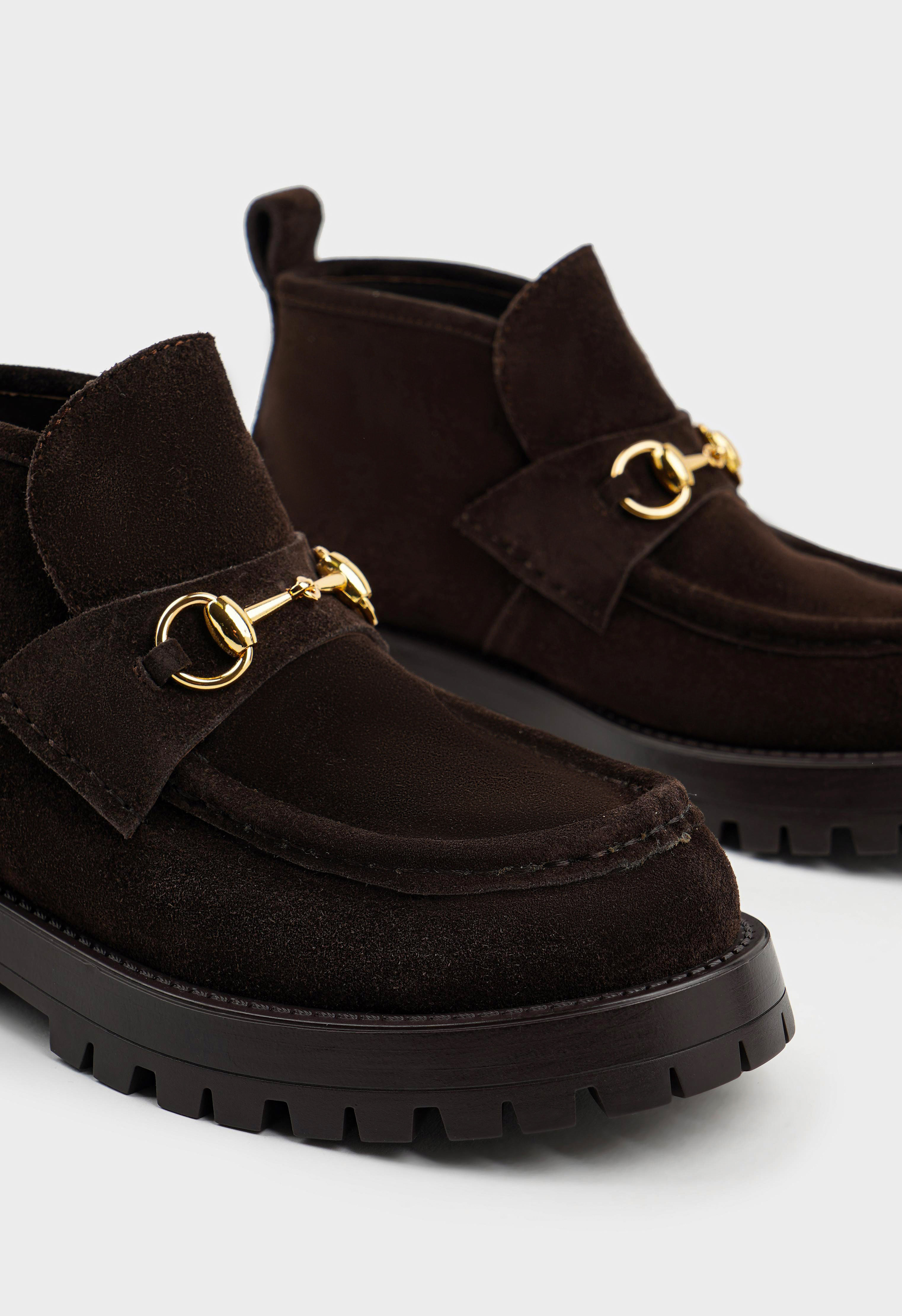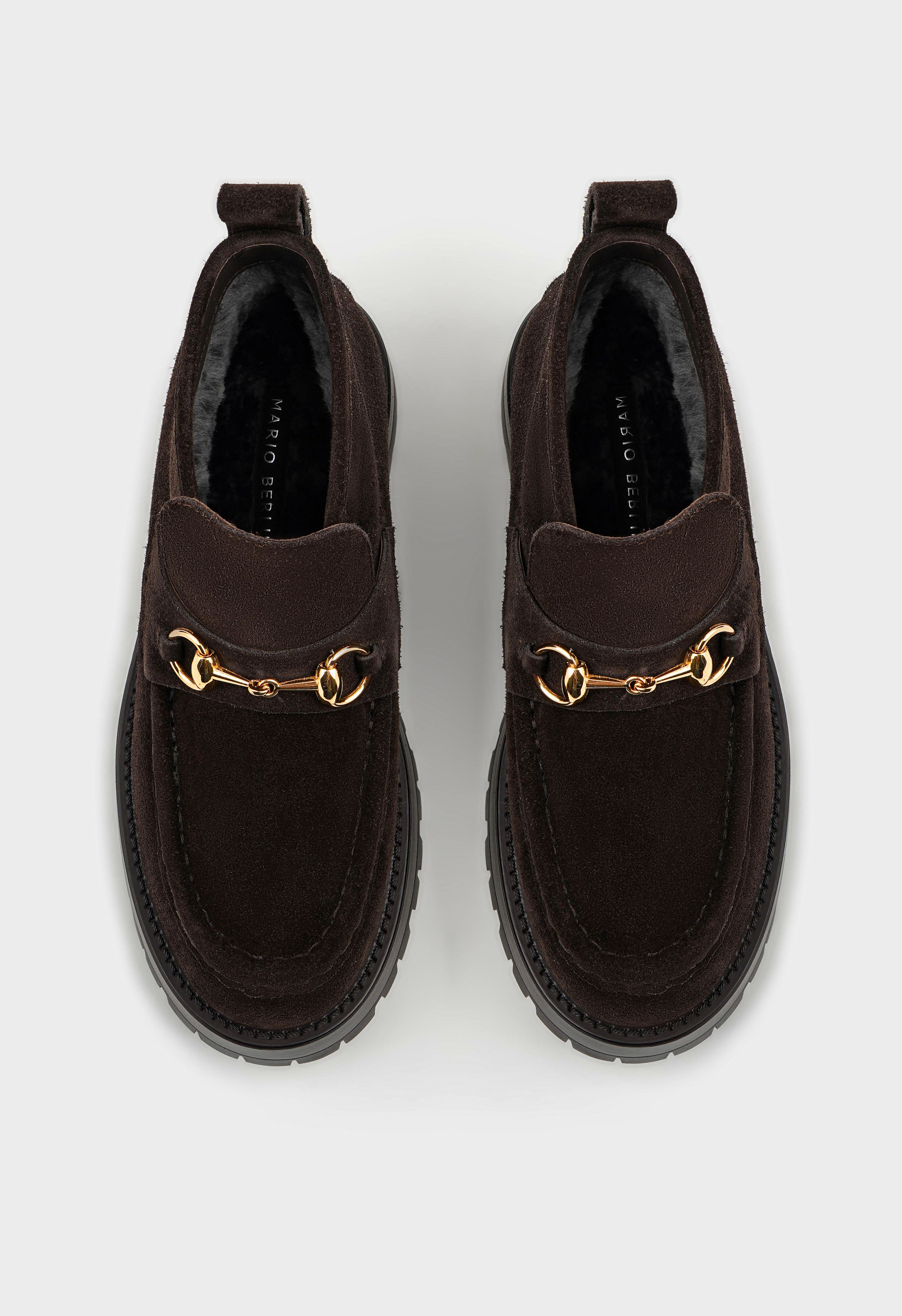 Зимние замшевые ботинки с золотой фурнитурой дополнят образ своим повседневным привлекательным дизайном. Внутренняя меховая отделка сохранит тепло на протяжении всего дня, а с помощью втачной резинки можно быстро надевать обувь, обеспечивая надежную фиксацию на ноге. С этими ботинками вы почувствуете себя как дома, так как они создают ощущение мягкости и уюта. Чтобы выбрать наиболее комфортную модель, соответствующую вашим анатомическим особенностям, следует учесть полноту модели и характеристики стопы. Более подробную информацию по выбору размера и об особенностях модели предоставит наш менеджер.
