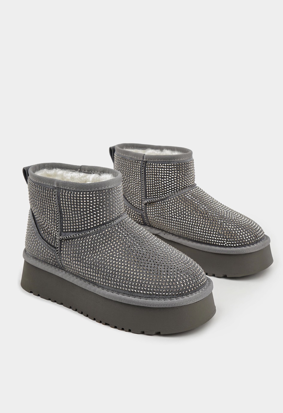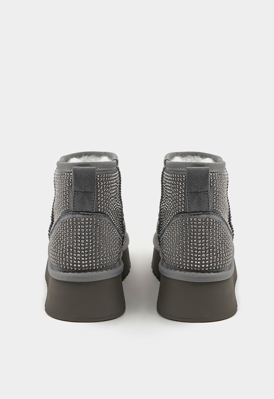 Трендовые серые угги из натуральной замши – стильный и удобный выбор для холодных дней. Дизайн дополнен элегантными стразами, которые придают обуви изысканный вид. Внутри – натуральная шерсть, которая сохраняет тепло и дарит комфорт. Округлый мысок обеспечивает свободу для пальцев, а платформа придаёт дополнительный комфорт и стильный акцент. Чтобы выбрать наиболее комфортную модель, соответствующую вашим анатомическим особенностям, следует учесть полноту модели и характеристики стопы. Более подробную информацию по выбору размера и об особенностях модели предоставит наш менеджер.