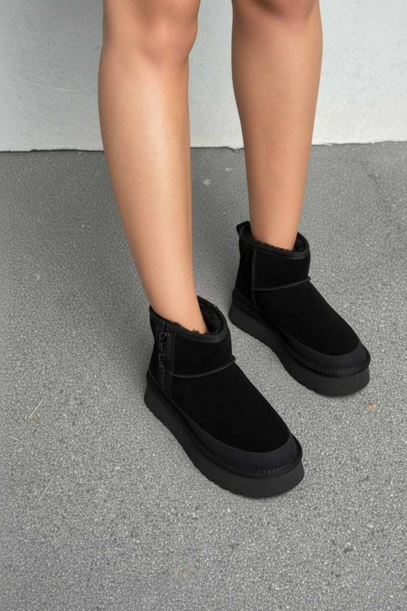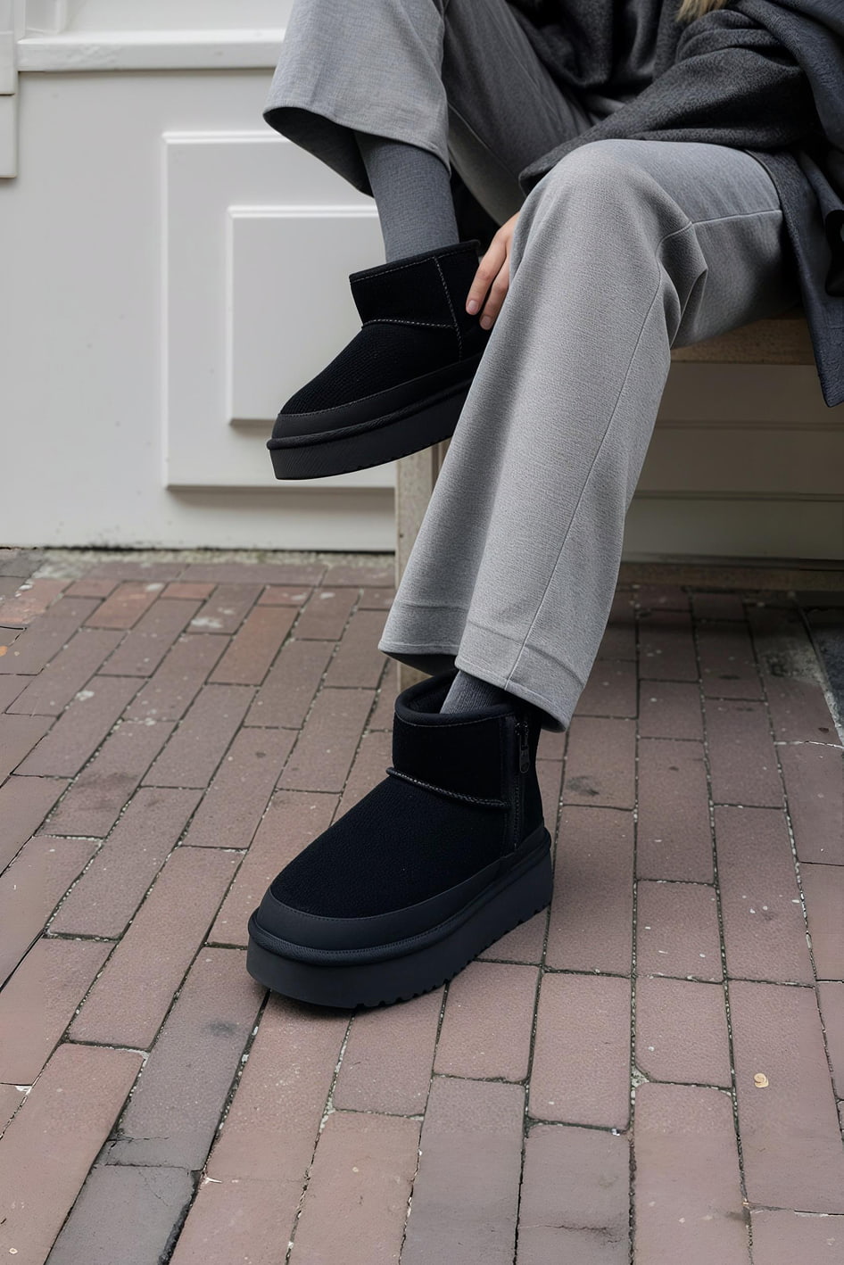 Чёрные угги из натуральной замши – это не только тепло, но и стиль, который привлекает взгляды. Натуральная шерсть внутри создаёт уют, а округлый мысок и молния делают их удобными и практичными. Платформа обеспечивает комфорт, делая каждый шаг лёгким. Чтобы выбрать наиболее комфортную модель, соответствующую вашим анатомическим особенностям, следует учесть полноту модели и характеристики стопы. Более подробную информацию по выбору размера и об особенностях модели предоставит наш менеджер.