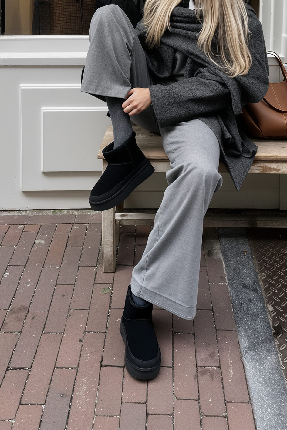 Выбрала угги как повседневный вариант вместо сапог. Замшевая поверхность смотрится очень
