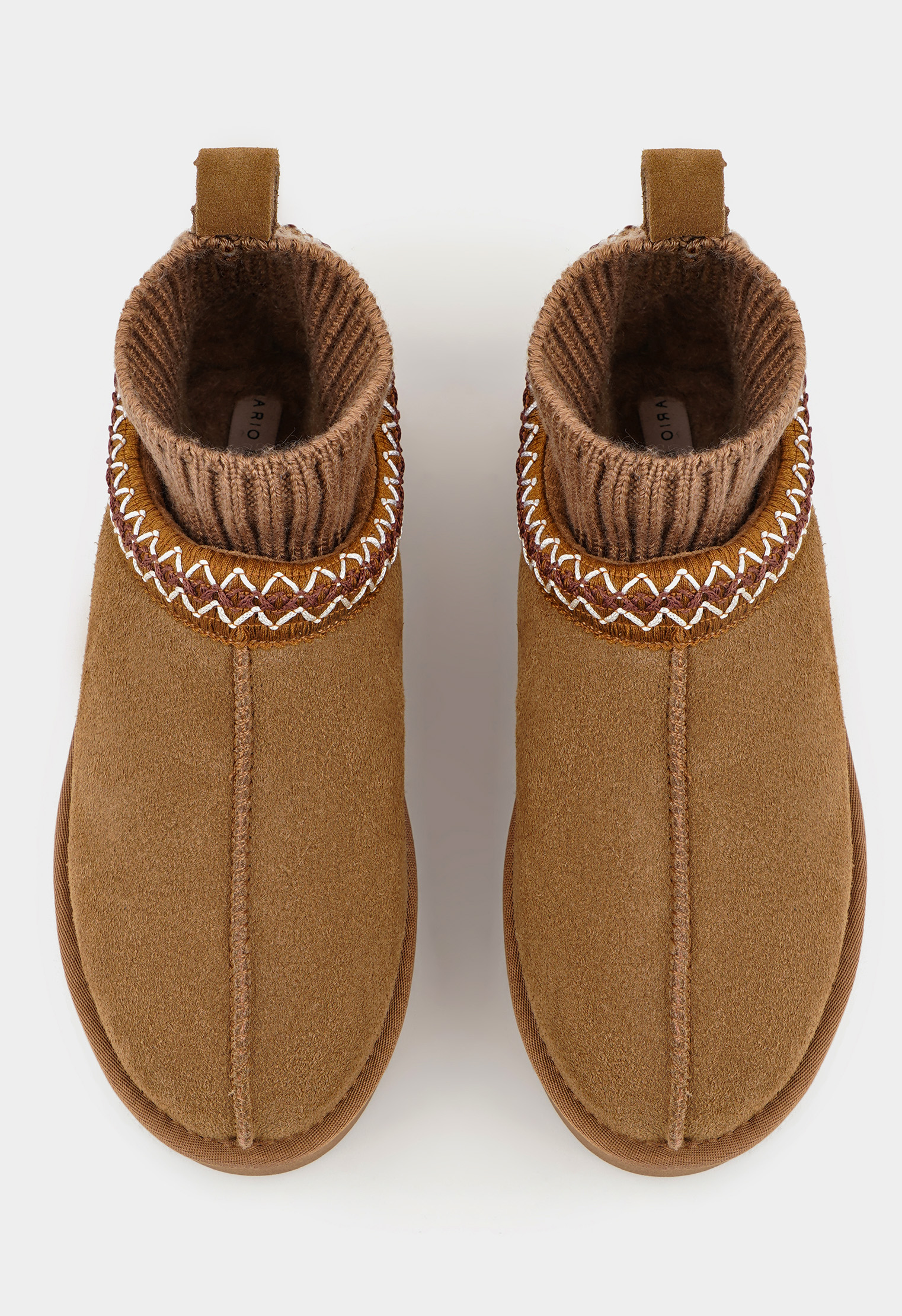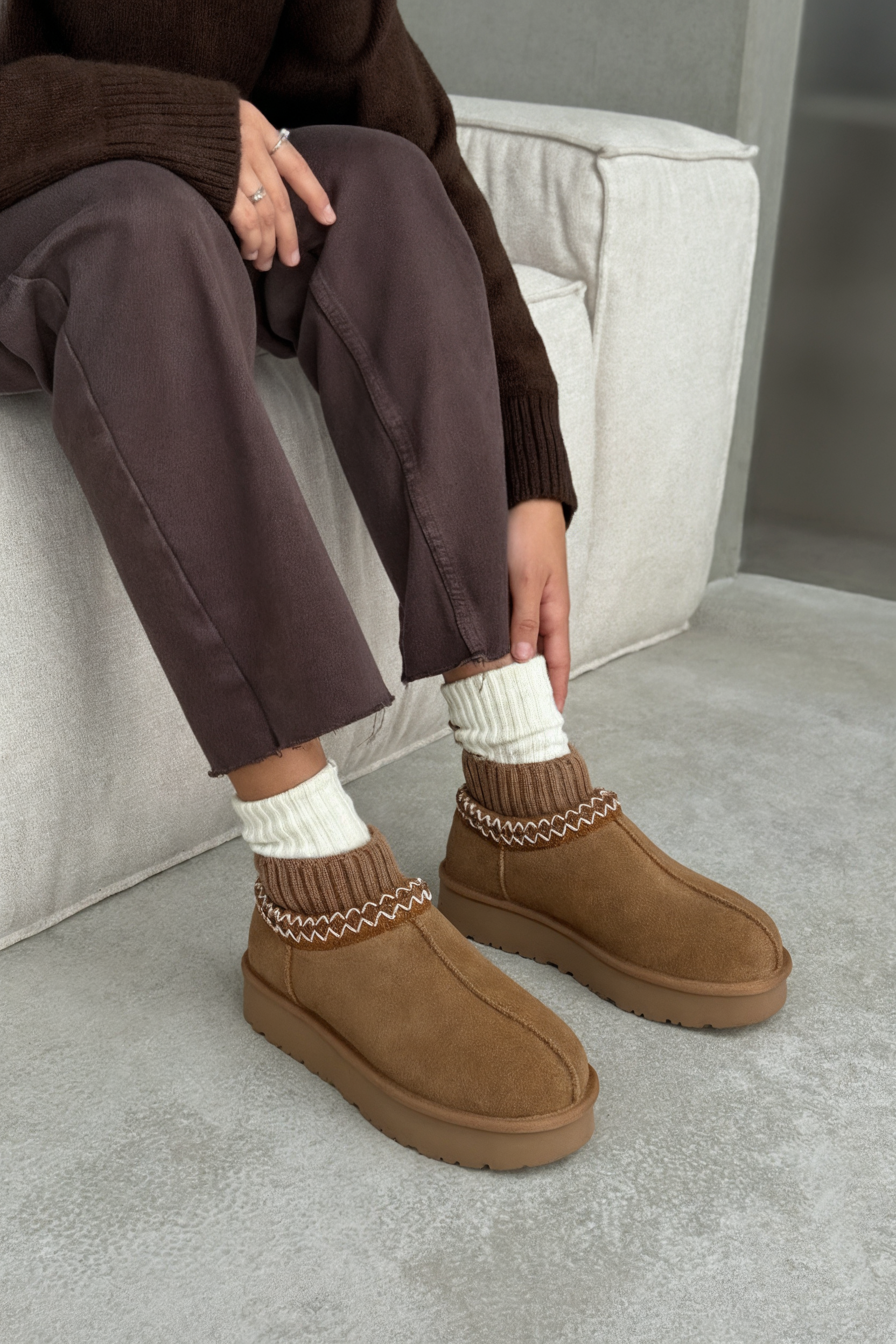 Эти угги с первого шага помогут чувствовать комфорт и тепло. Рыжий цвет модели – воплощение элегантности, который легко сочетается с любым образом и всегда выглядит стильно. Внешняя поверхность из натуральной замши добавляет обуви утончённый вид, при этом она надёжно защищает от холода. Внутри – натуральный мех, который дарит непревзойдённое ощущение тепла и мягкости, окутывая ноги и обеспечивая комфорт даже в самые морозные дни. Устойчивая платформа гарантирует, что каждый шаг будет уверенным и лёгким, даже на заснеженных дорогах. Чтобы выбрать наиболее комфортную модель, соответствующую вашим анатомическим особенностям, следует учесть полноту модели и характеристики стопы. Более подробную информацию по выбору размера и об особенностях модели предоставит наш менеджер.