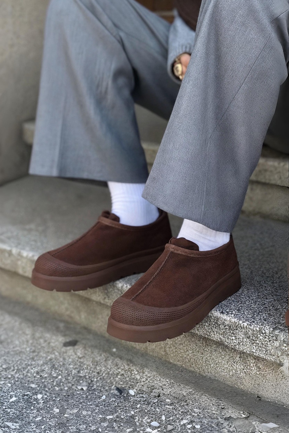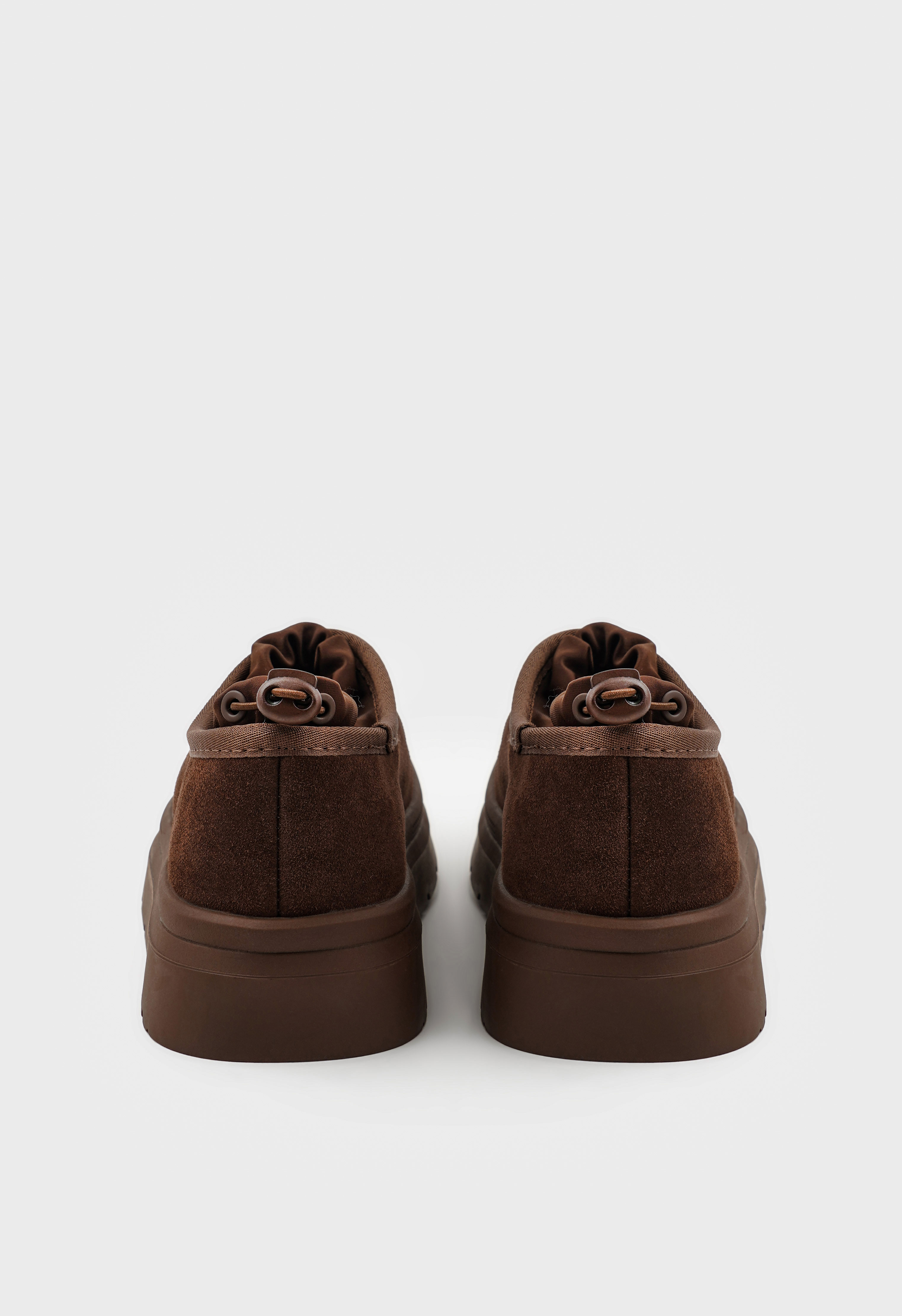 Полуботинки коричневого оттенка из мягкой натуральной замши с аккуратной платформой и элегантным округлым мыском создают уютный и одновременно выразительный образ для холодного сезона. Пара сочетает в себе практичную жесткую подошву, обеспечивающую надежную устойчивость, и плотную подкладку из натуральной шерсти, дарящую исключительное тепло. Продуманная система шнуровки с фиксатором гарантирует идеальную посадку по ноге, а благородный рыжий цвет и фактура замши делают эту модель универсальным дополнением для зимнего гардероба.