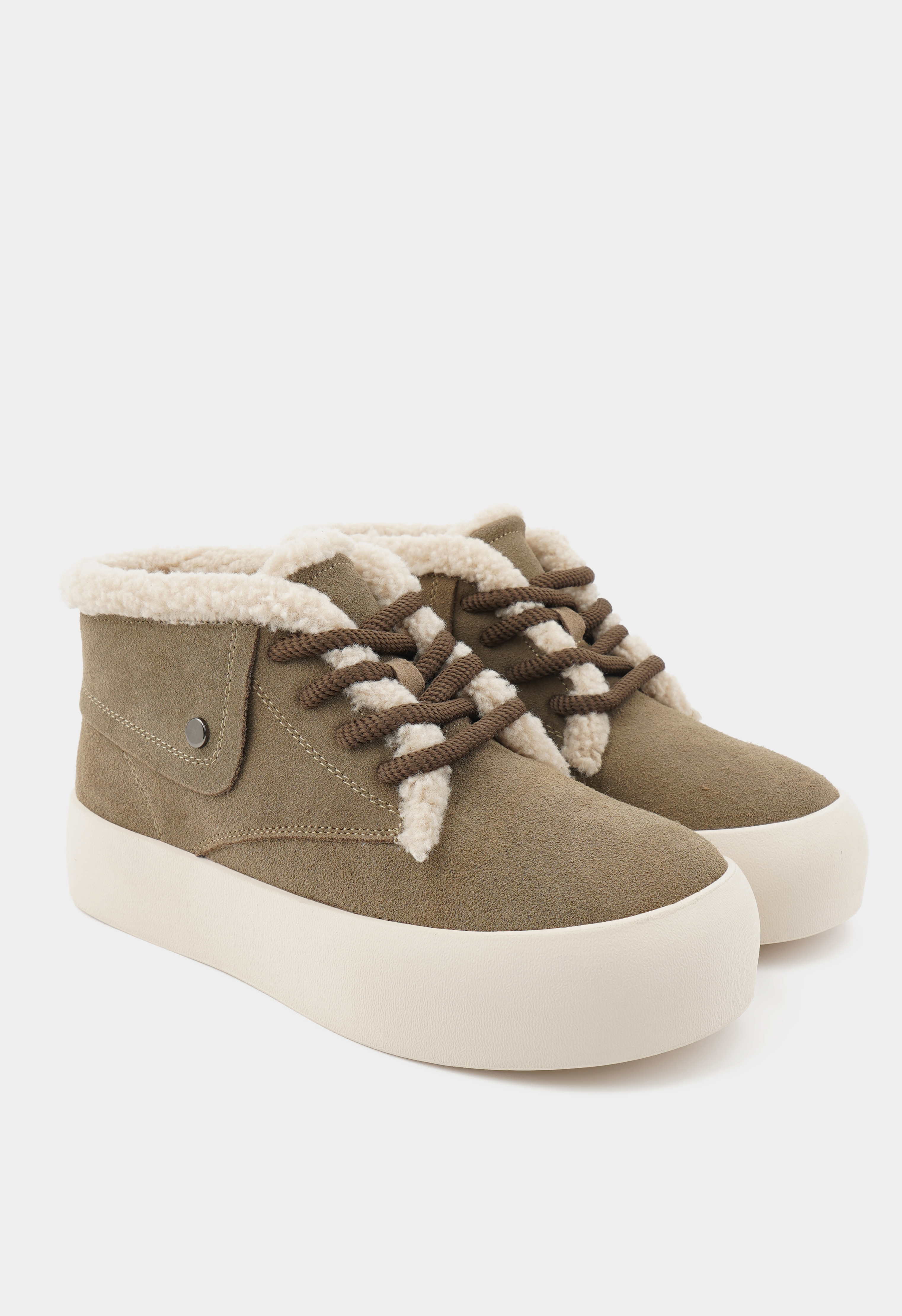 Теплые зимние ботинки из мягкой натуральной замши с густой натуральной шерстью внутри подарят уют и защиту в самые морозные дни. Гибкая подошва и устойчивая платформа обеспечивают комфорт при ходьбе, а округлый мысок дает ногам свободу и удобство. Стильная металлическая фурнитура и классическая шнуровка добавляют образу динамики и позволяют регулировать посадку. Глубокий цвет хаки смотрится благородно и легко сочетается с повседневным гардеробом, делая эти ботинки идеальным выбором для города и активного отдыха зимой.