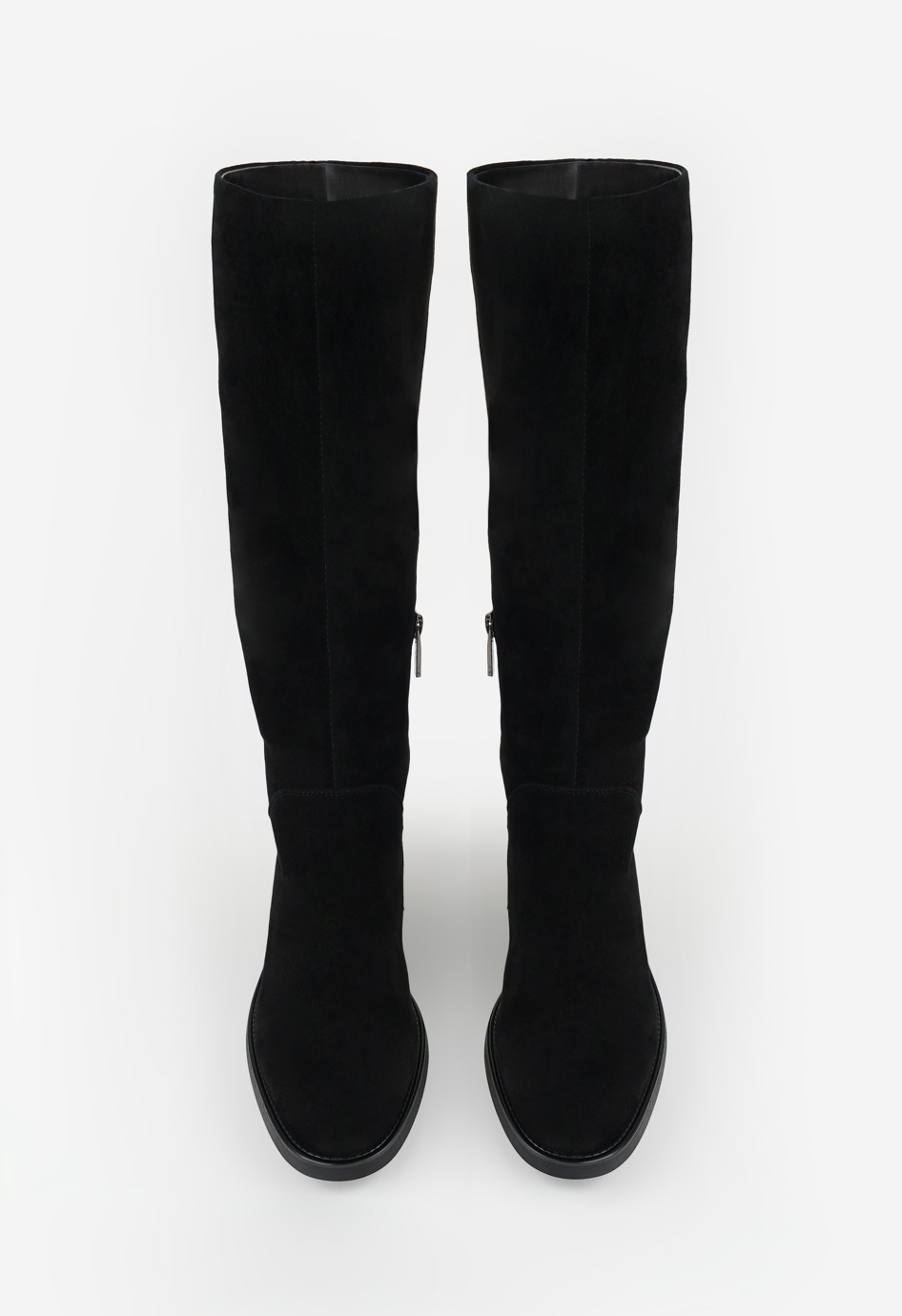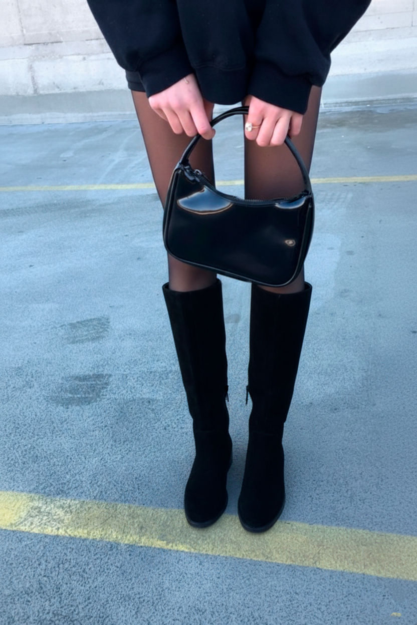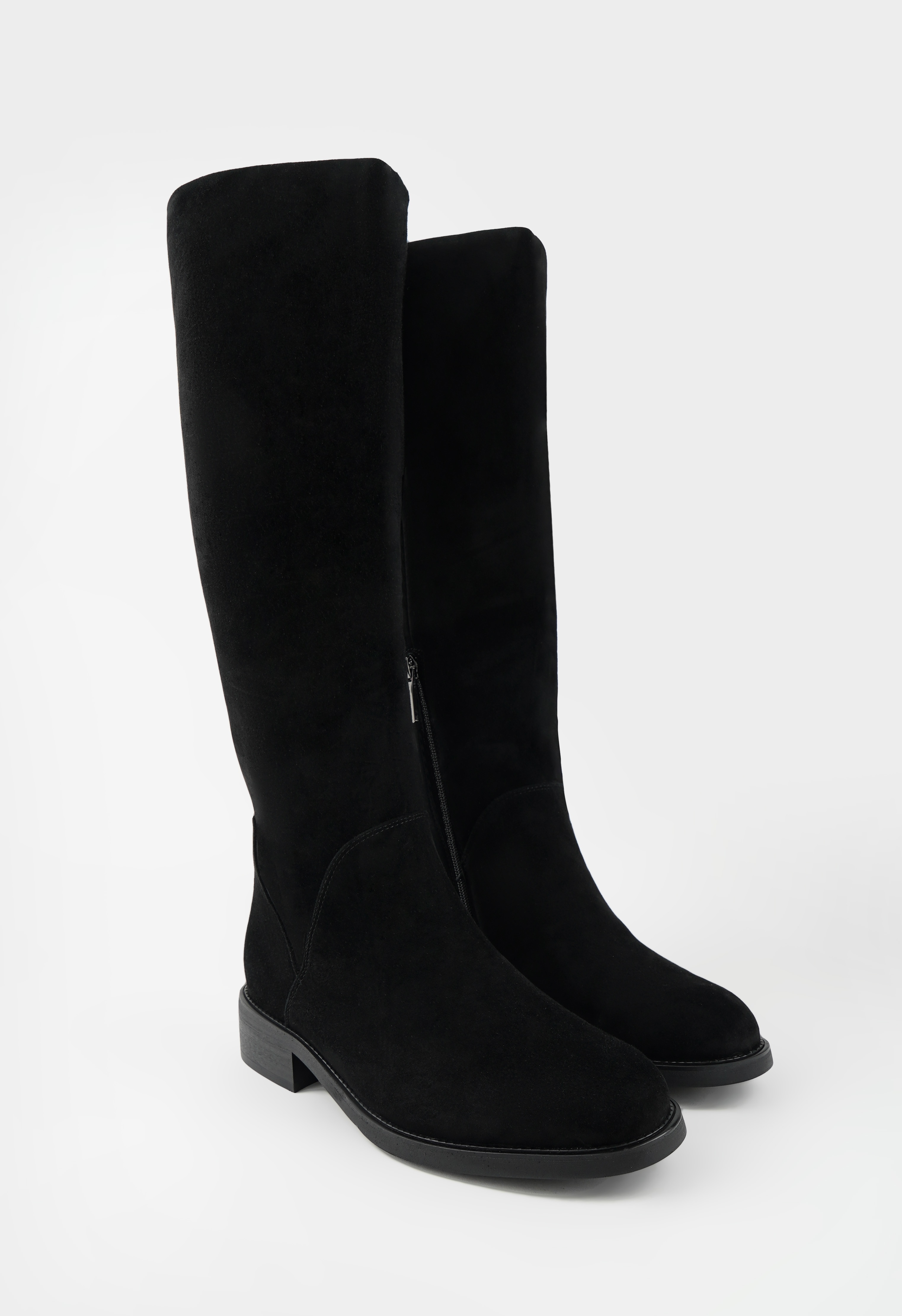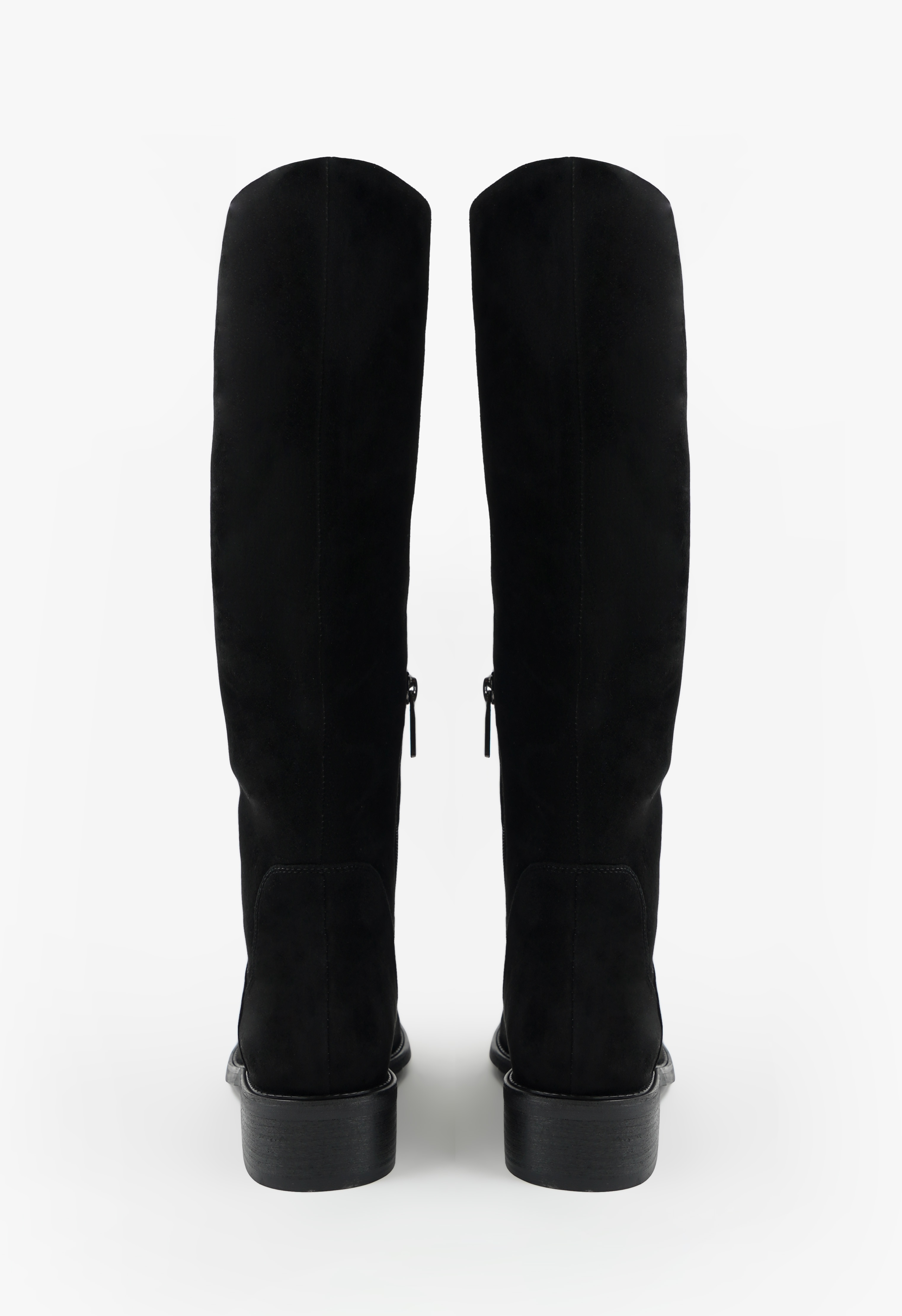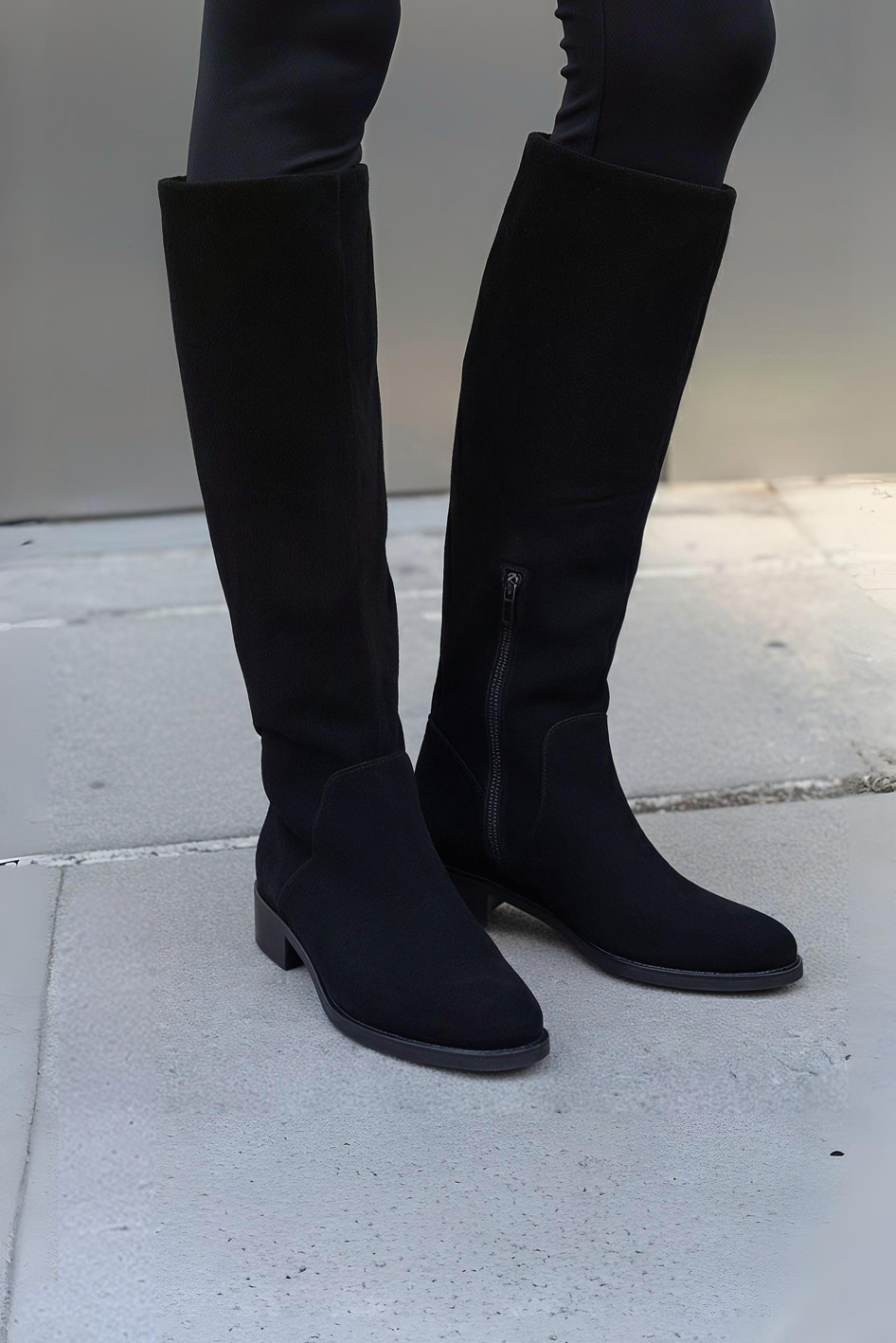Зимние сапоги из натуральной замши черного цвета с утеплением из натурального меха и байки – идеальный выбор для холодного сезона. Гибкая подошва и широкий каблук обеспечивают комфорт и устойчивость при каждом шаге, а округлый мысок дарит удобство и свободу движения. Молния и металлическая фурнитура делают модель практичной и стильной одновременно, добавляя современный акцент. Эти сапоги легко впишутся в повседневные и городские образы, сочетая тепло, удобство и элегантный дизайн, подчеркивая ваш утонченный вкус и уверенность.