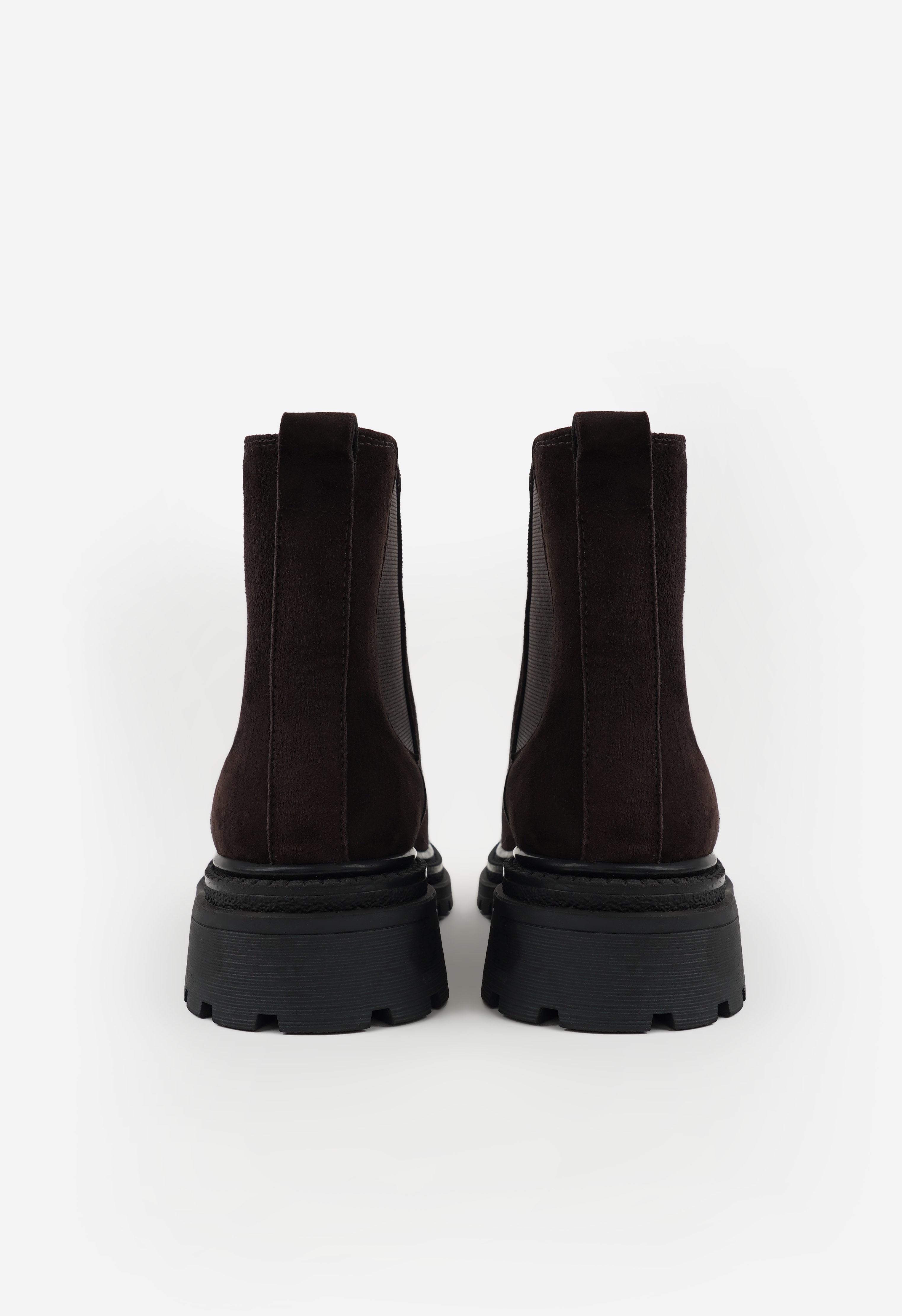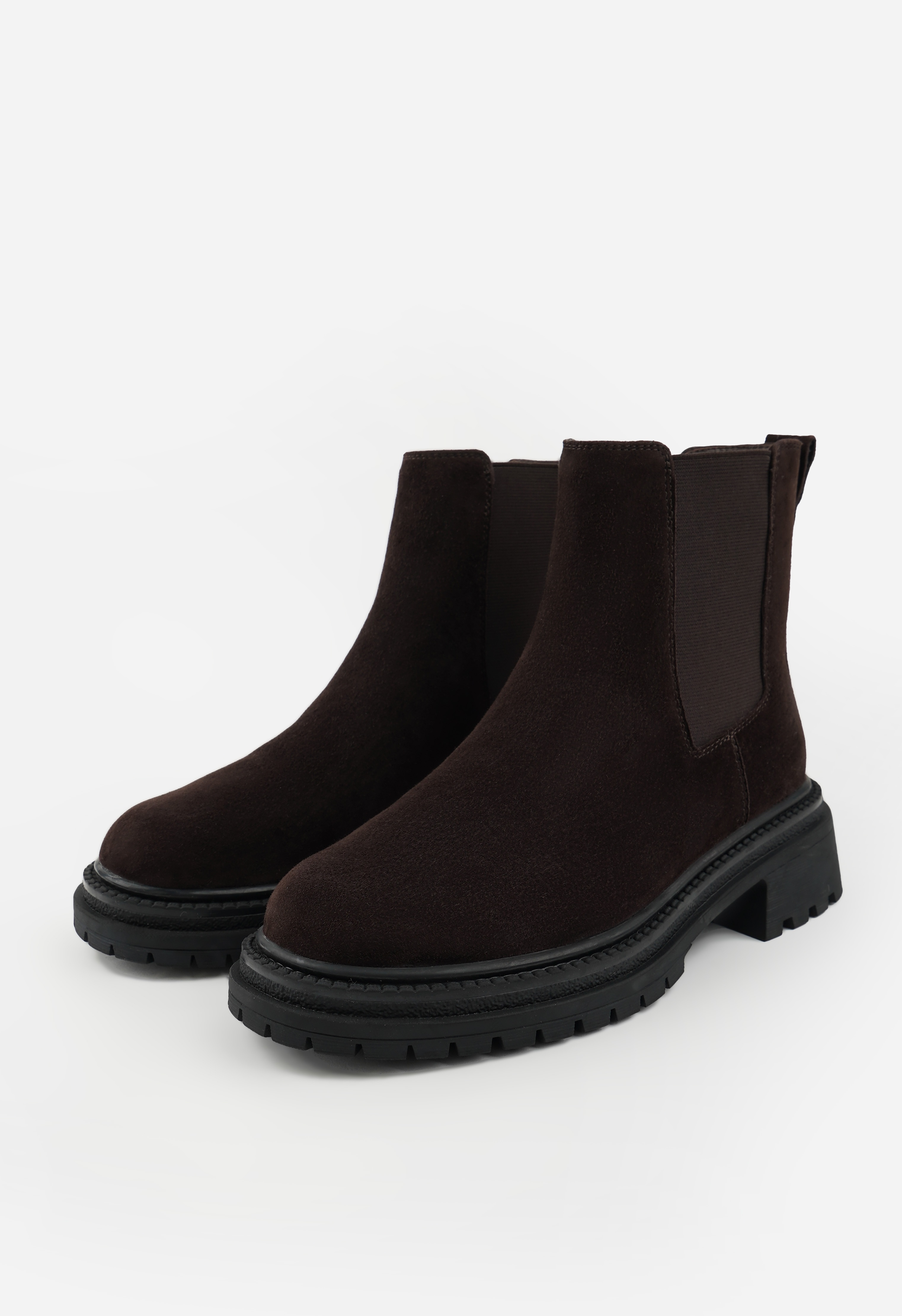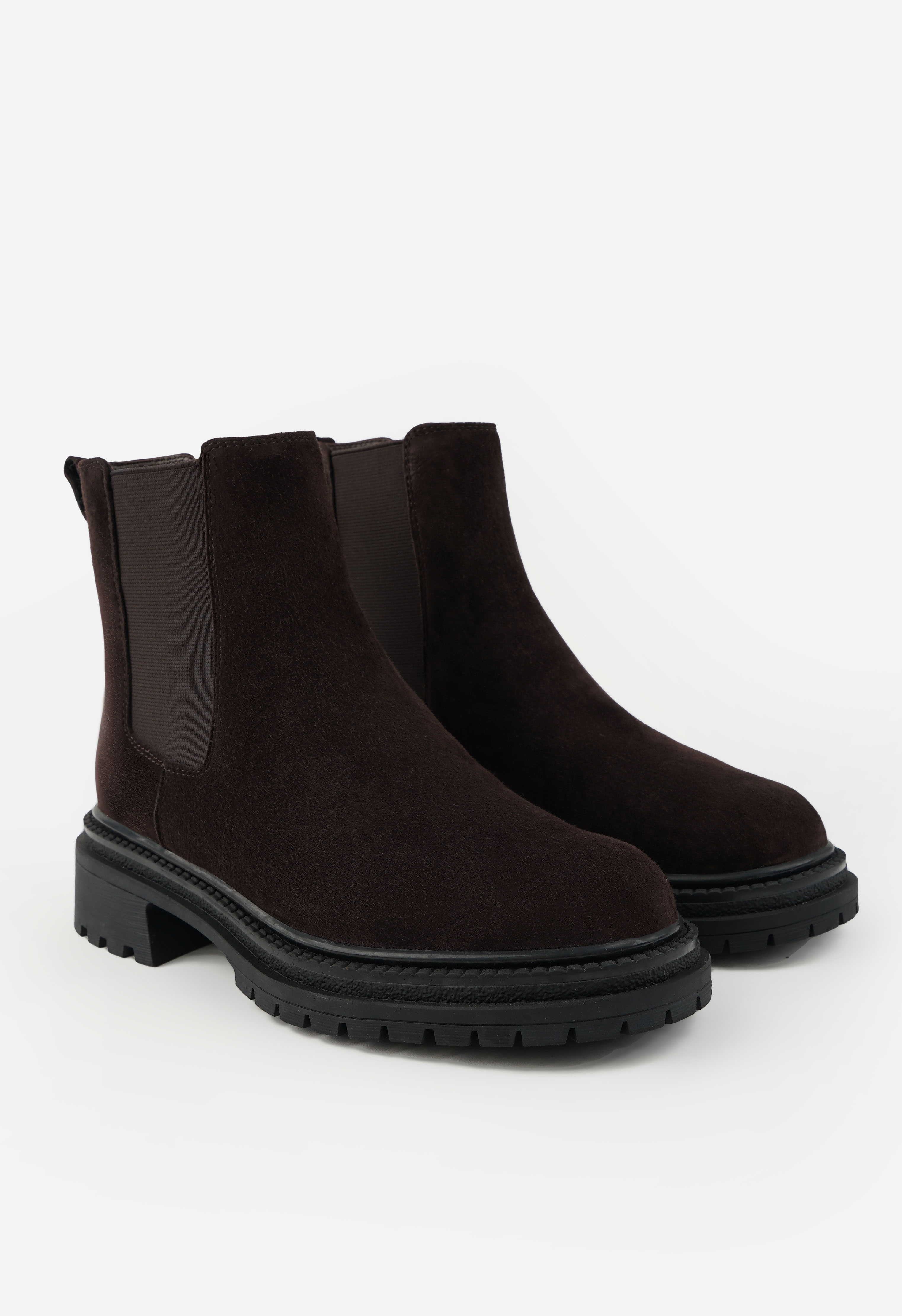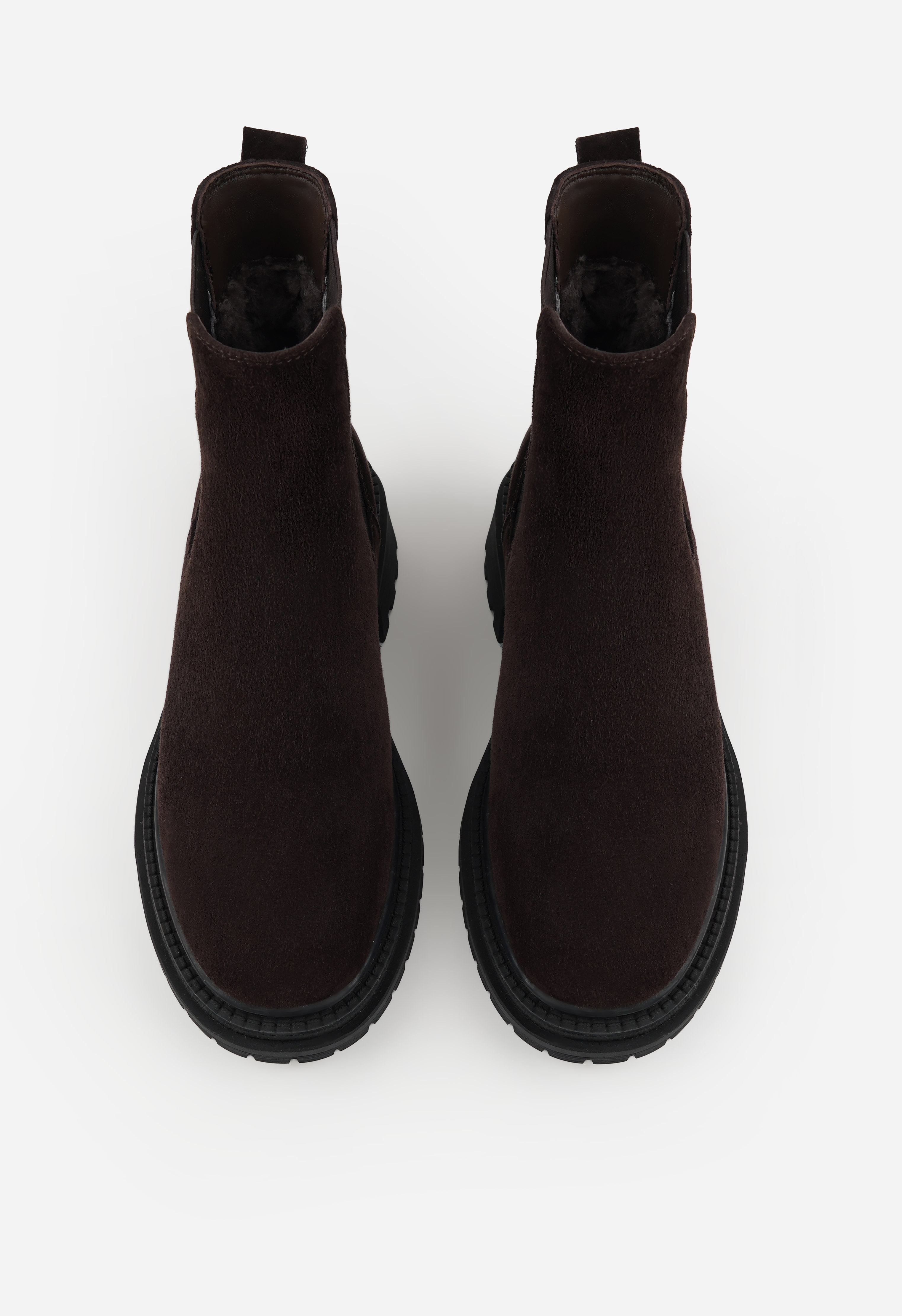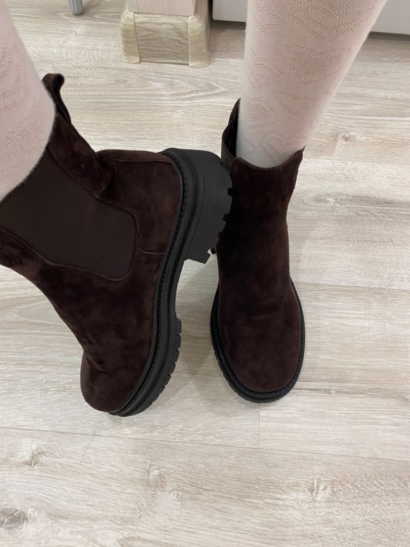 Коричневые полусапоги из натуральной замши с подкладкой из мягкого натурального меха – стильная и практичная пара для холодного сезона. Жесткая подошва и широкий каблук обеспечивают устойчивость и комфорт при ходьбе, а округлый мысок делает модель удобной для повседневной носки. Втачная резинка гарантирует идеальную посадку по ноге, сочетая удобство и элегантность. Эти полусапоги легко впишутся в любой гардероб, подчеркивая уверенность и современный стиль в городских и повседневных образах.