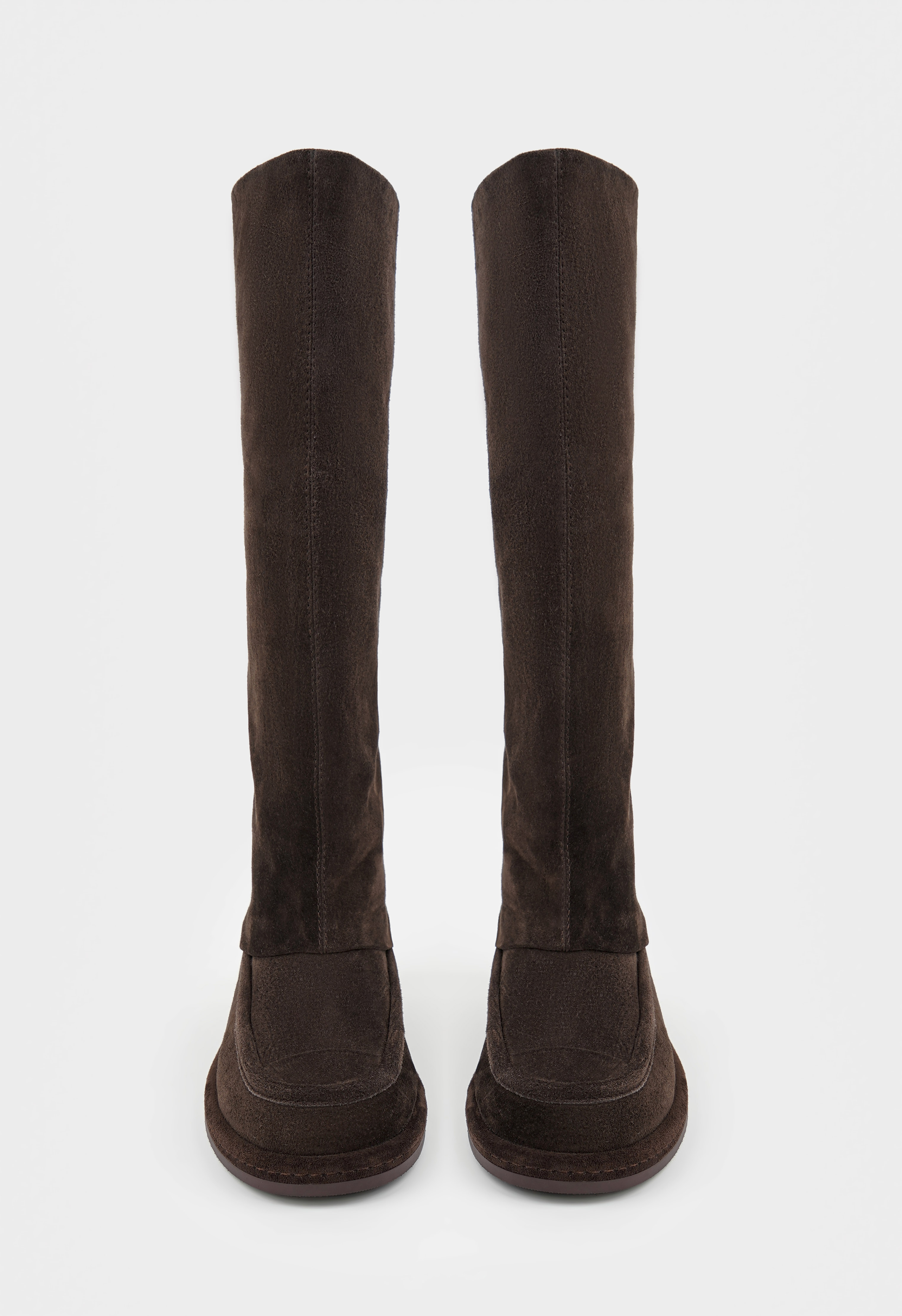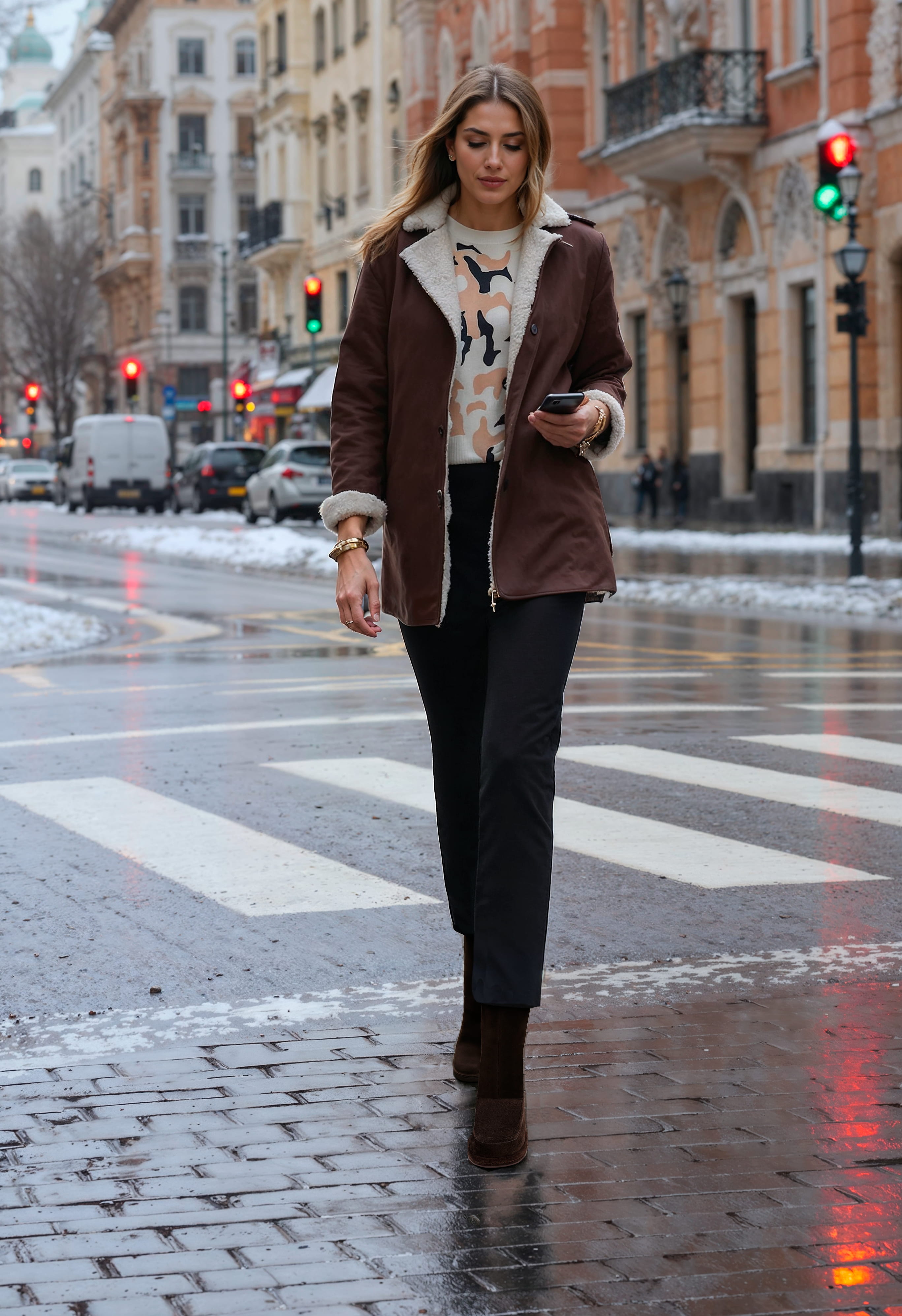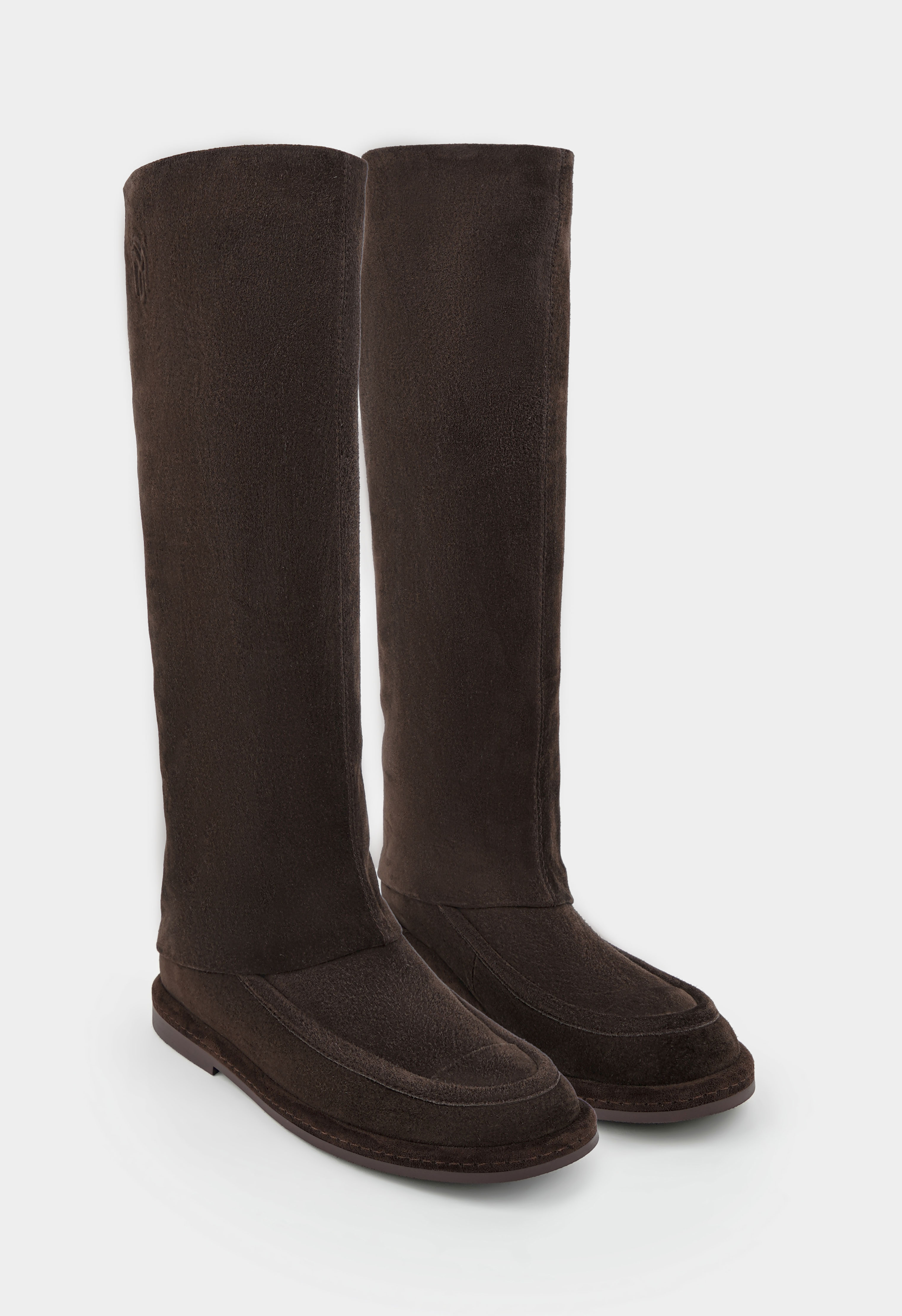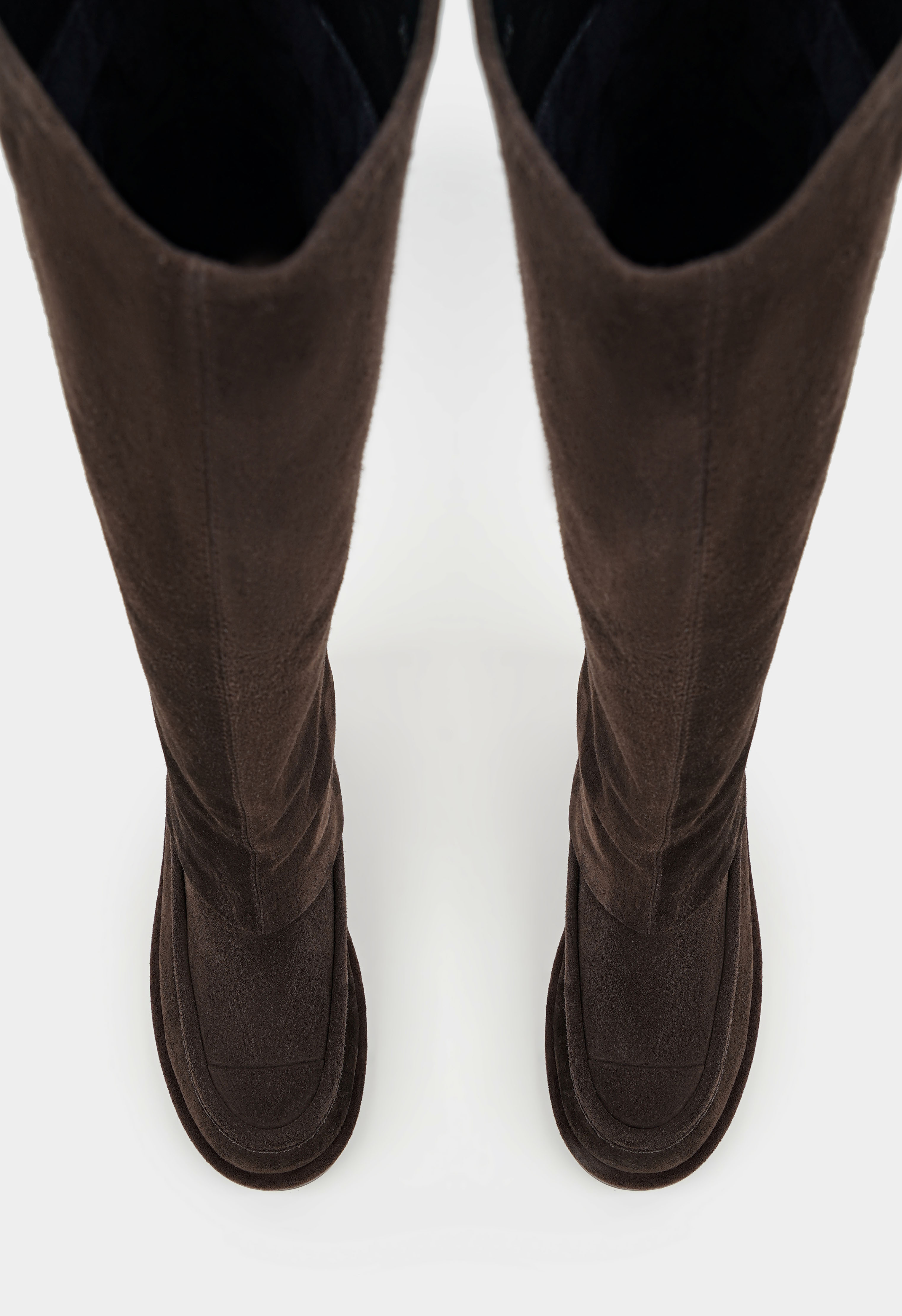 Коричневые сапоги из натуральной замши с уютным натуральным мехом внутри (еврозима) – это идеальное сочетание стиля и комфорта для холодного сезона. Мягкий округлый мысок и широкий каблук подчеркивают элегантный силуэт и обеспечивают устойчивость и удобство при ходьбе. Гибкая подошва дарит легкость движений и комфорт на протяжении всего дня, а теплая меховая подкладка надежно защищает от холода. Эти сапоги прекрасно впишутся в повседневные и более нарядные образы, дополняя их благородным оттенком и подчеркивая вашу любовь к качеству и стилю.